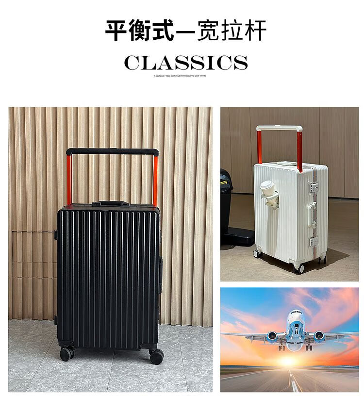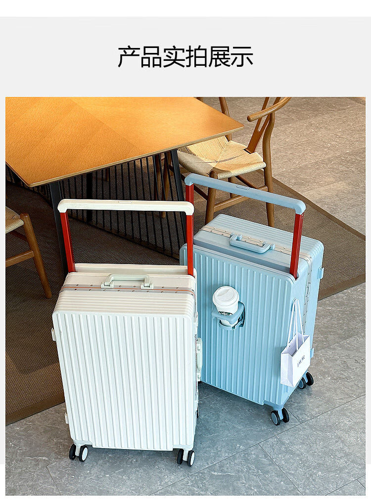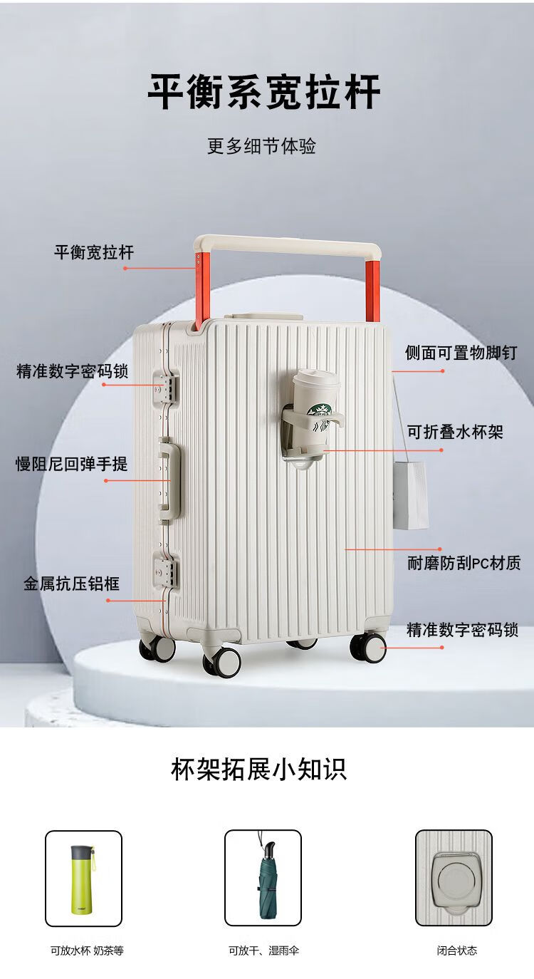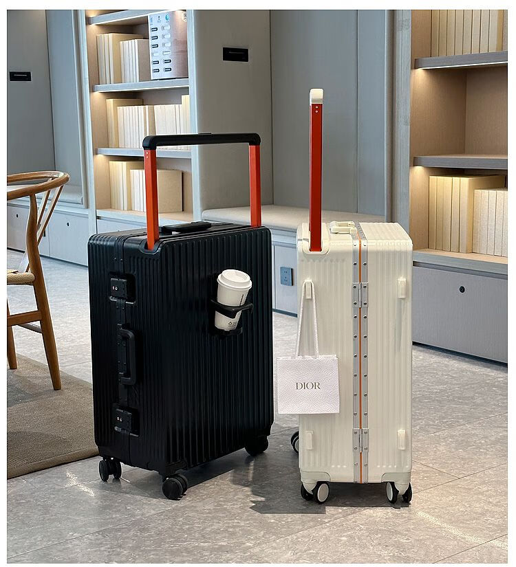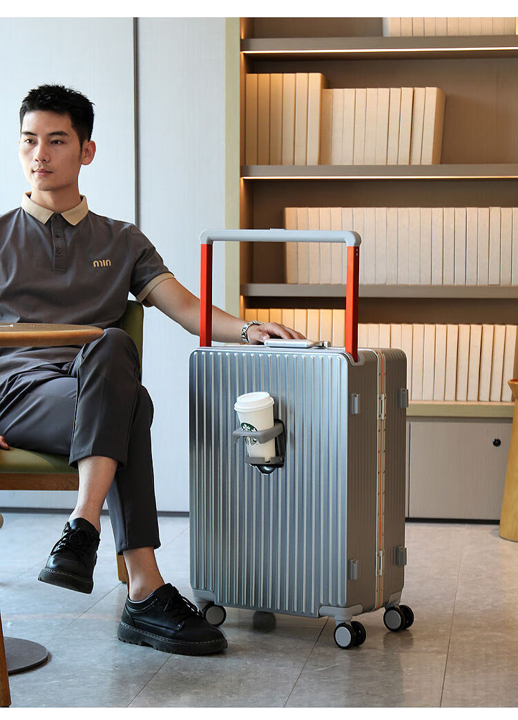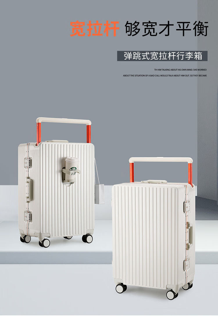 Ouyao's high-looking center-mounted balanced wide trolley case for women, new aluminum frame thickened pc suitcase for men, business travel carry-on suitcase, silver - wide trolley + water cup holder + double enclosed interior 20 inches - stronger and more durable + free replacement if broken