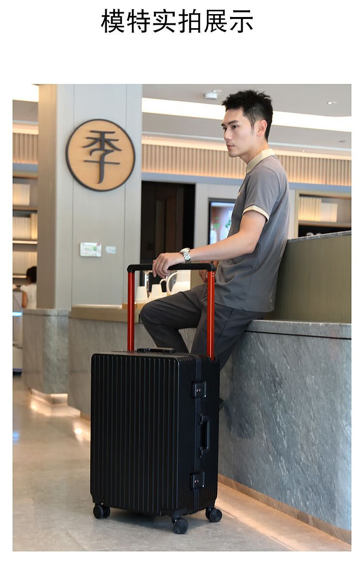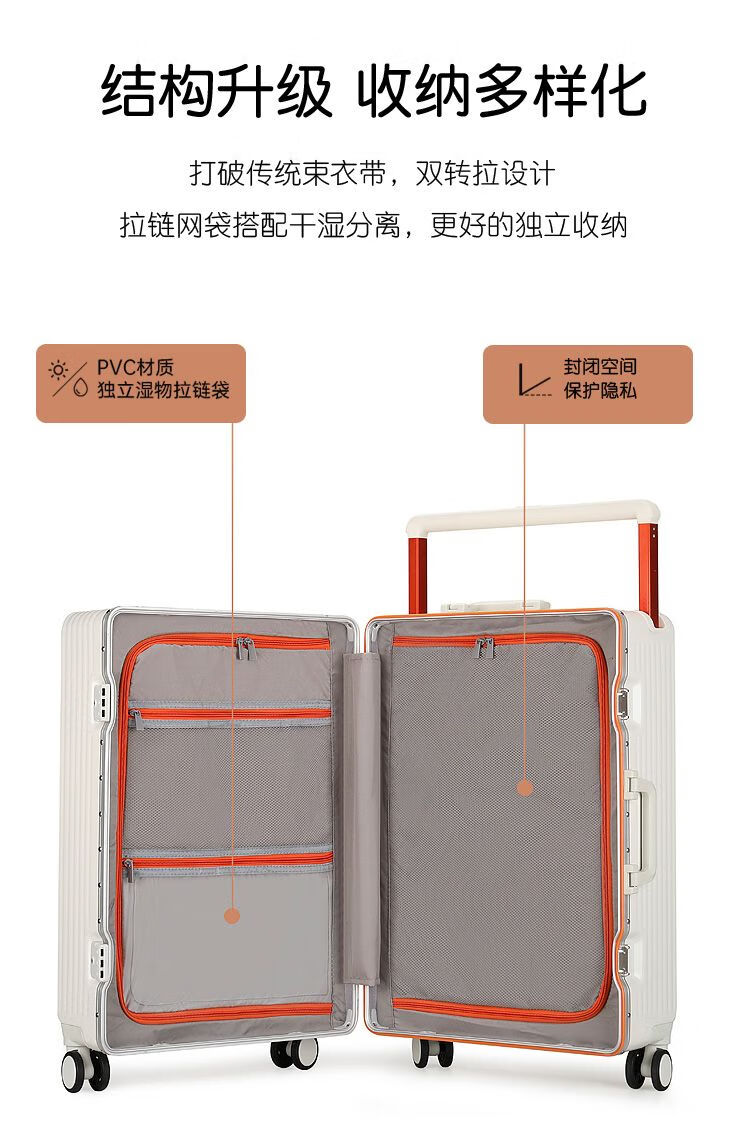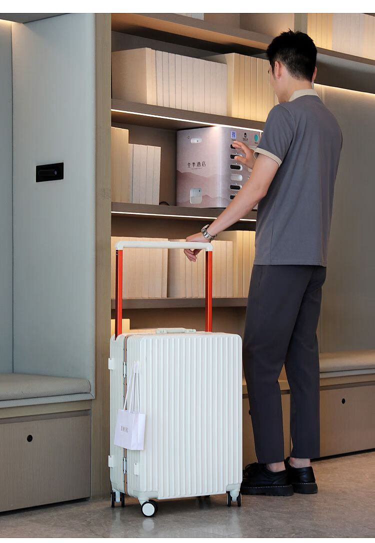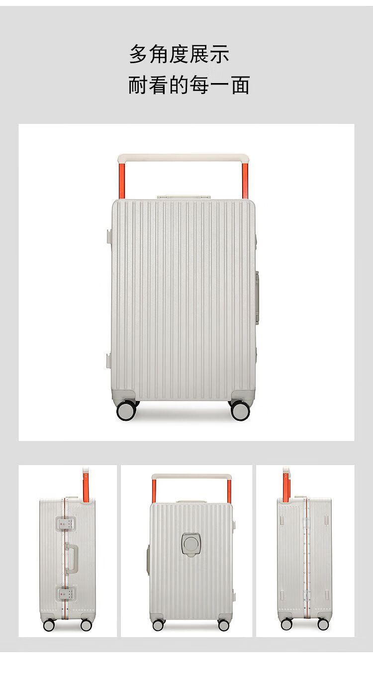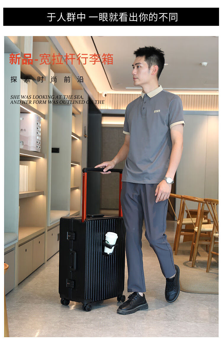 Ouyao's high-looking center-mounted balanced wide trolley case for women, new aluminum frame thickened pc suitcase for men, business travel carry-on suitcase, silver - wide trolley + water cup holder + double enclosed interior 20 inches - stronger and more durable + free replacement if broken
