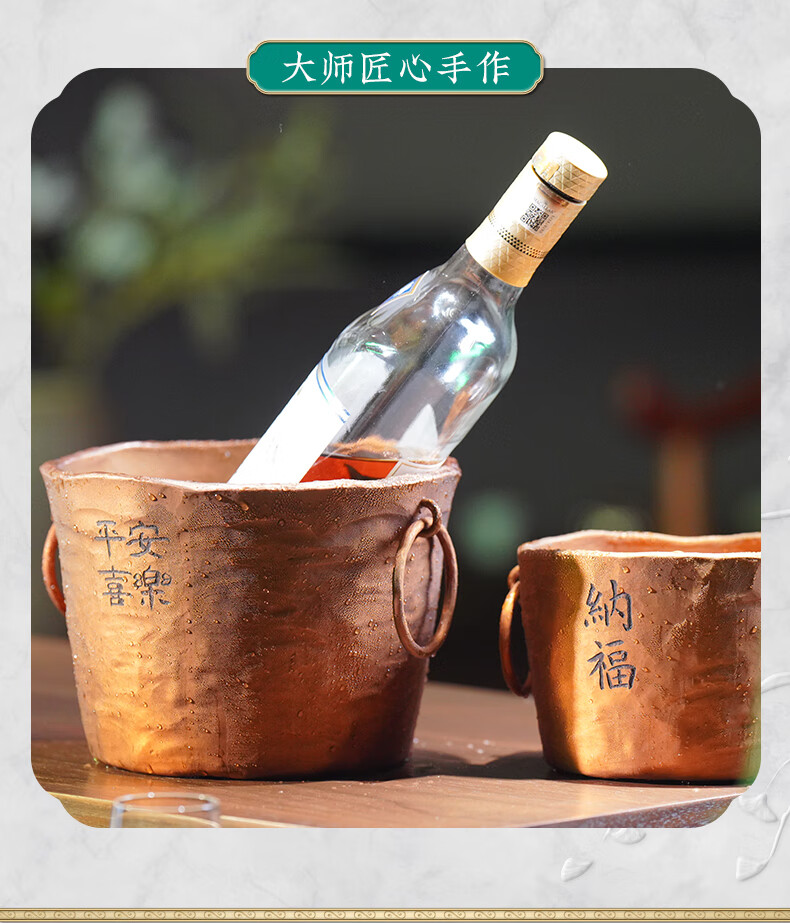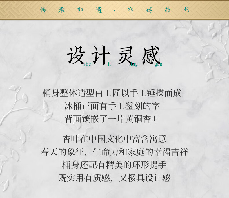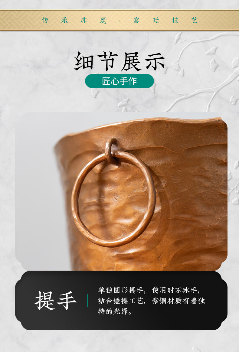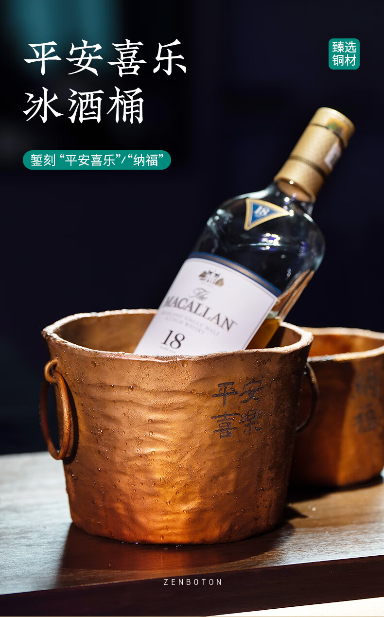 Zhenbaotang all-copper wine barrel creative wineware handmade inlaid with ginkgo leaf hammer pattern ice bucket household champagne beer ice bucket decoration Ping'an Xile wine barrel (capacity about 2500ml)
