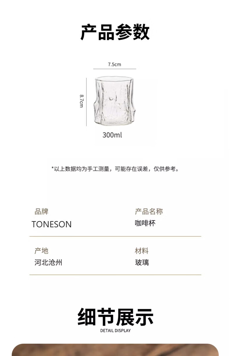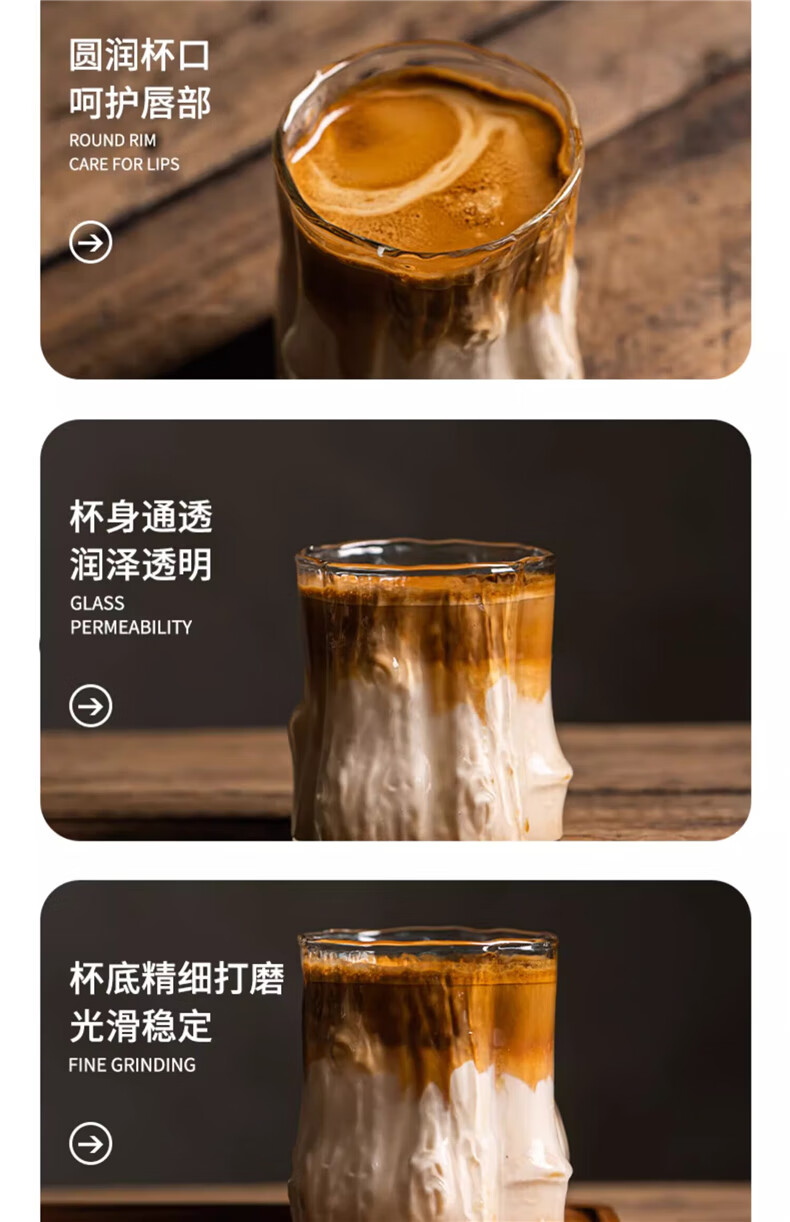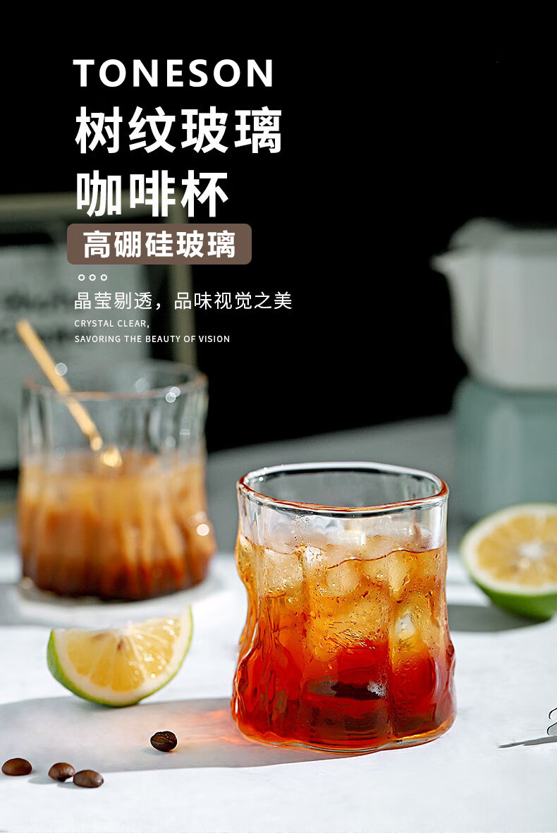 TONESON American coffee cup latte cup household glass cup high-value retro water cup coffee cup bark coffee cup 300ml