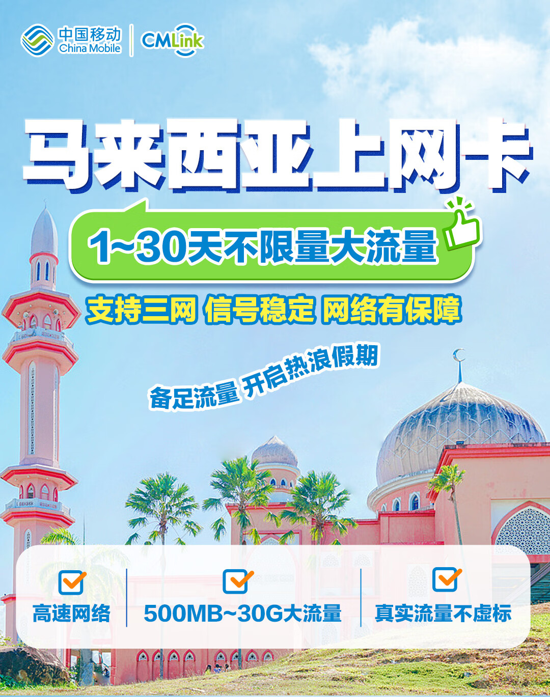 Malaysia data card China Mobile CMLink high-speed network travel sim card 10 days 500MB/day - high speed + unlimited