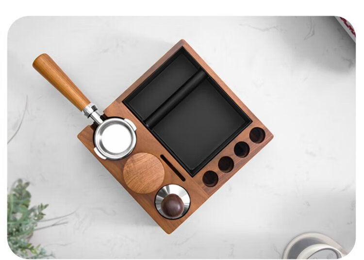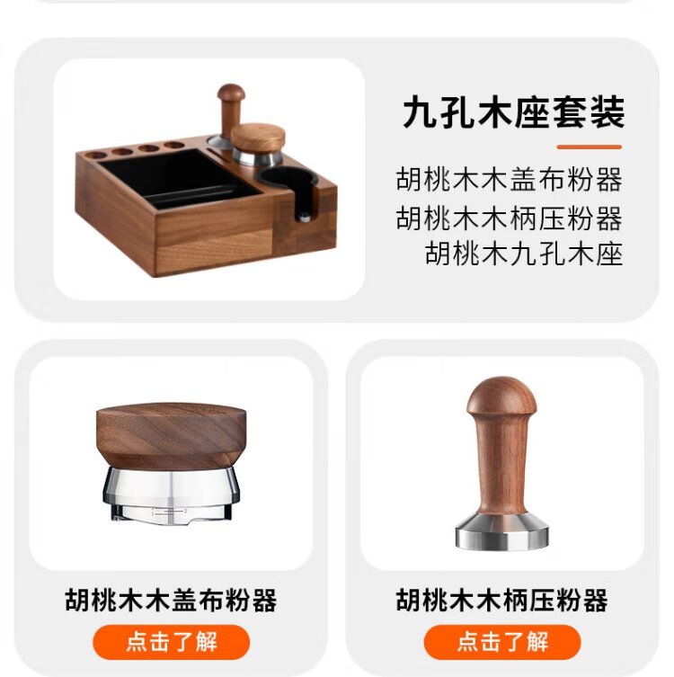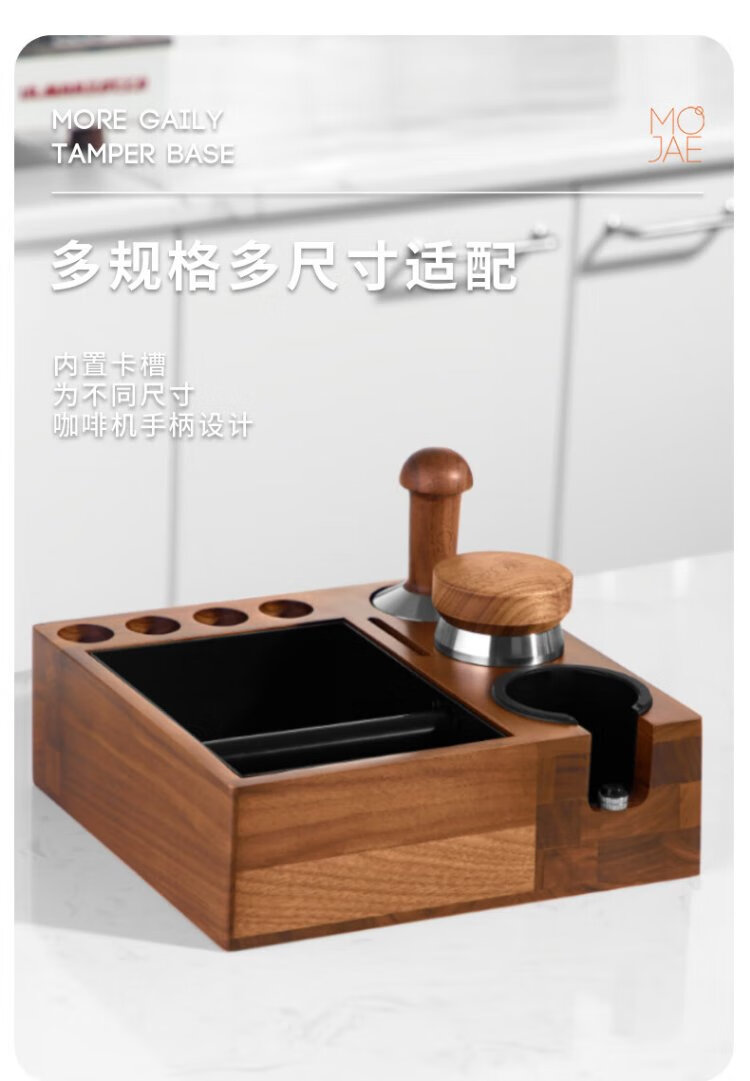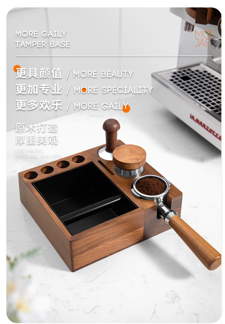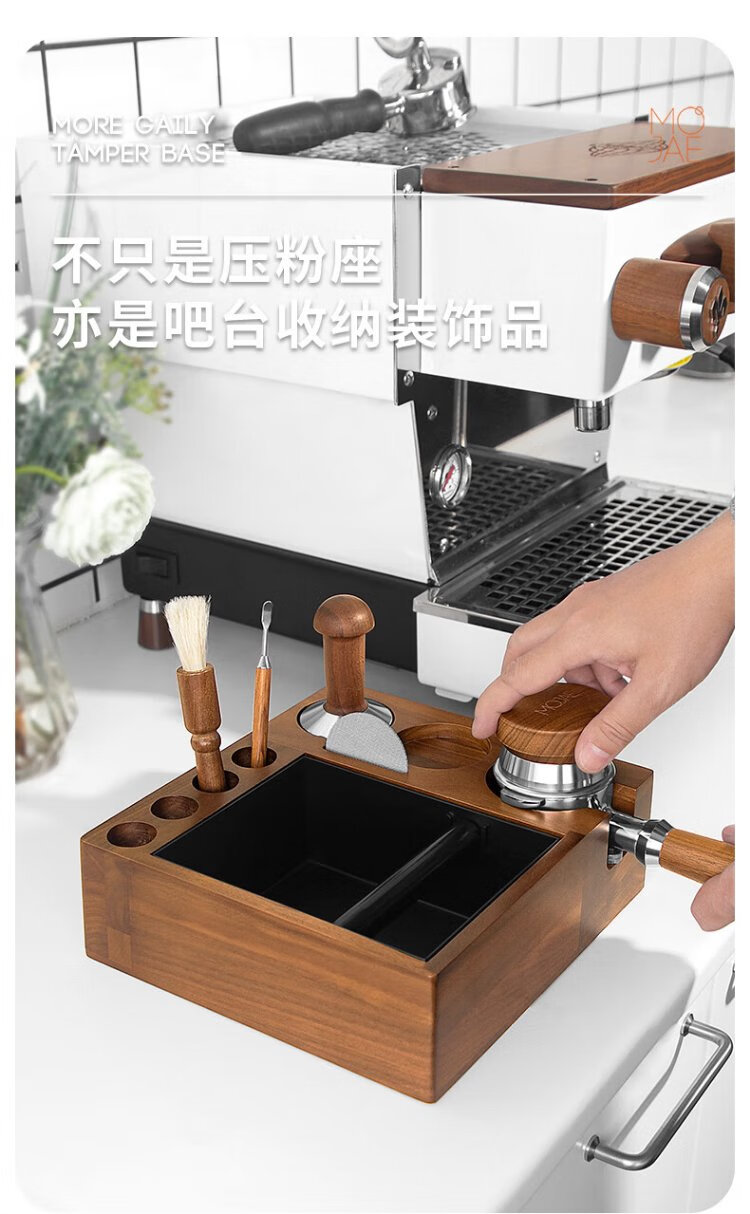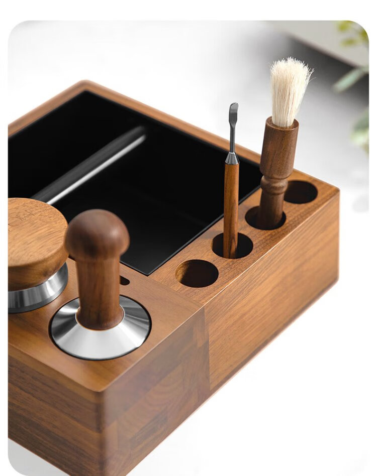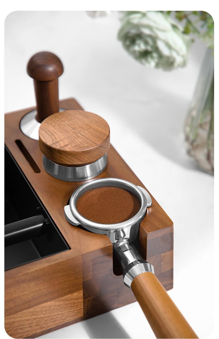 MOJAE nine-hole walnut coffee tamping base, tamper powder spreader handle, wooden base, coffee utensil storage base, nine-hole combination wooden base set, 51mm set