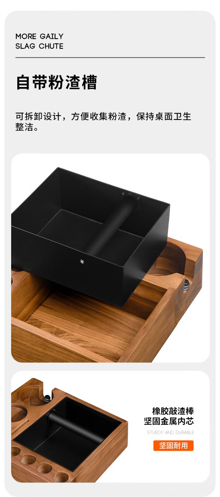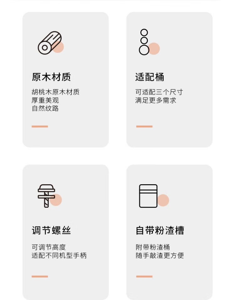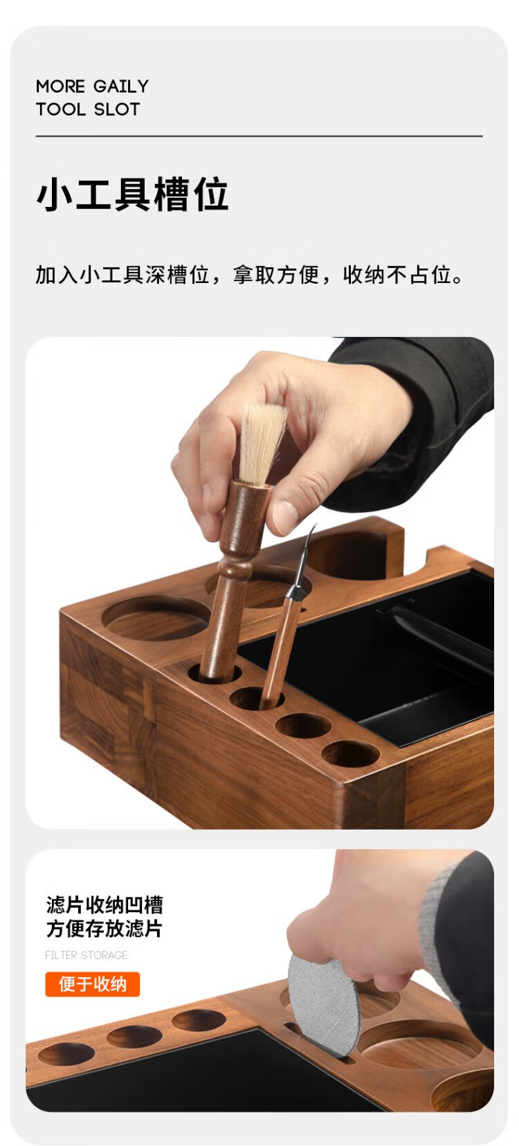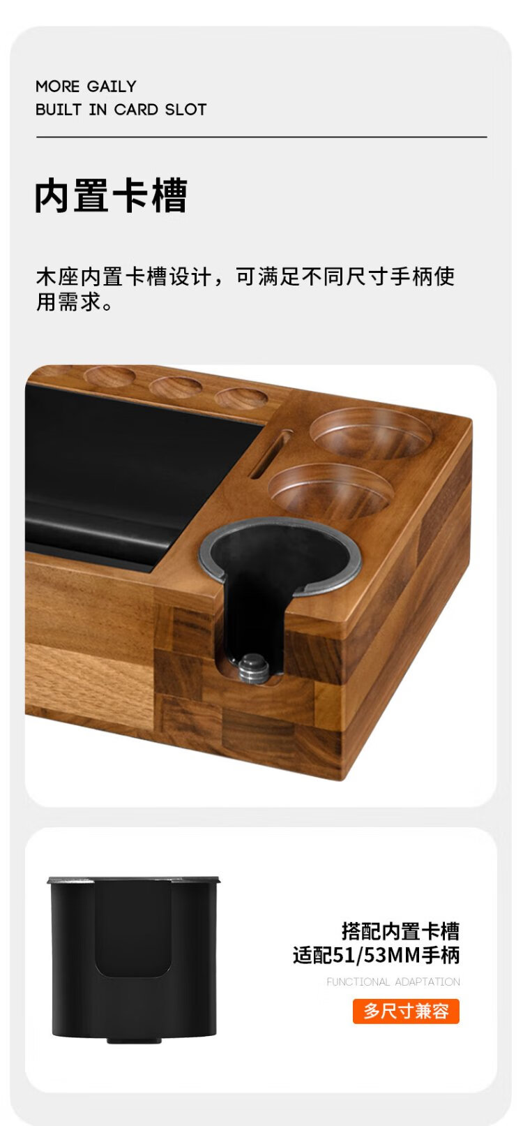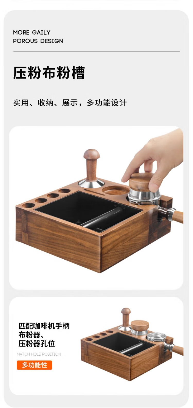 MOJAE nine-hole walnut coffee tamping base, tamper powder spreader handle, wooden base, coffee utensil storage base, nine-hole combination wooden base set, 51mm set