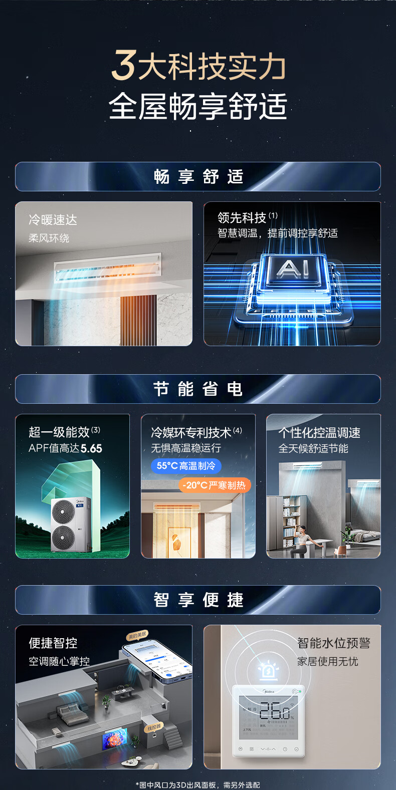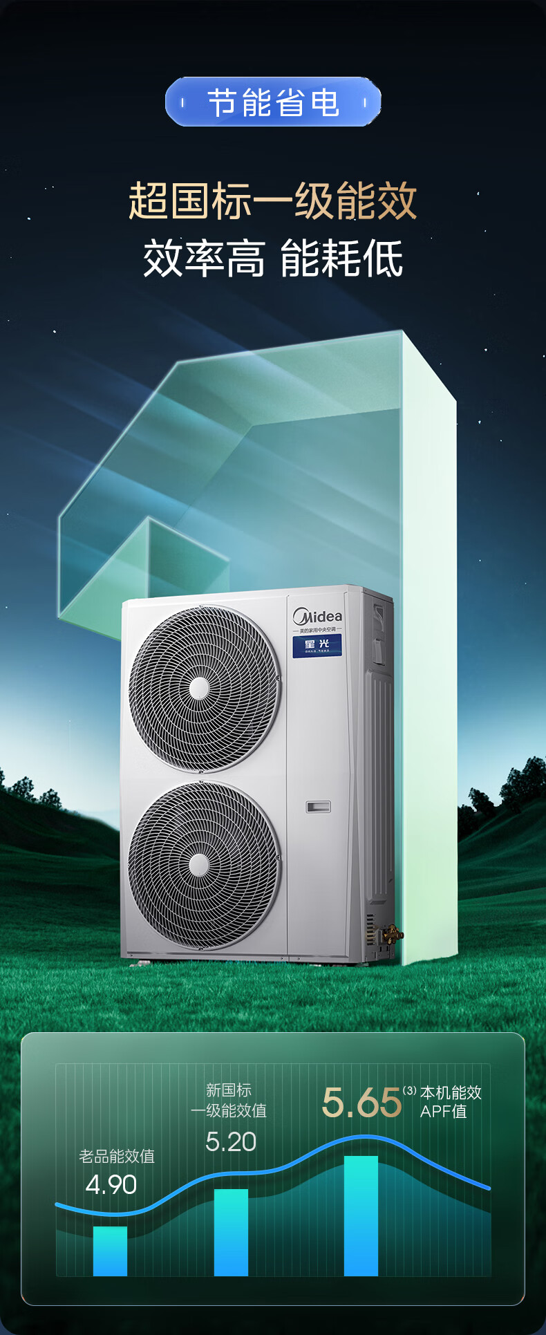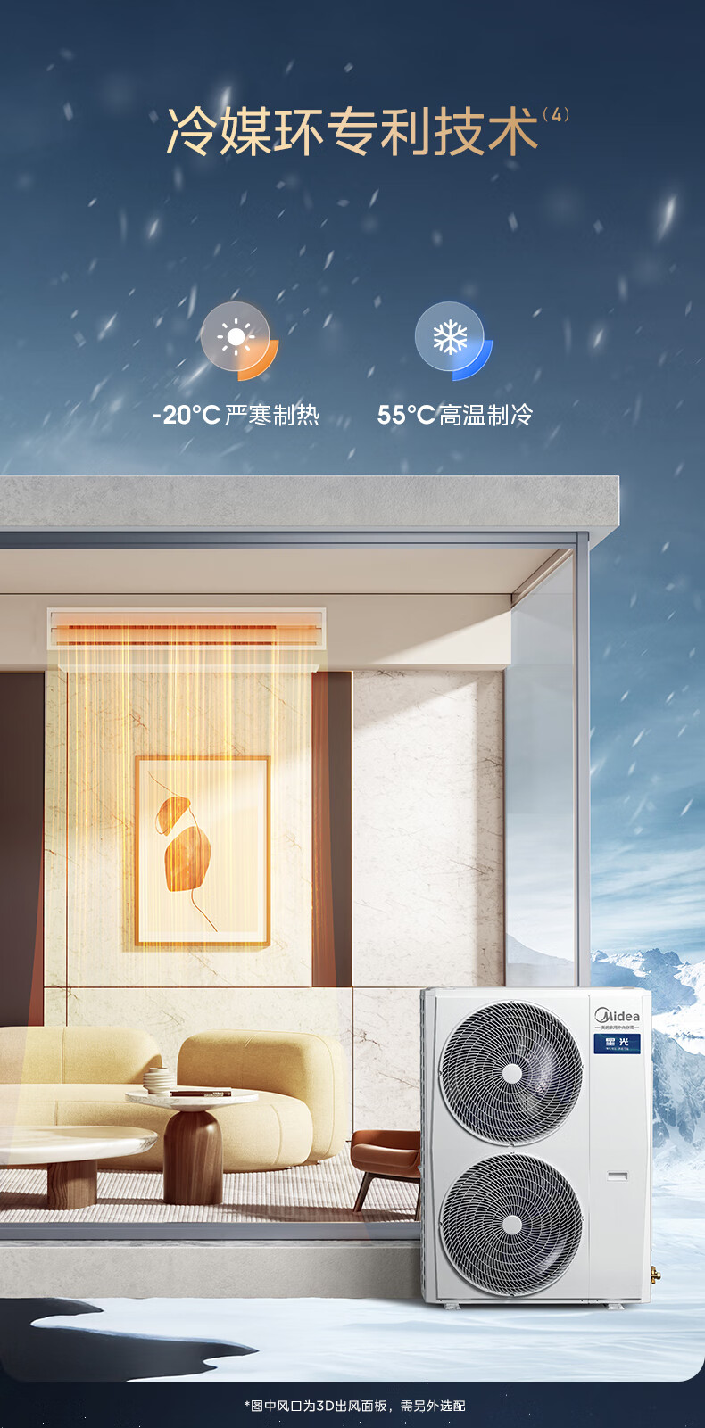 Midea's national subsidy is reduced by 20%. Central air conditioner one-to-three/four/five-star multi-split duct type 4p 5/6/7 hp full DC variable frequency heating and cooling air conditioner with self-cleaning starlight 5 hp one-to-three suitable for 80~110 0 yuan installation