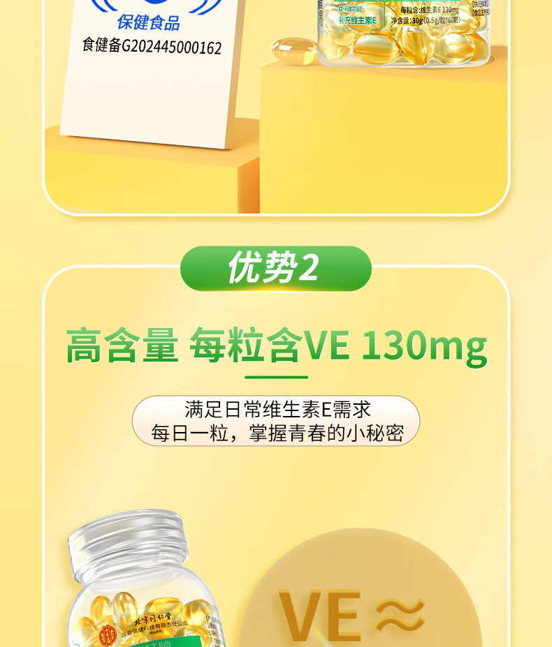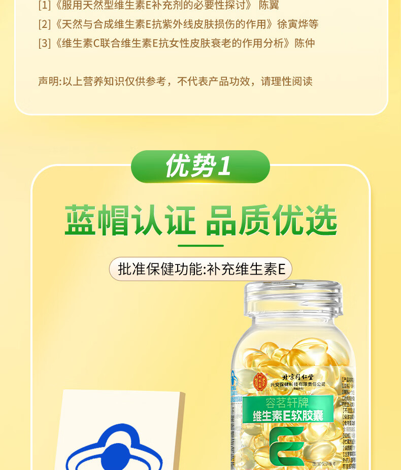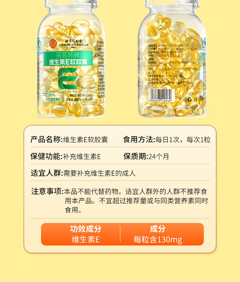 Beijing Tongrentang Vitamin E Soft Capsule High Content Tianranve Women's Anti-smear Anti-Aging Health Care 1 Bottle 30g is used in the inner court.