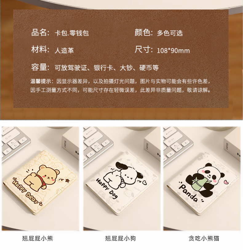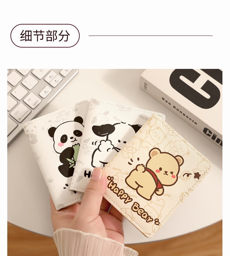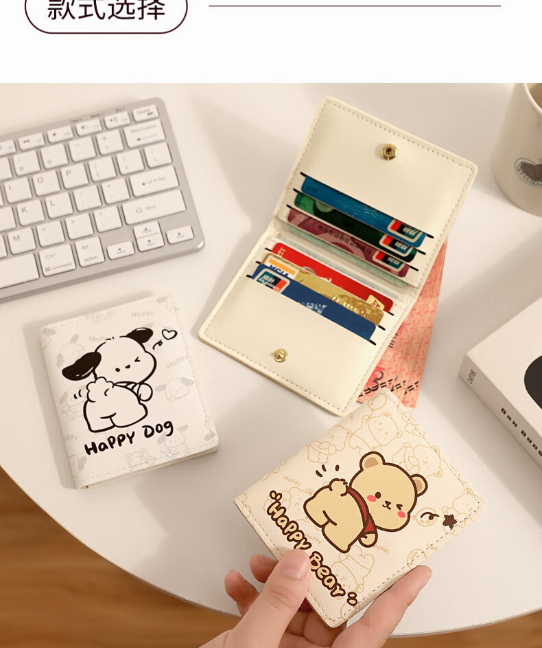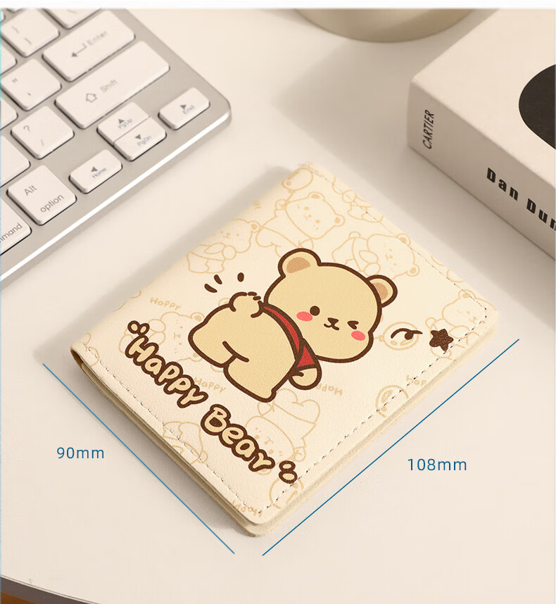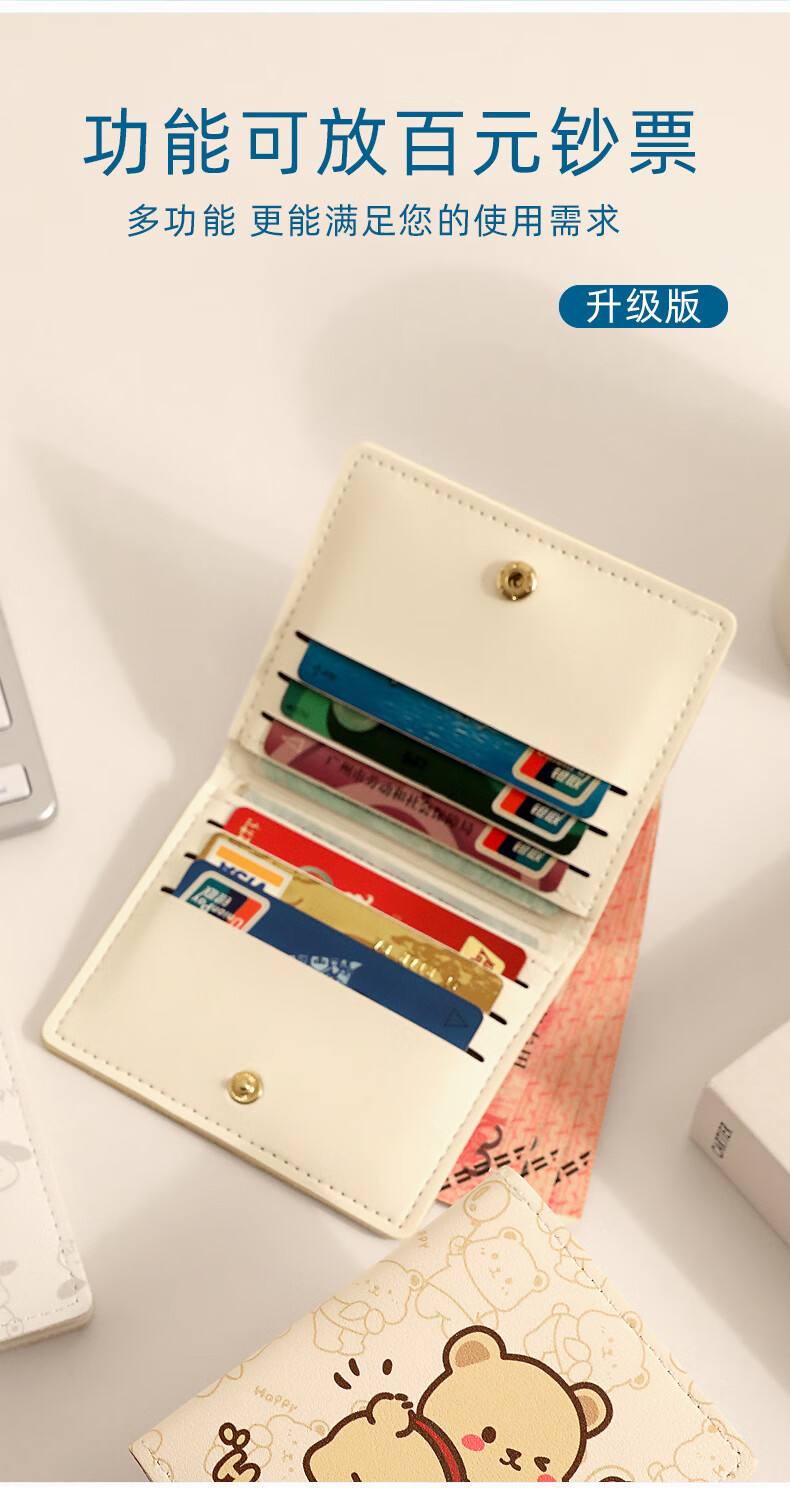 MAIWEINI card holder, coin purse, integrated female card holder, compact coin holder, ultra-thin mini wallet, two-in-one driver's license holder, cute butt bear, upgraded to add large note slots, smooth fabric, comfortable and durable