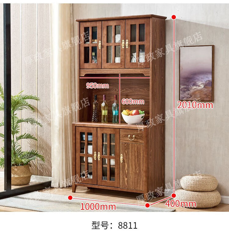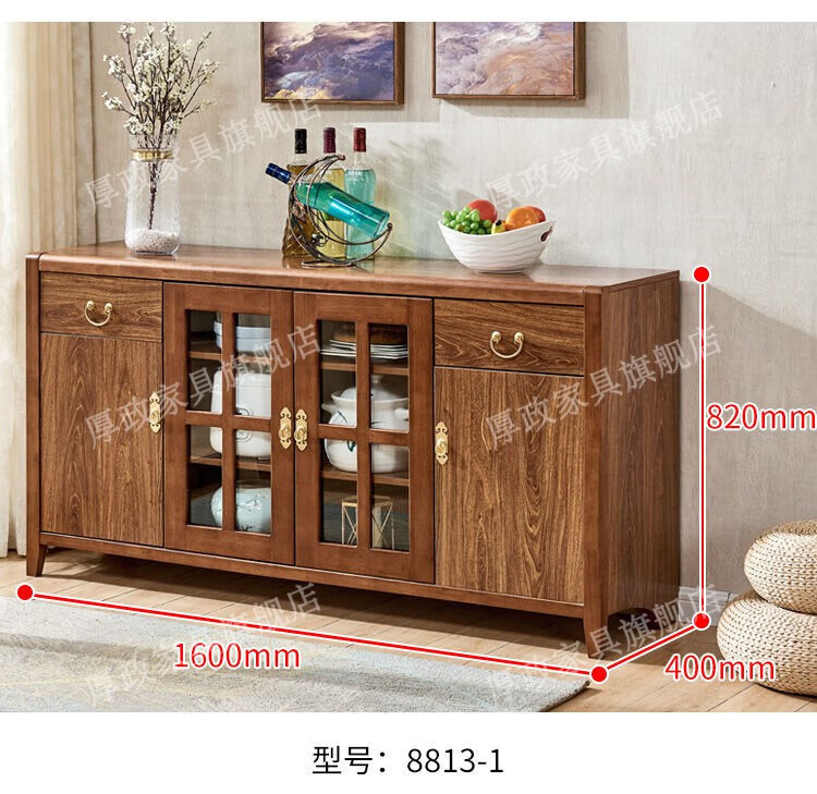 Guansi solid wood sideboard modern new Chinese style living room tea cabinet wine cabinet integrated wall multi-functional storage cabinet cupboard 8810-1 lower cabinet