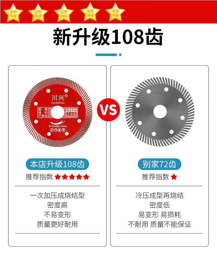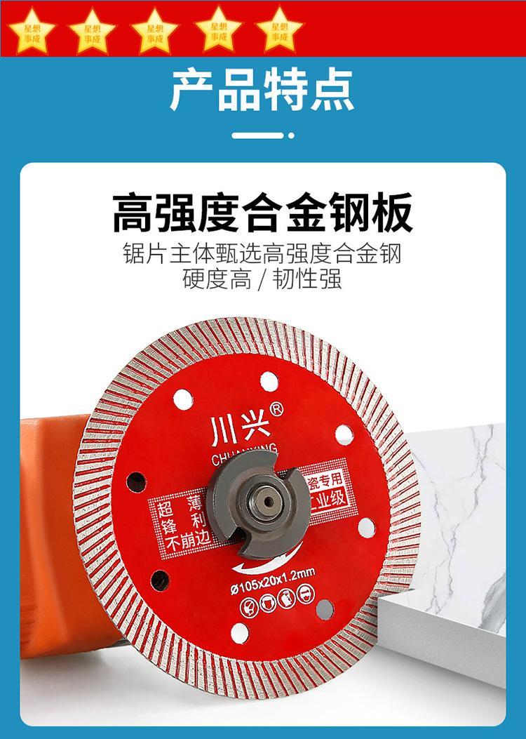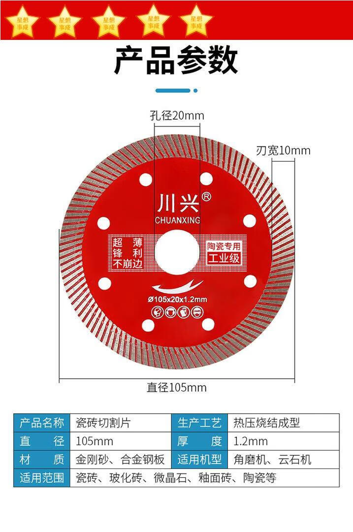 Chuanxing ceramic tile cutting piece all-ceramic vitrified tile ceramic special angle grinder dry cutting saw blade does not chip edge artifact professional grade (1 piece)