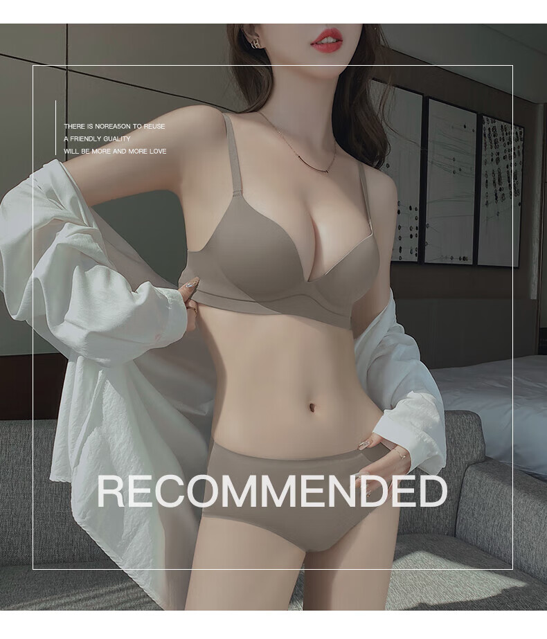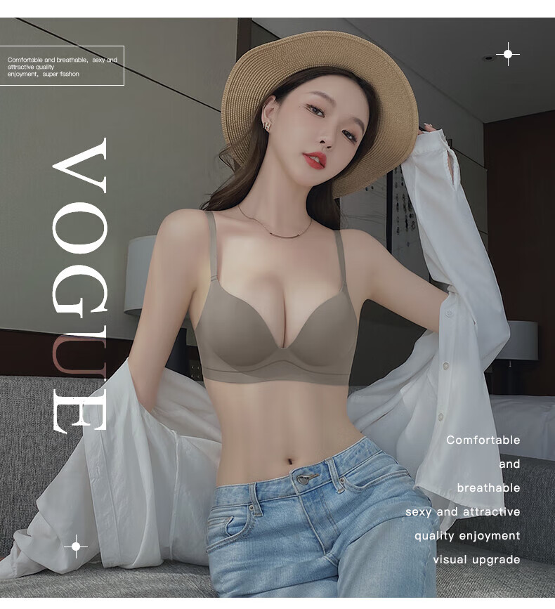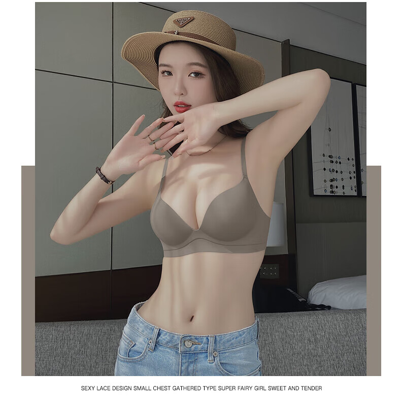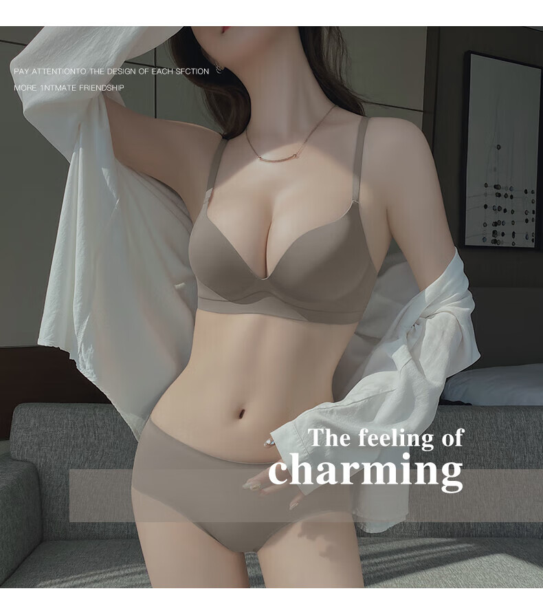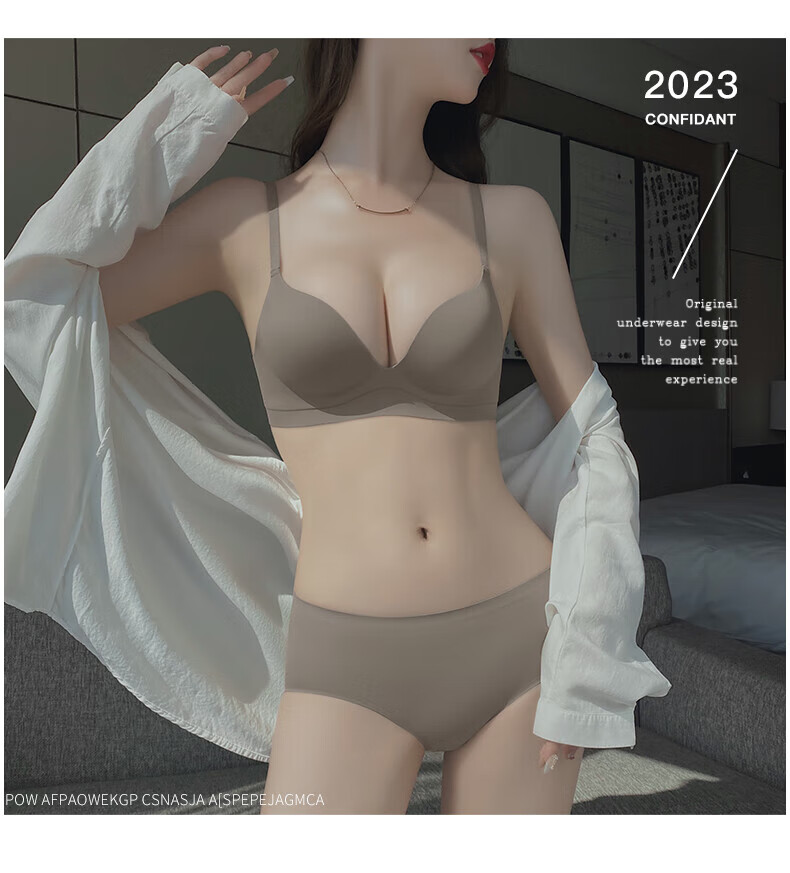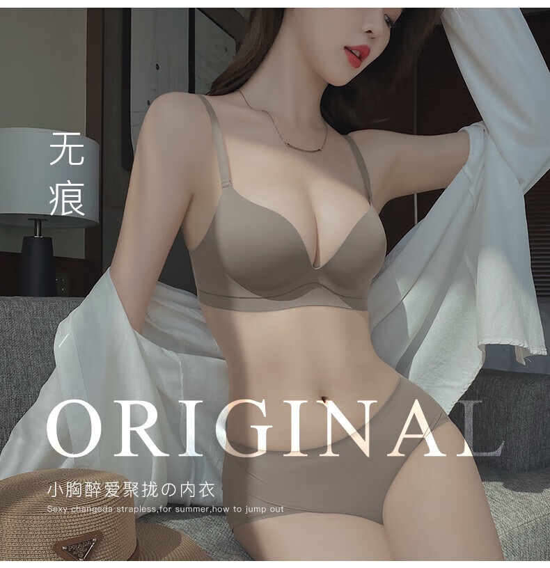 Seamless underwear for women with small breasts, push-up and enlargement, adjustable breast-retracting and anti-sagging bra and panties set, thin summer style (light brown single underwear) VS0806 S 32/70A (thick cup is about 1.5c)