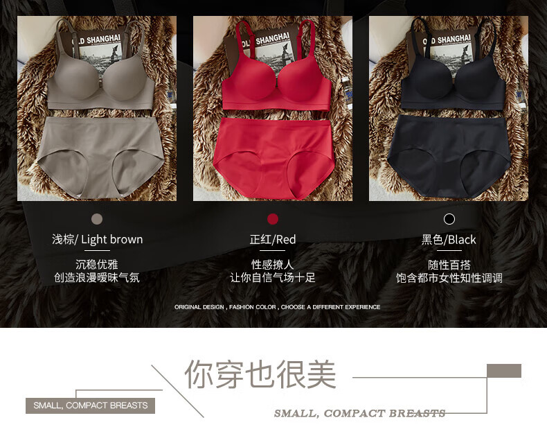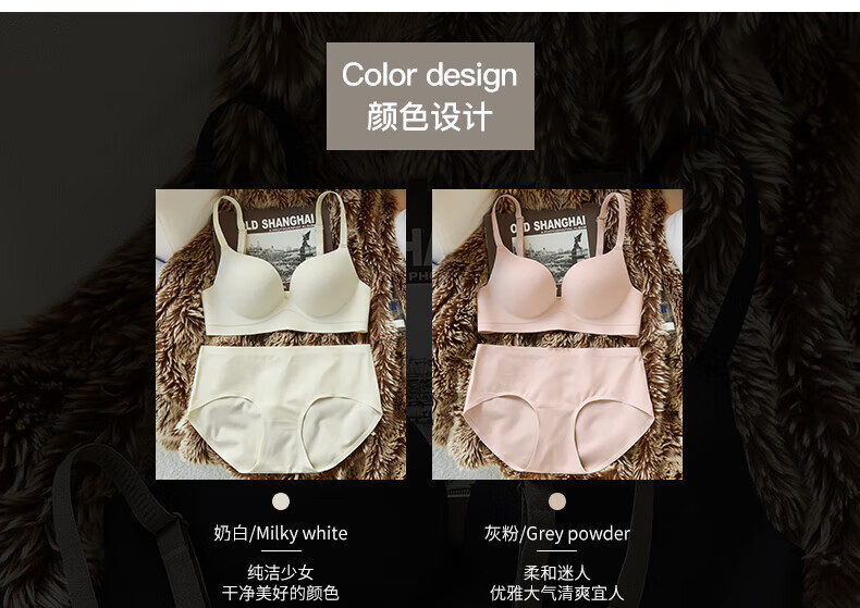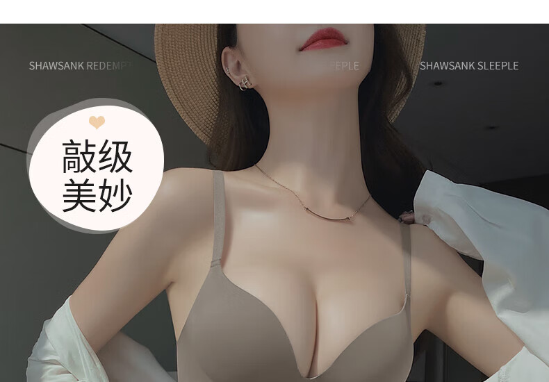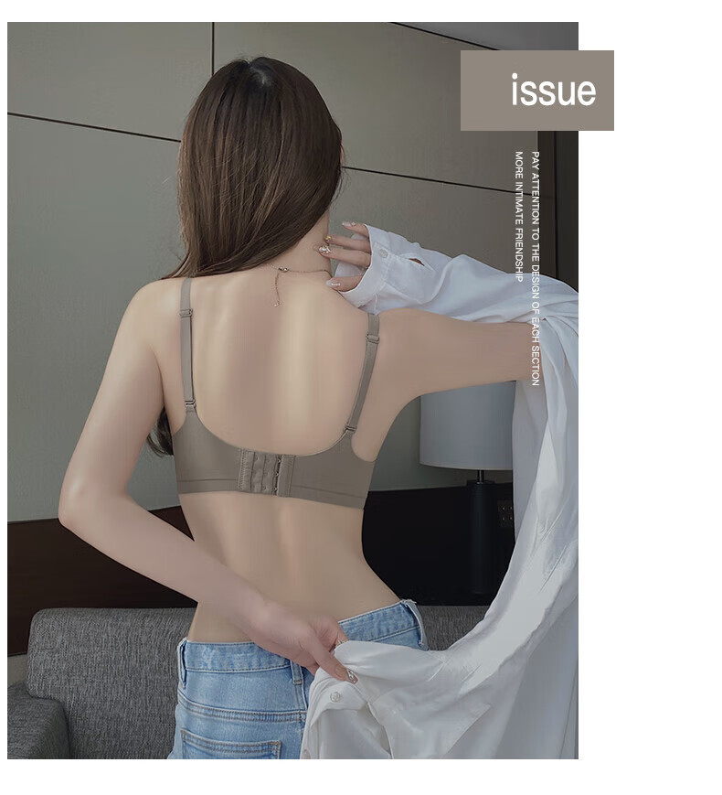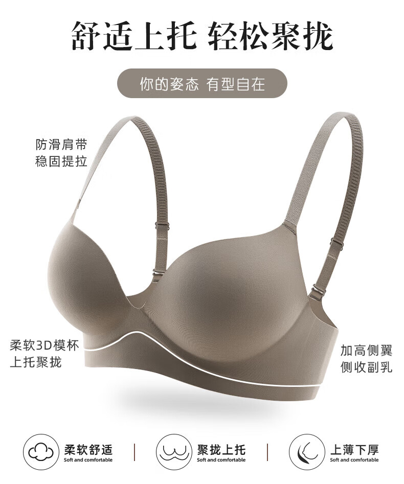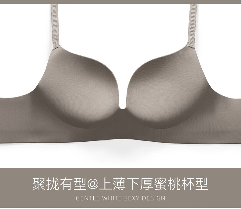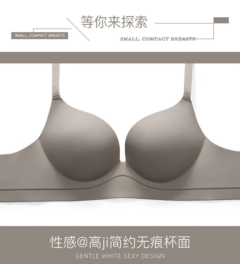 Seamless underwear for women with small breasts, push-up and enlargement, adjustable breast-retracting and anti-sagging bra and panties set, thin summer style (light brown single underwear) VS0806 S 32/70A (thick cup is about 1.5c)