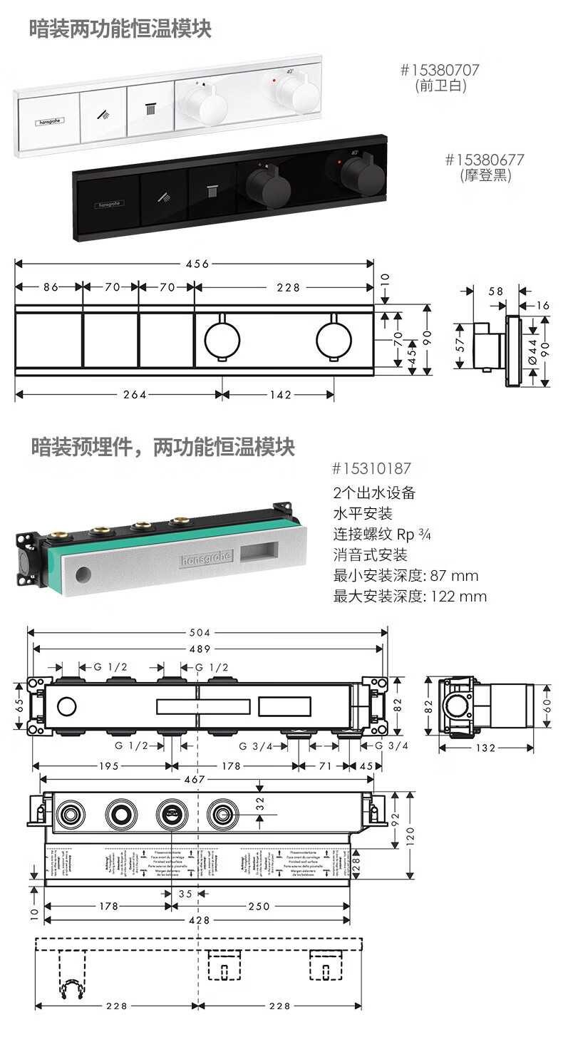 Hansgrohe Jingyu 360 water-saving concealed shower in-wall 130 Jingyu nozzle shower constant temperature handheld shower combination 360 modern black Jingyu concealed 2 functions 26230677