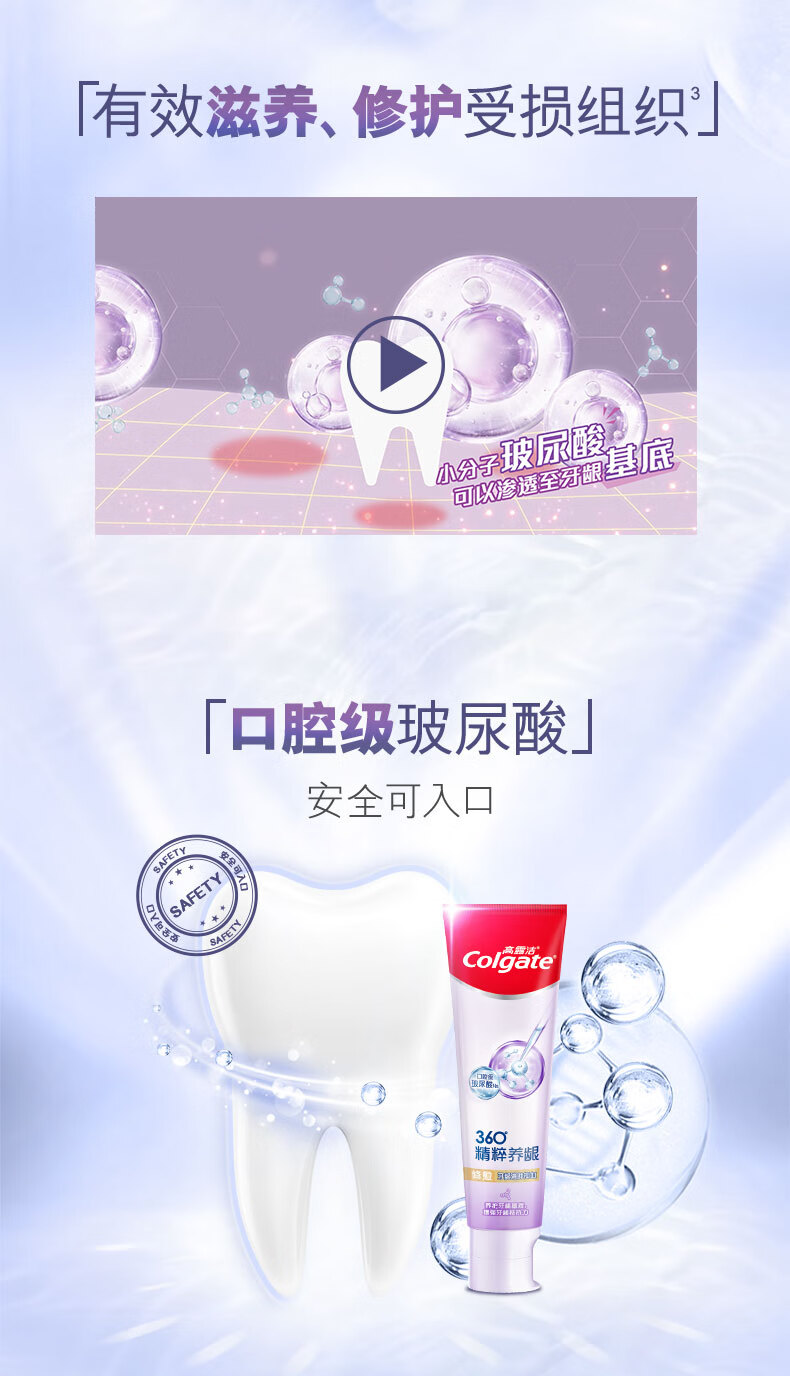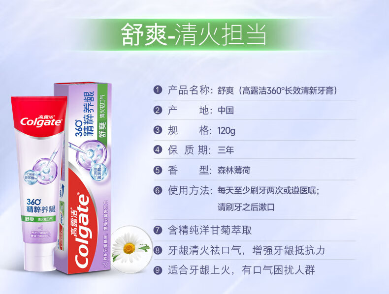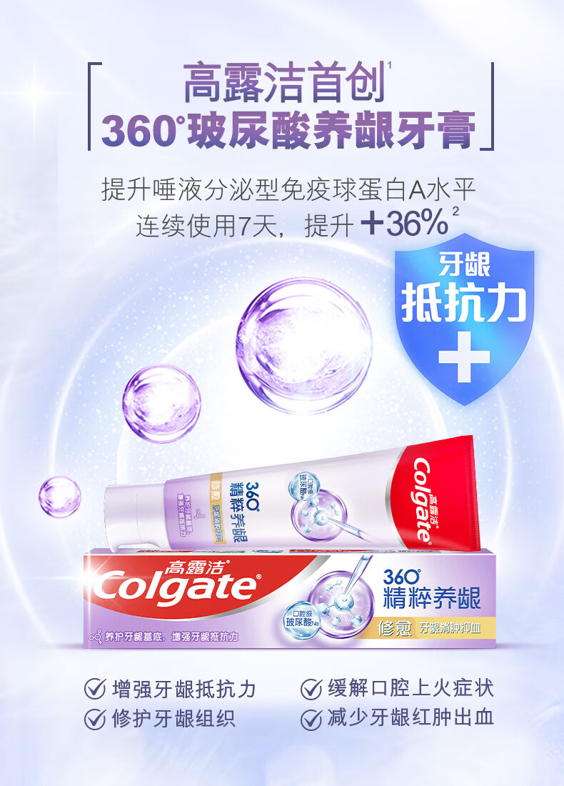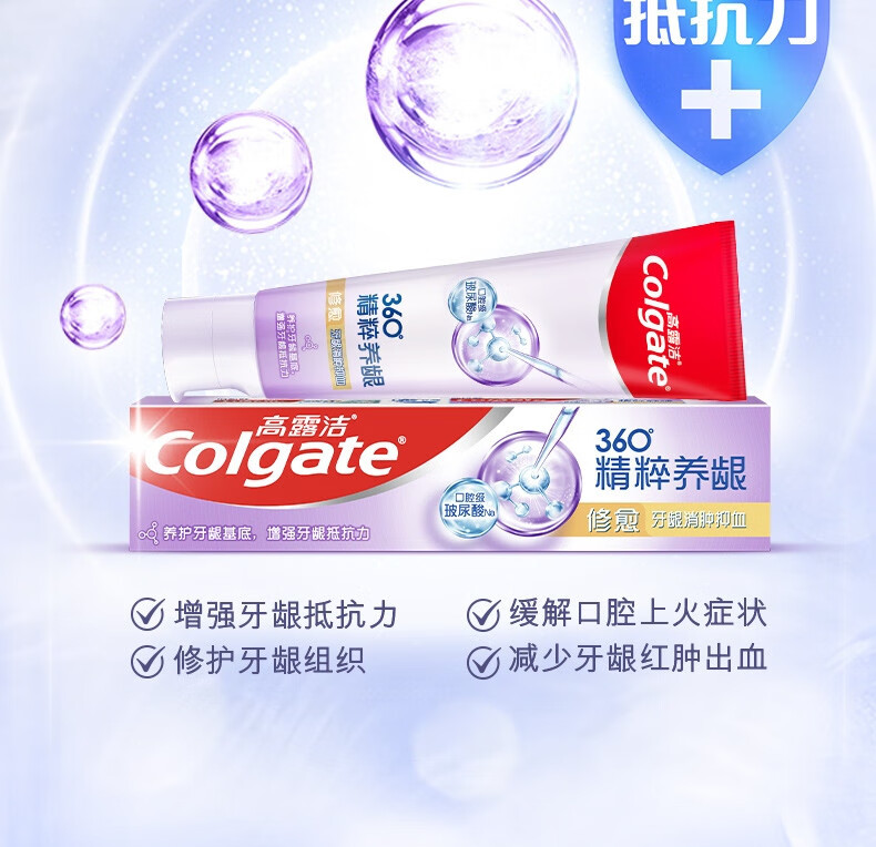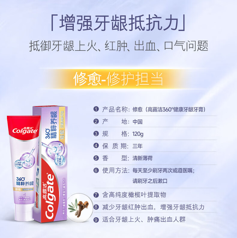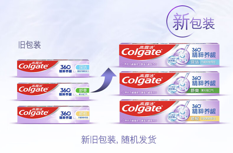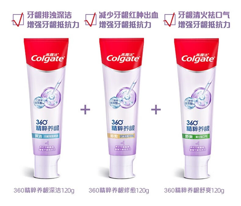 Colgate toothpaste 360 essence nourishes gums, whitens and brightens teeth, contains fluoride and prevents cavities, freshens breath for adults, three tubes, three effects, repairing + refreshing + deep cleansing, 120g*3 tubes