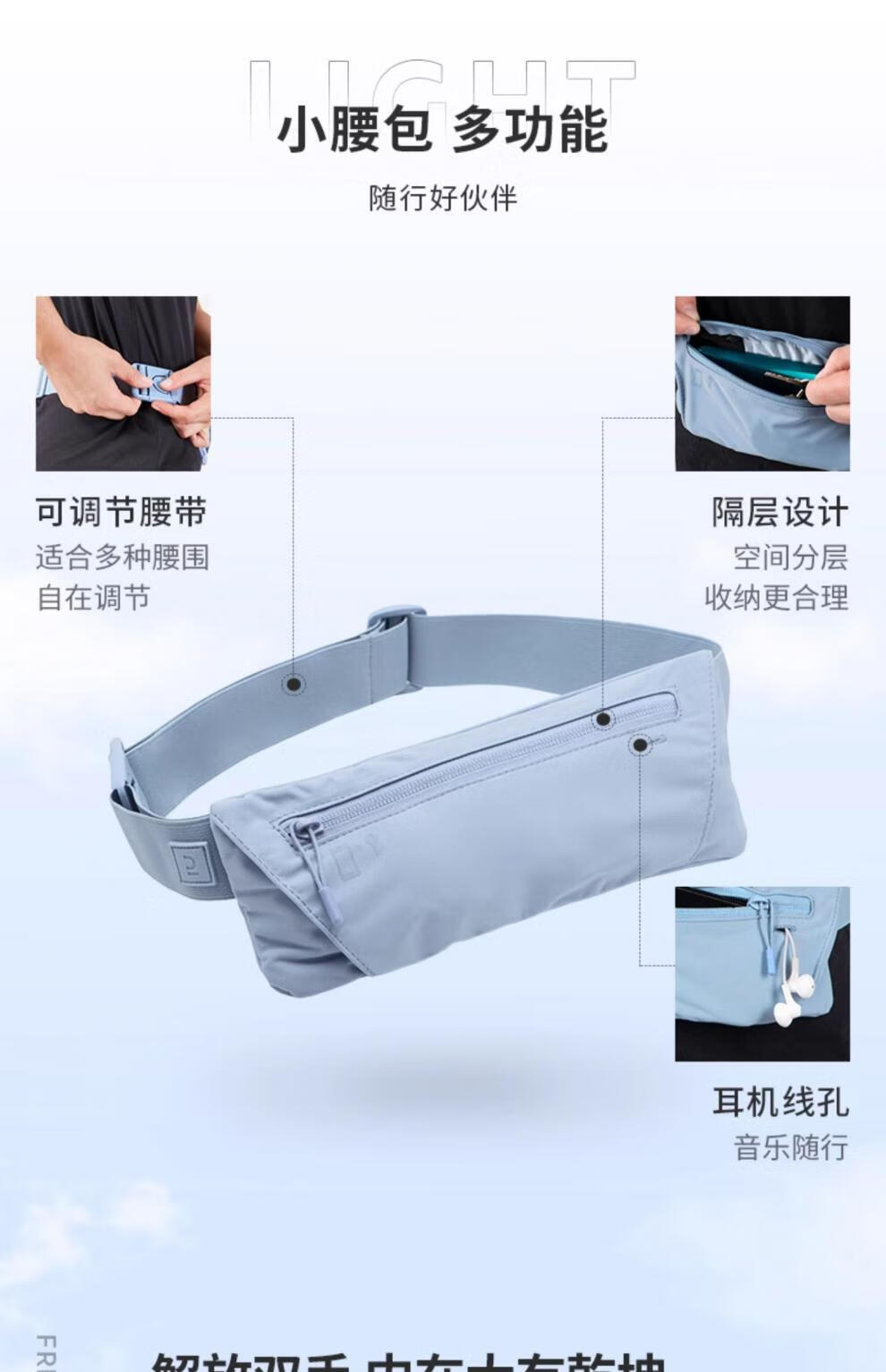 Decathlon (DECATHLON) sports running waist bag chest and waist dual-purpose lightweight outdoor mountaineering and cycling mobile phone bag unisex TSC3 khaki green one size