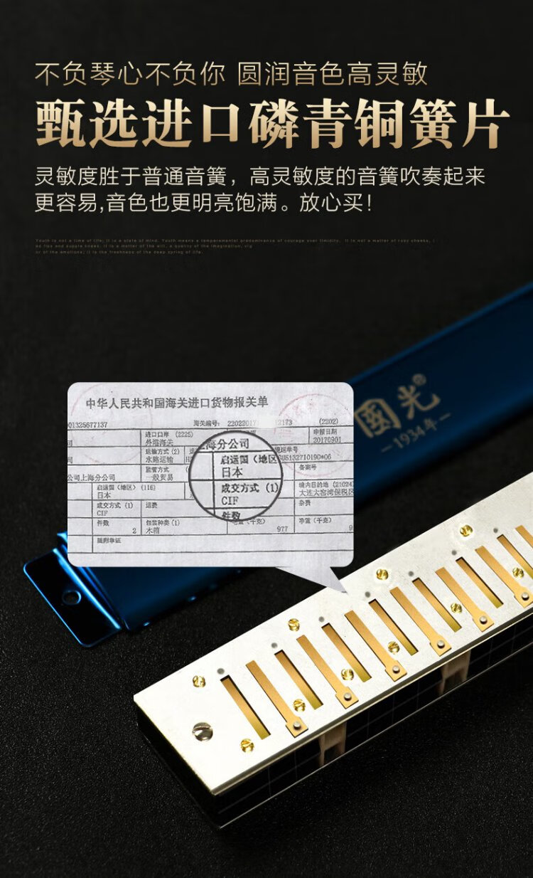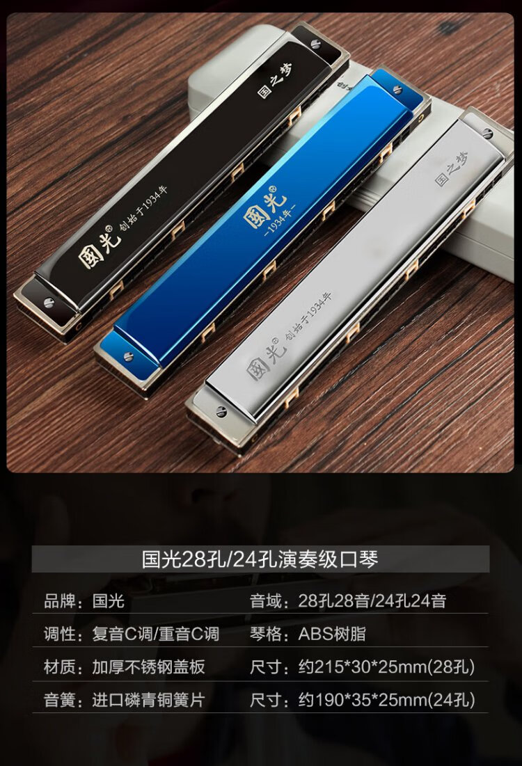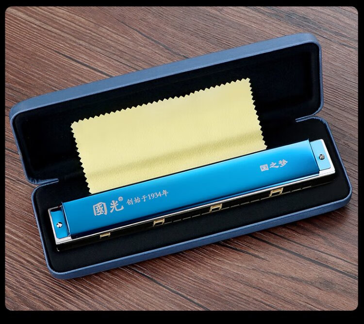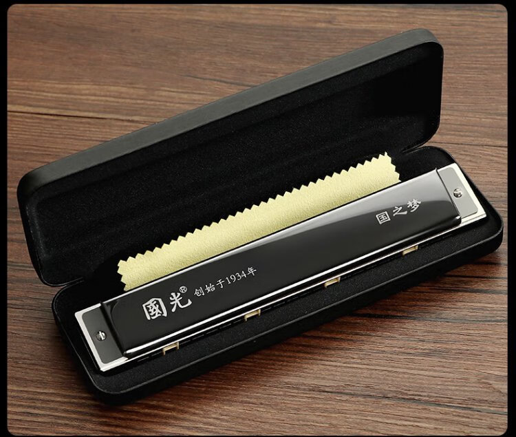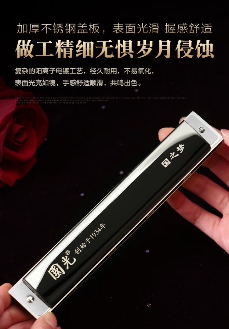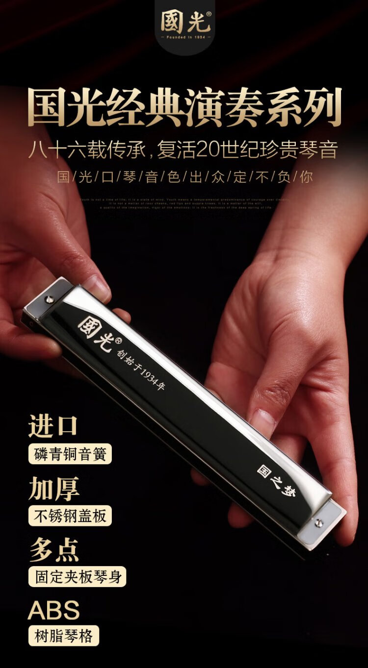 Guoguang harmonica professional performance level accented German imported gongs polyphonic C key for beginners entry-level adult self-study 24 holes C key accented silver + full set of gifts