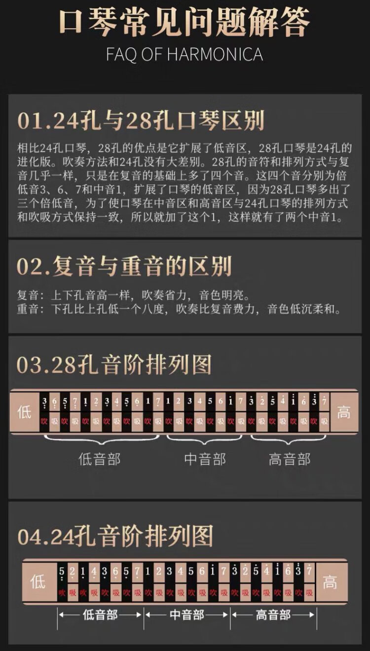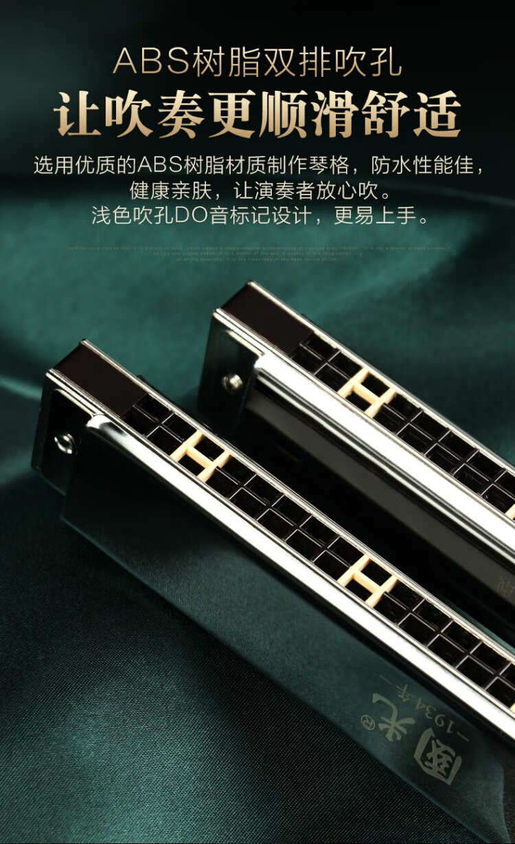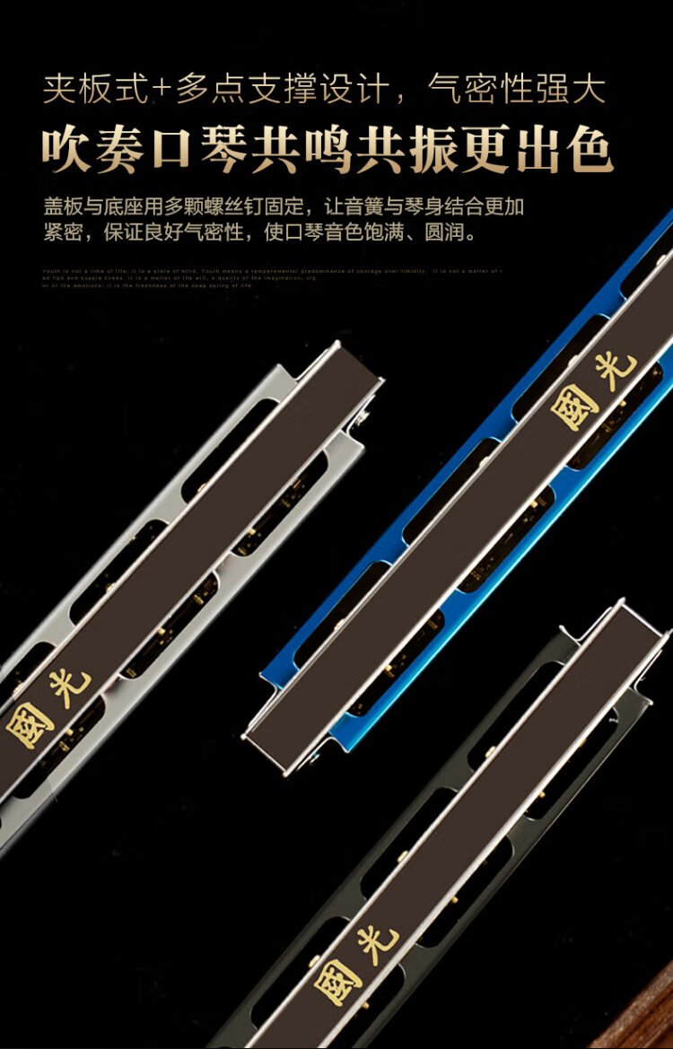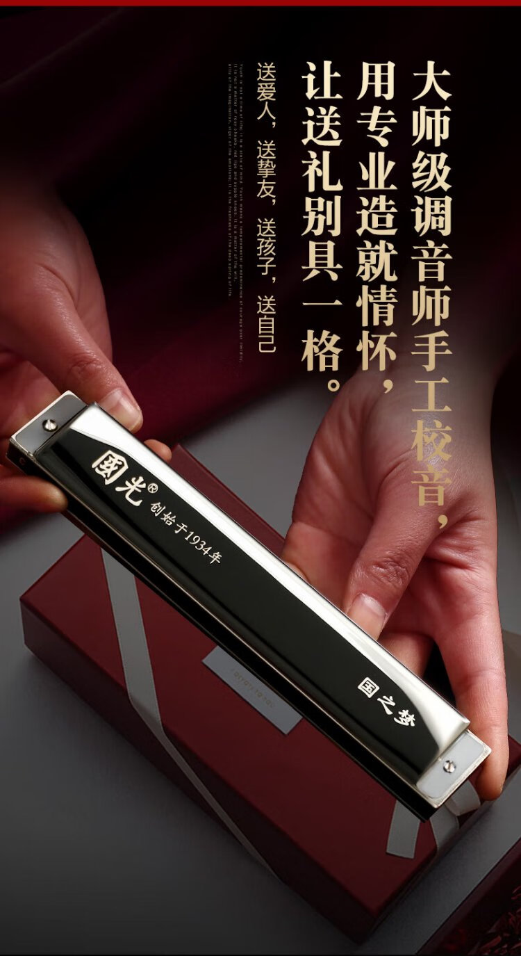 Guoguang harmonica professional performance level accented German imported gongs polyphonic C key for beginners entry-level adult self-study 24 holes C key accented silver + full set of gifts