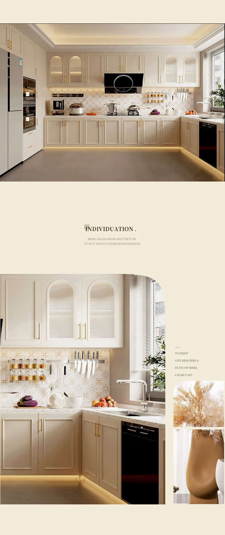 Huili Dejin Kaiyue cream style French cabinets retro light luxury cabinets overall home kitchen U-shaped whole house customization deposit 1 meter
