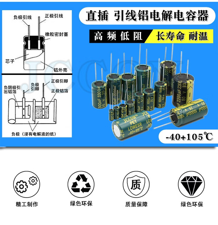 Direct plug high frequency aluminum electrolytic capacitor 10/16V/25/35/100/50v10uf22/470/1000 25v100uf 6*11 green gold high frequency 10 pcs