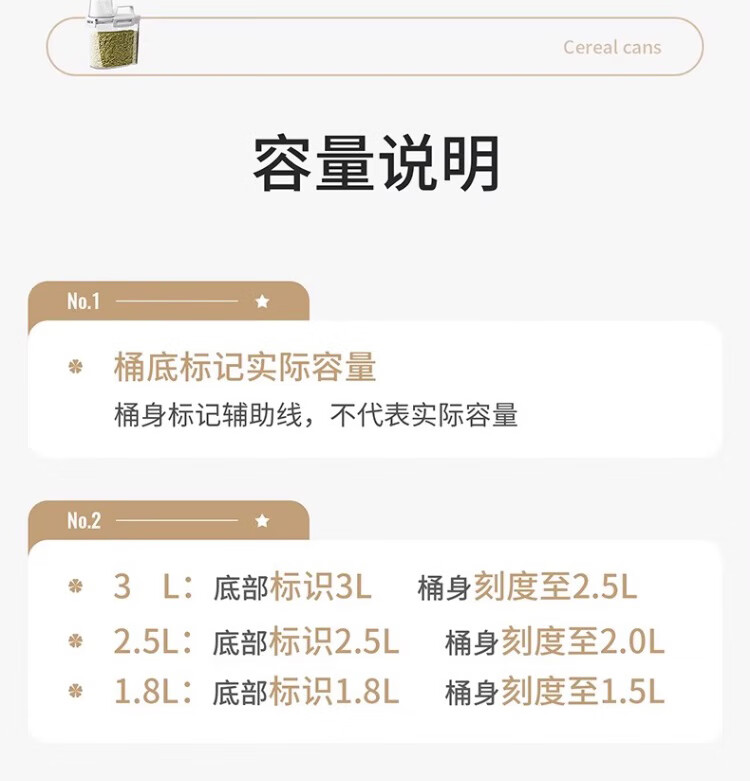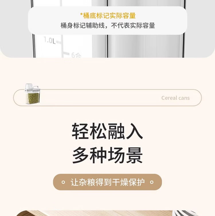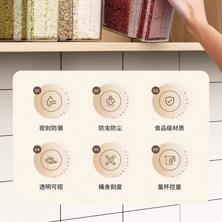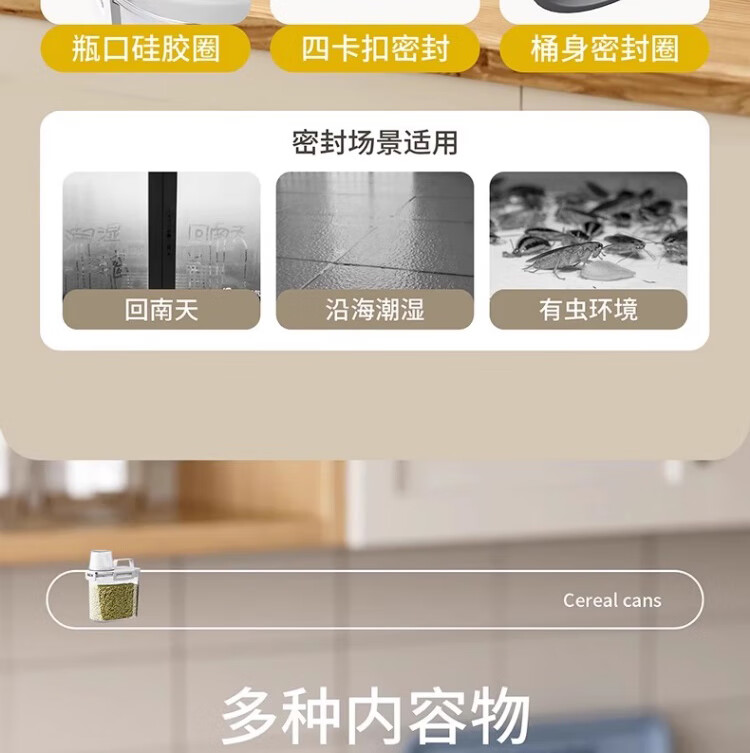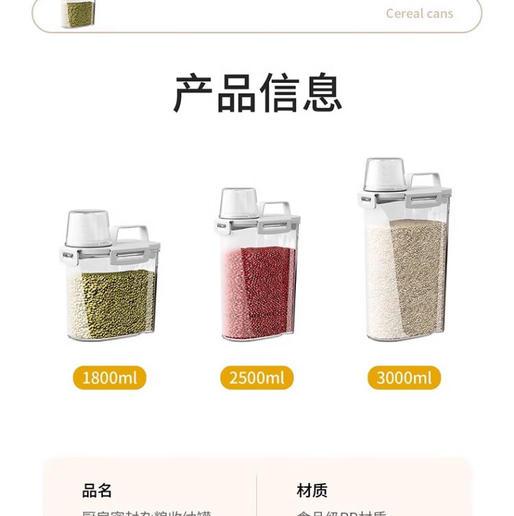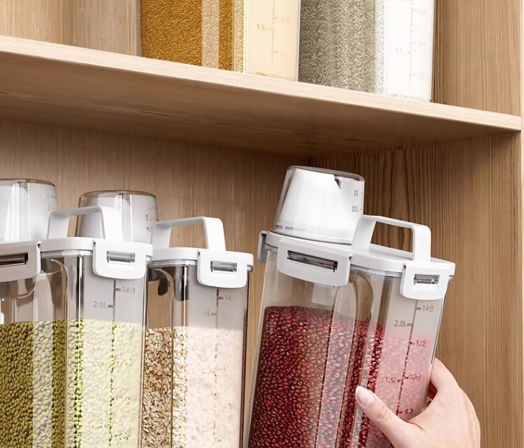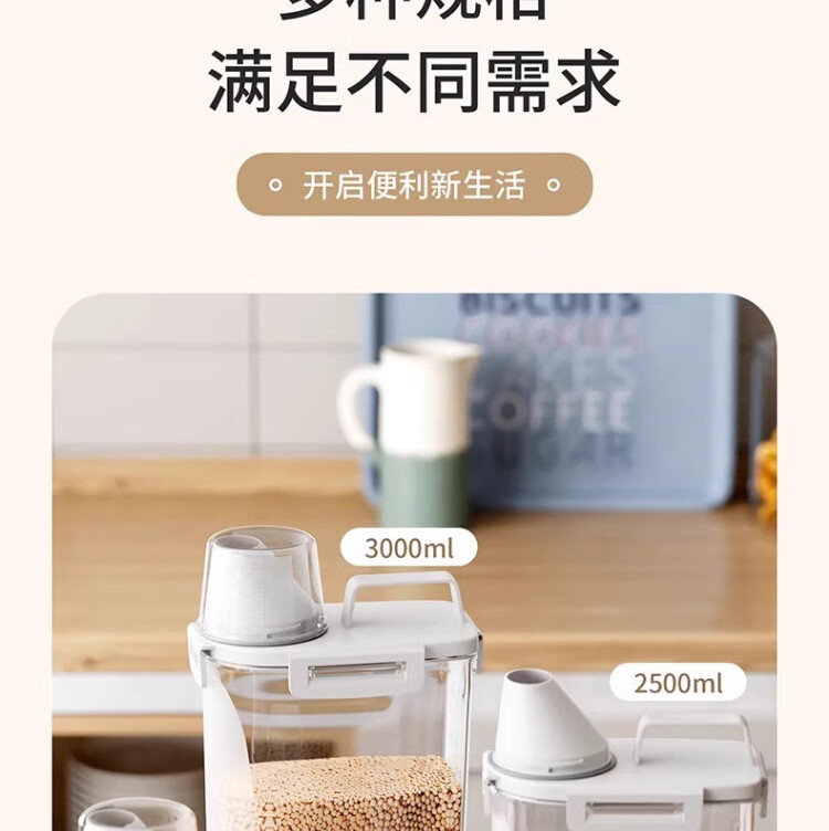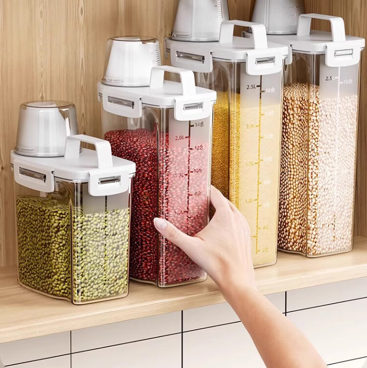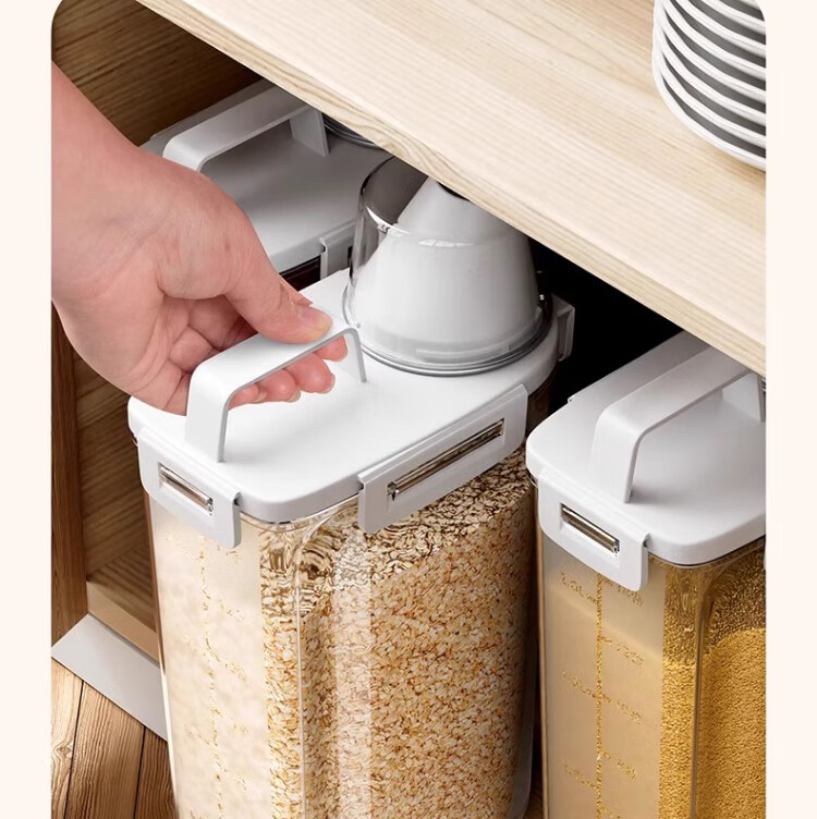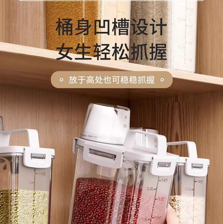WELLMEET grain storage box rice bucket food grade plastic kitchen household storage beans grain sealed storage tank 1 pack 2.5L sealed scale control