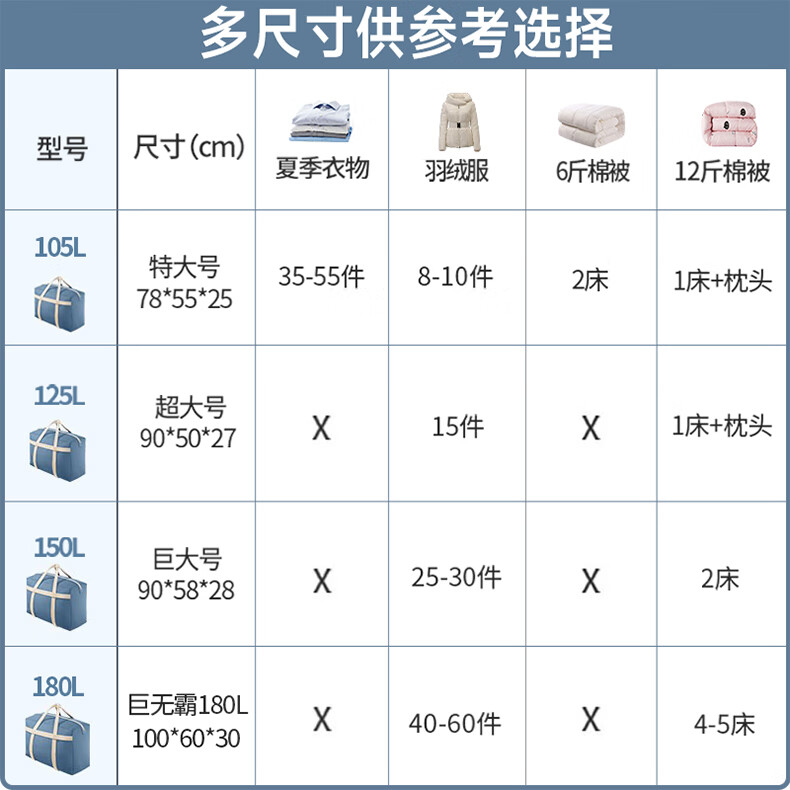 Angtu student quilt storage bag quilt clothing moving packing bag woven bag large capacity snakeskin luggage bag 180L 1 pack - for students living on campus