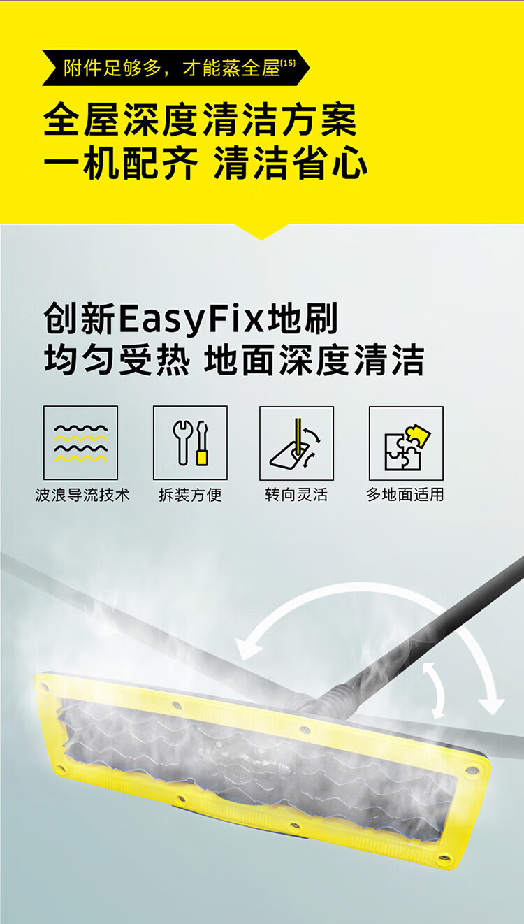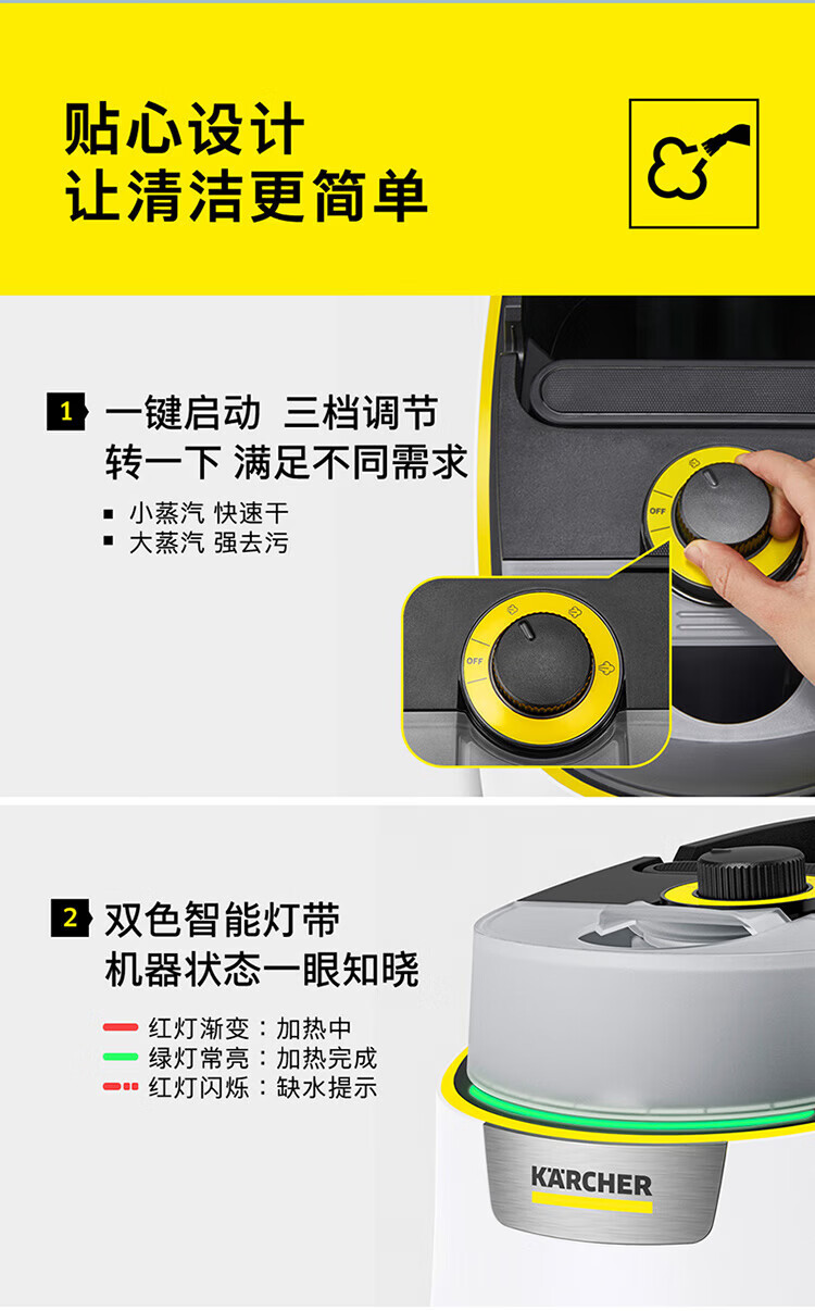KARCHER household high temperature and high pressure steam cleaning kitchen range hood air conditioning cleaning mop sterilization and mite removal floor washing machine sweeping robot vacuum cleaner companion SC4D standard version + carpet frame