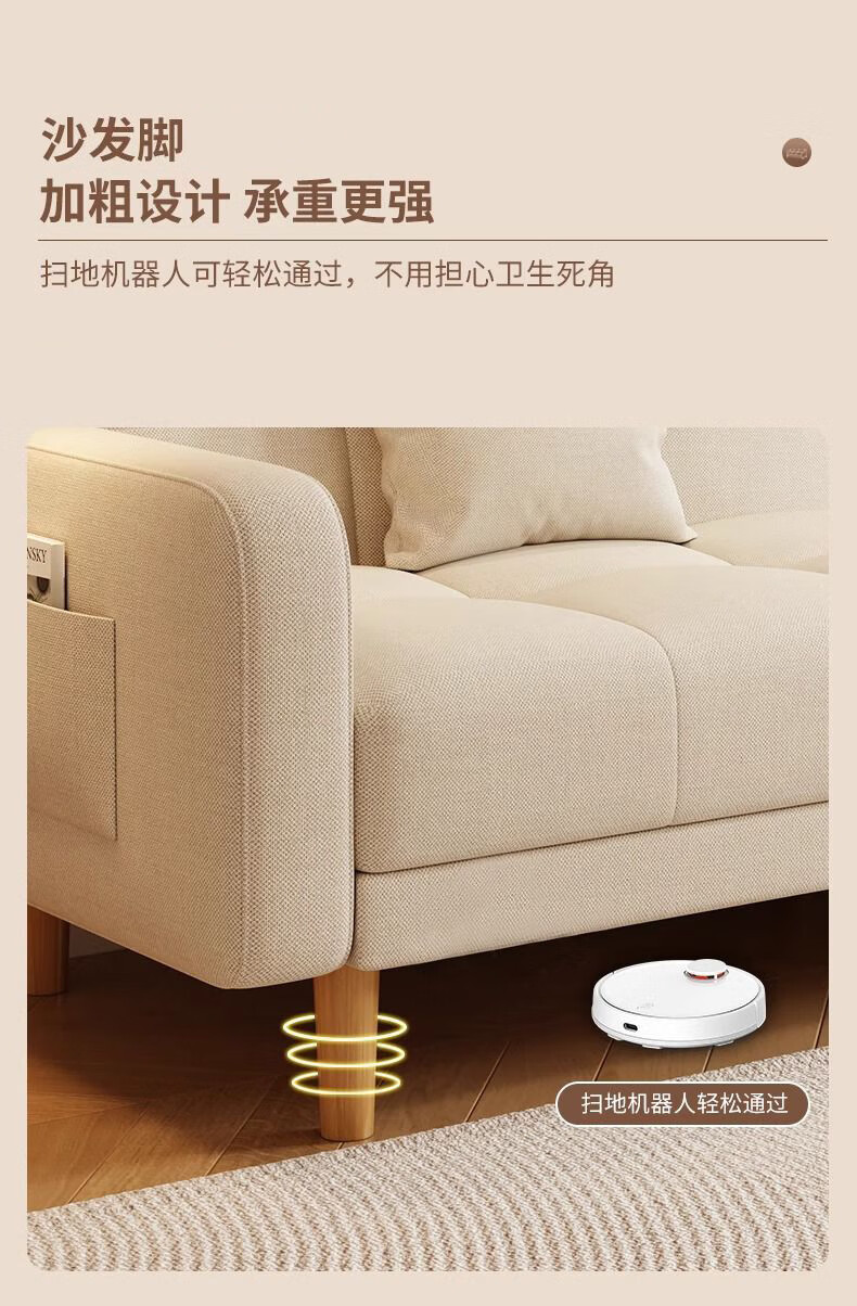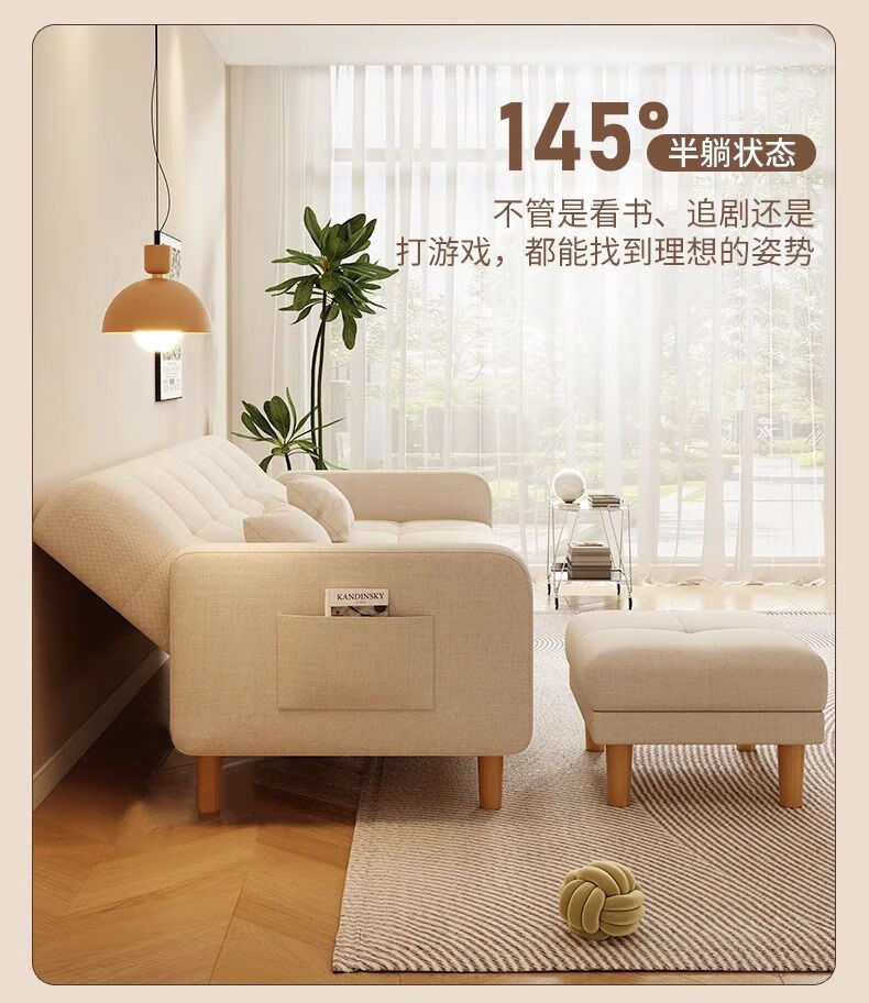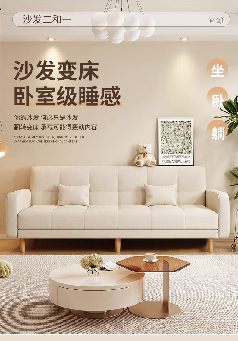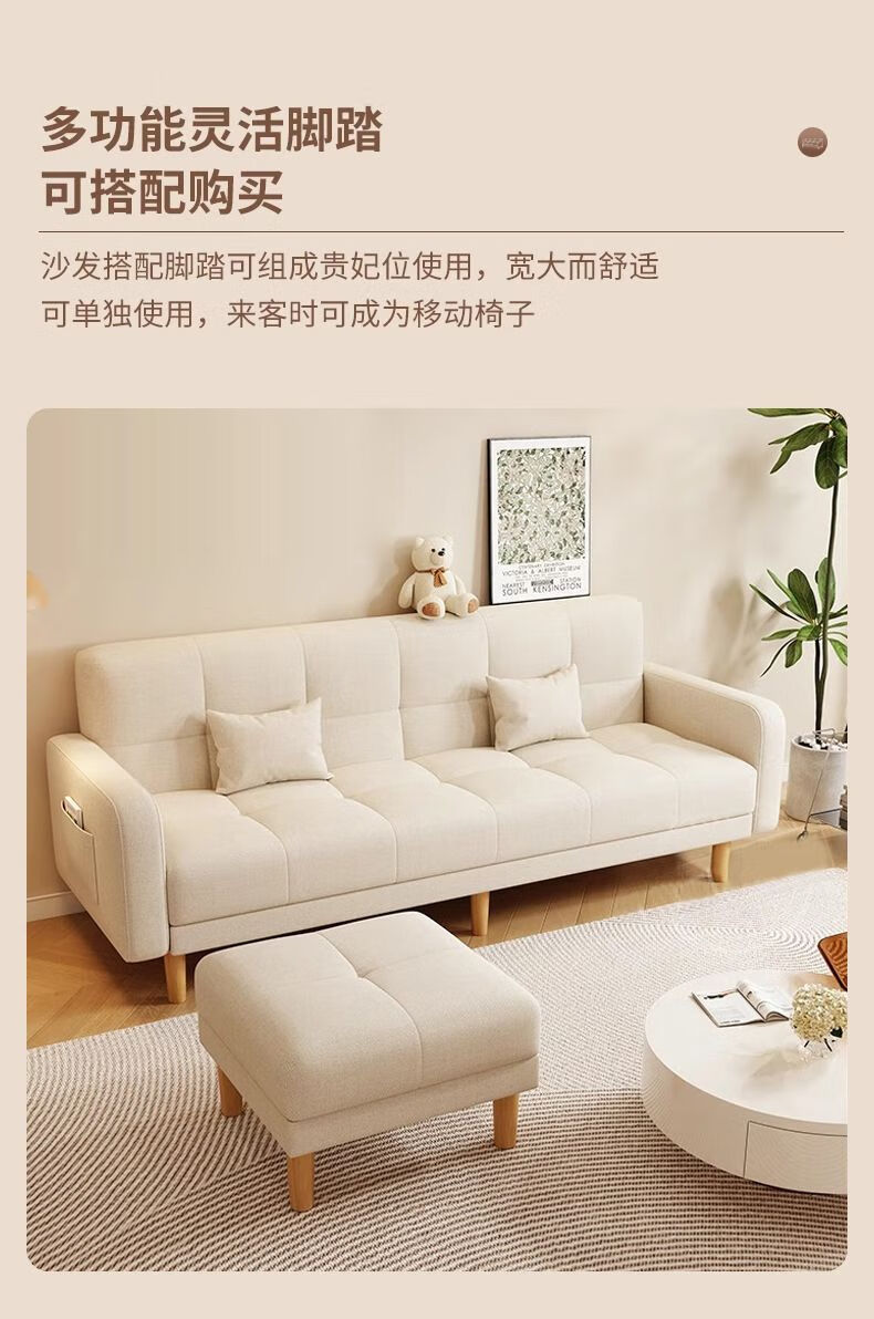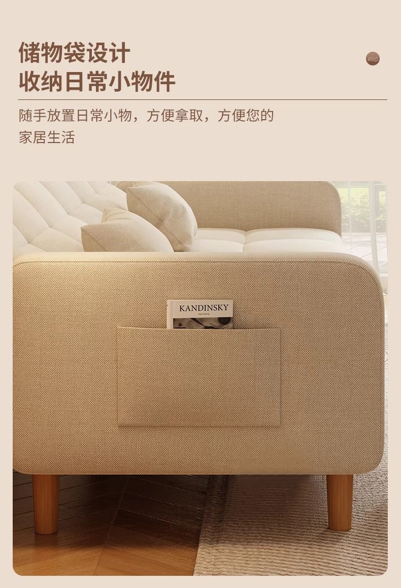 Chimai 2024 New Sofa Living Room Folding Sofa Bed Rental Small Apartment Anti-cat Claw Cotton and Linen Style + Solid Wood Sofa Legs Light Gray Three-Seater 1.7m + Pillow