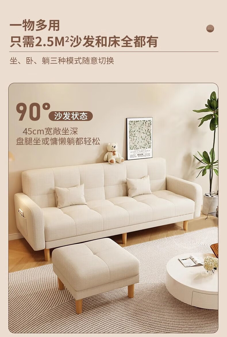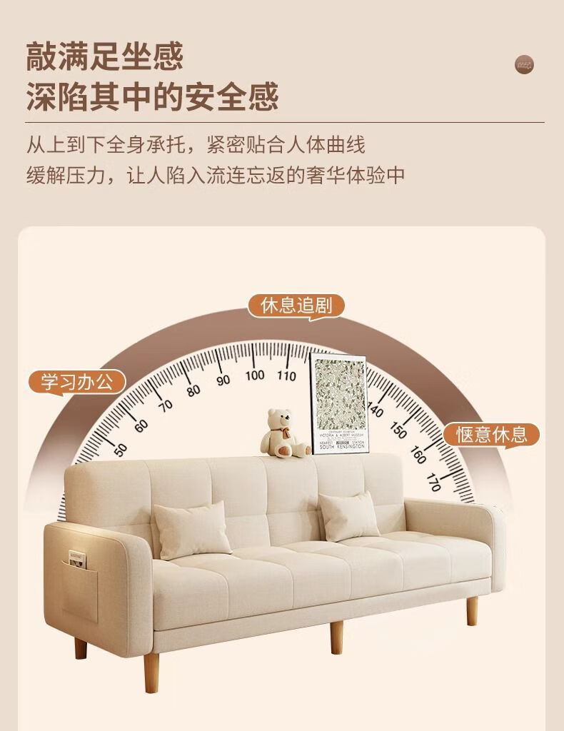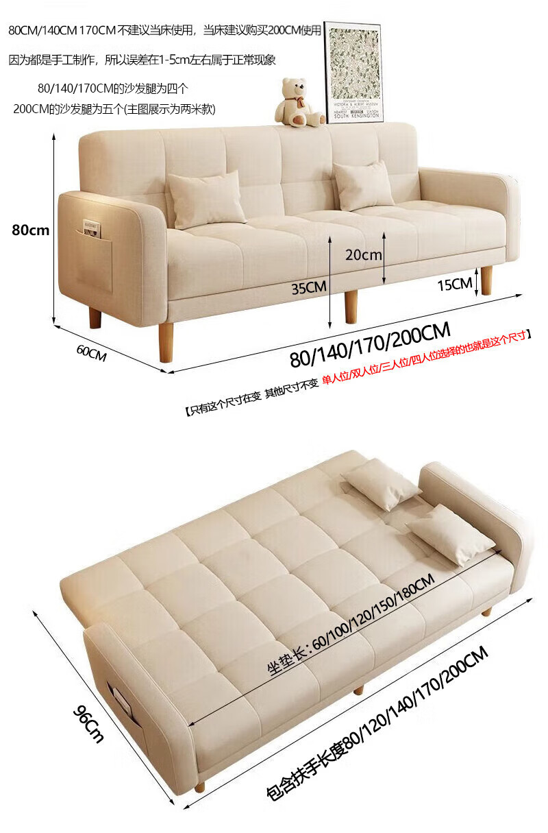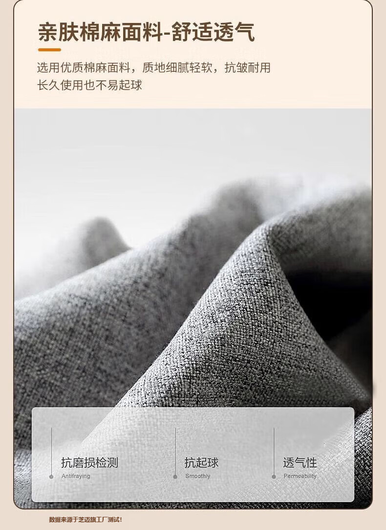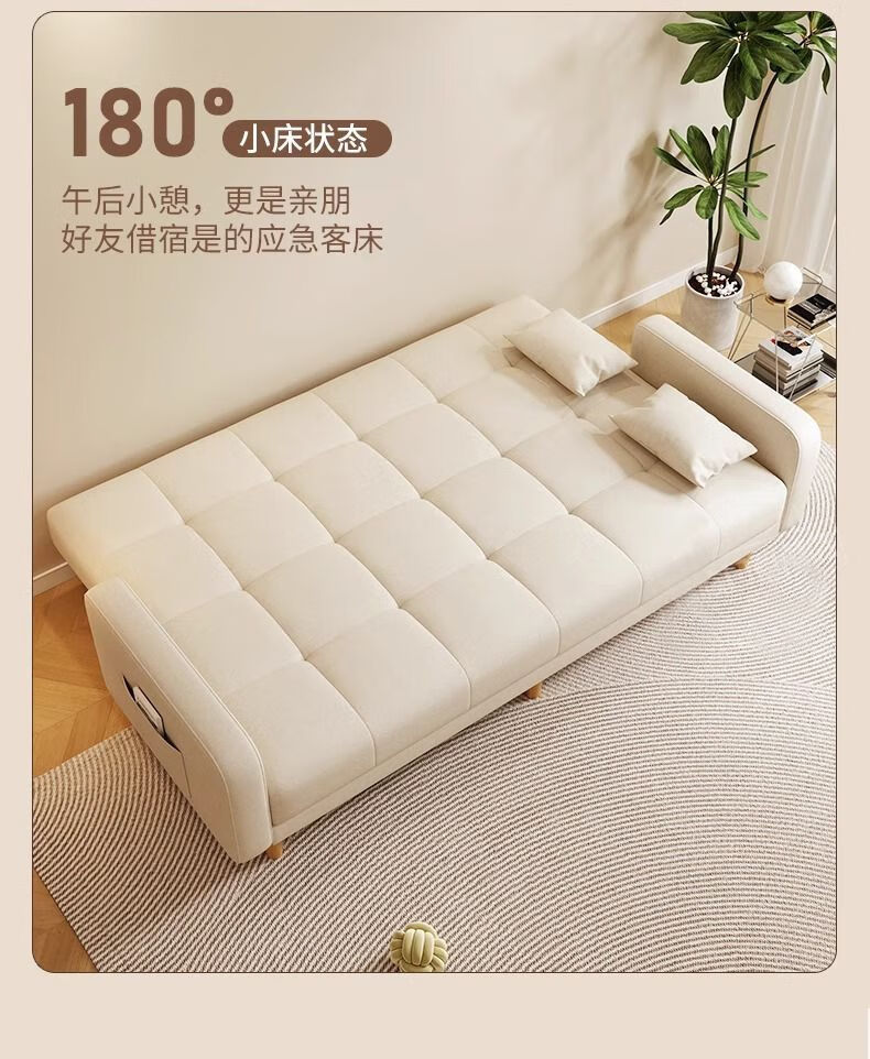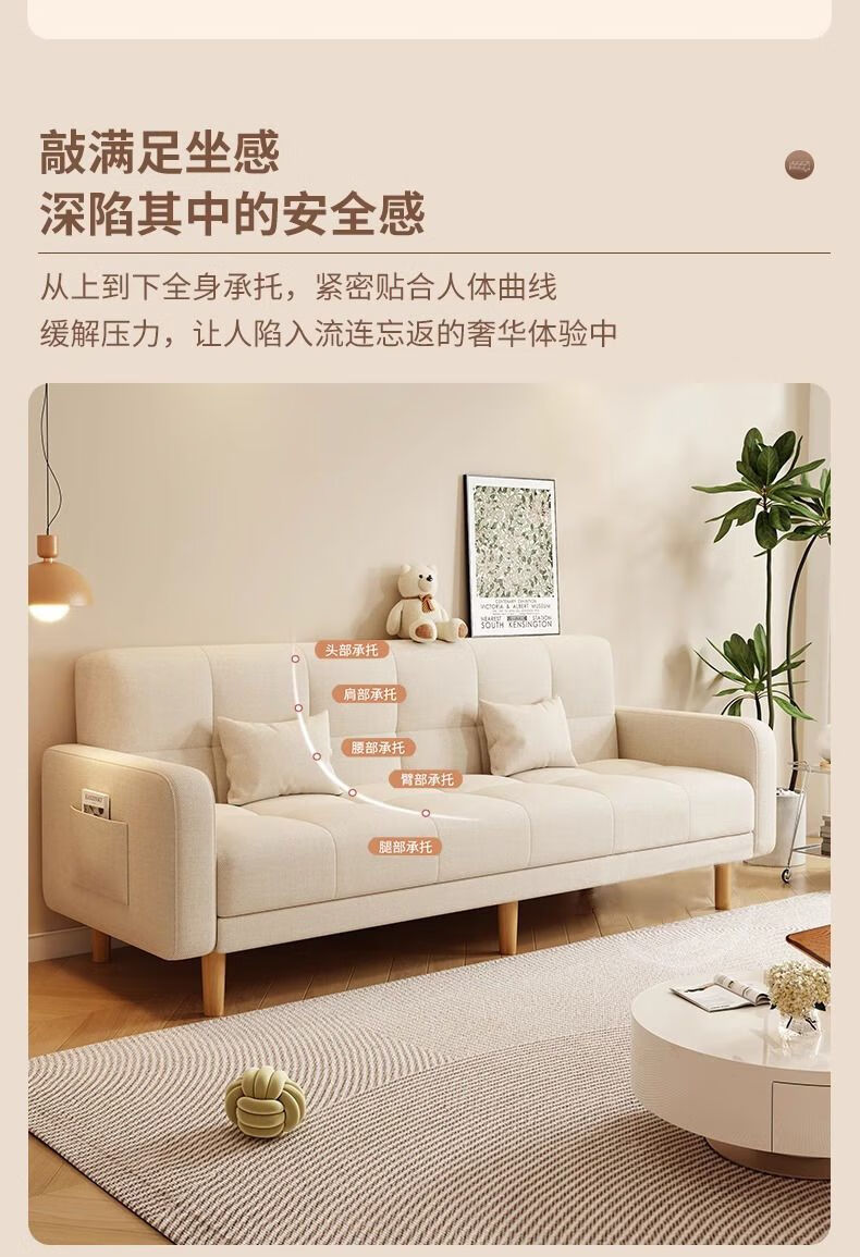 Chimai 2024 New Sofa Living Room Folding Sofa Bed Rental Small Apartment Anti-cat Claw Cotton and Linen Style + Solid Wood Sofa Legs Light Gray Three-Seater 1.7m + Pillow