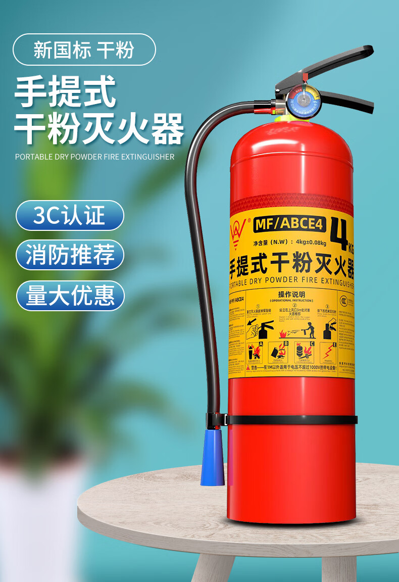 Yongan 4kg dry powder fire extinguisher commercial household vehicle national fire certification MFZ/ABC4 new national standard 90 powder portable 2kg dry powder fire extinguisher