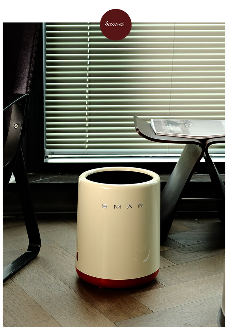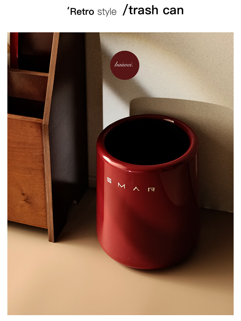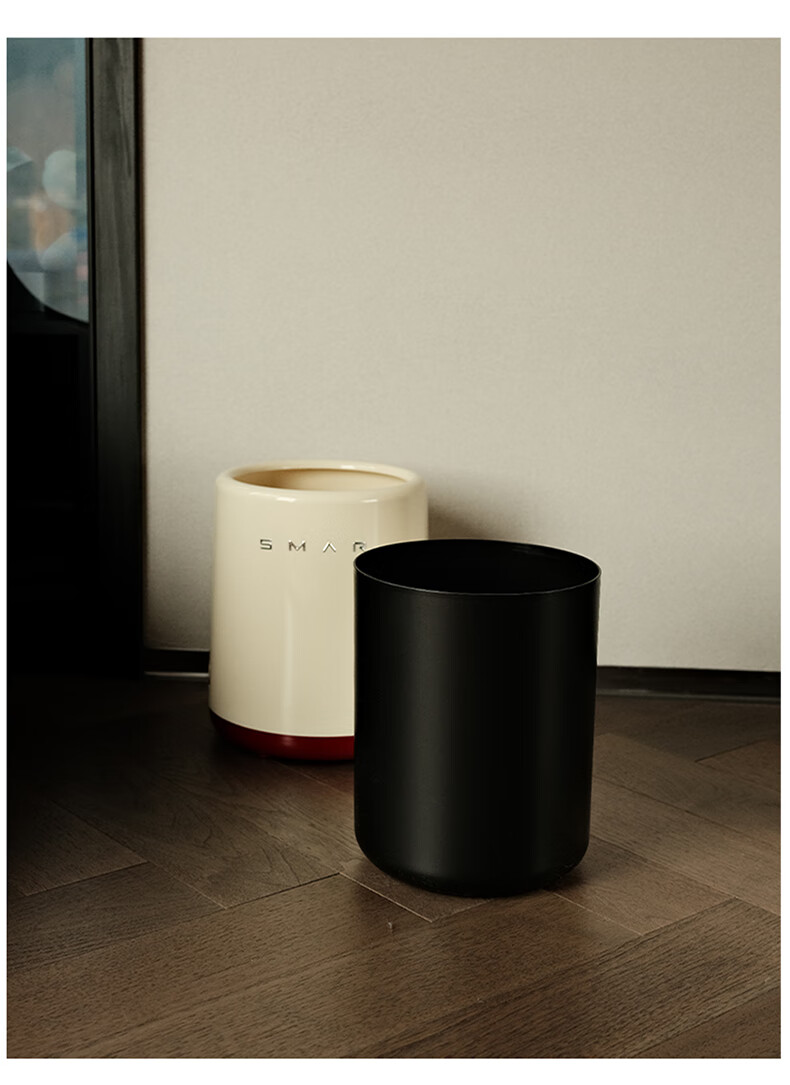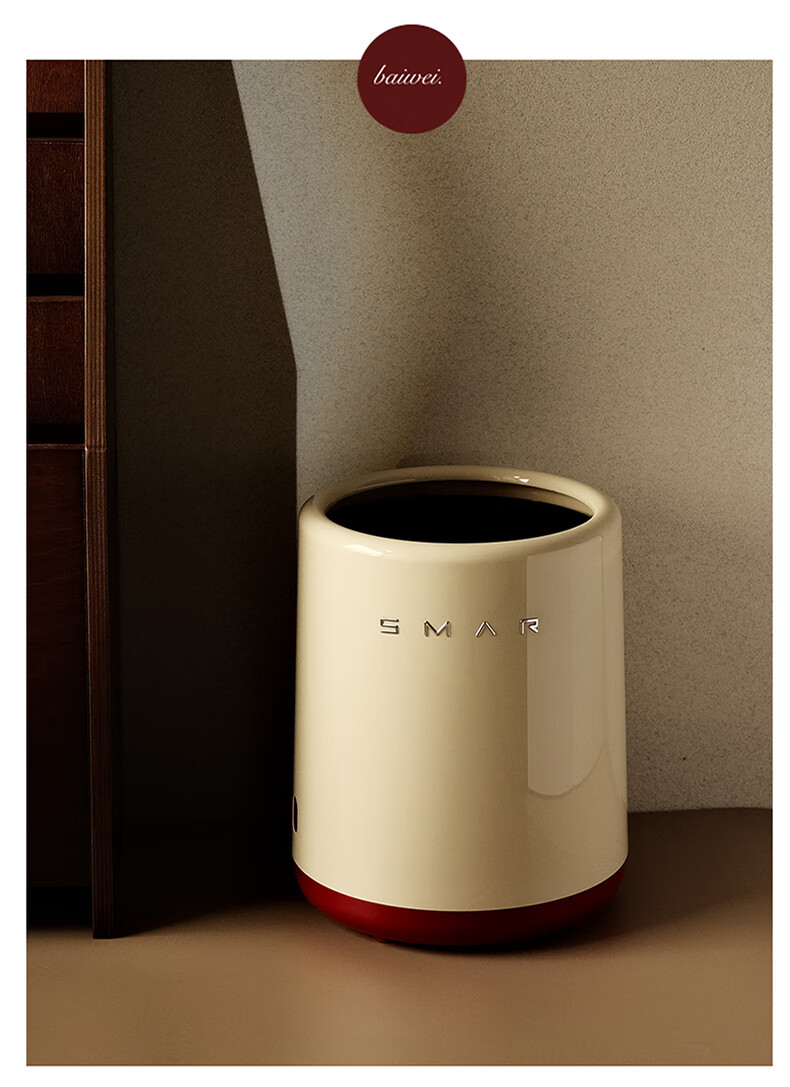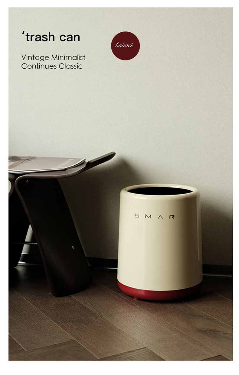 Lazy space simple retro trash can household large capacity open living room bedroom trash can paper basket bathroom trash can retro bucket cream color