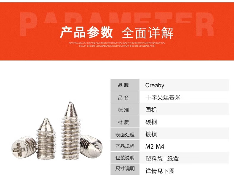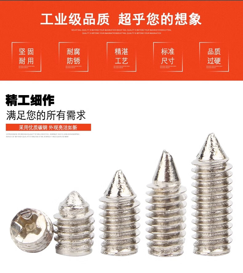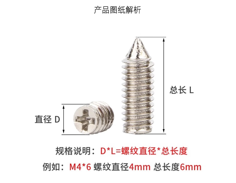 Creaby nickel-plated cross tip set screw national standard headless tip machine screw cross recessed tapered end jack wire M2.5*6 500 pieces