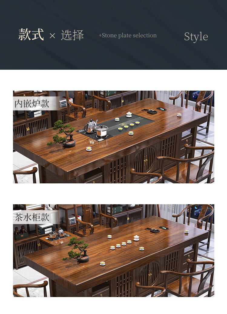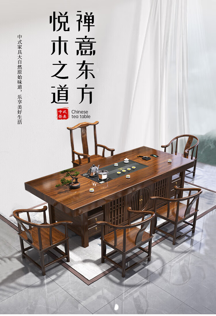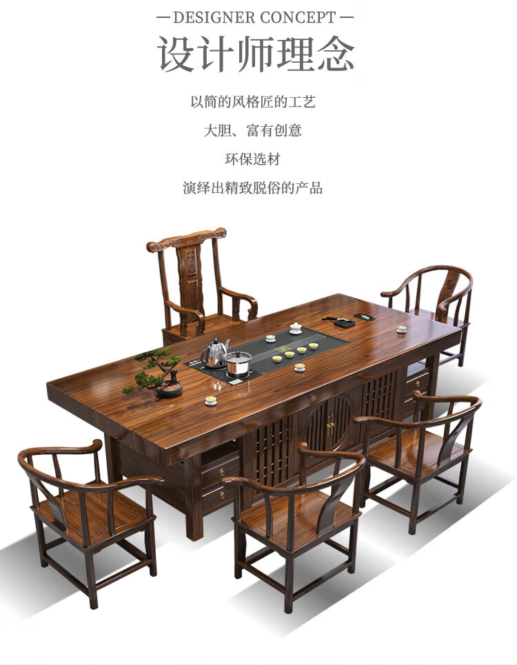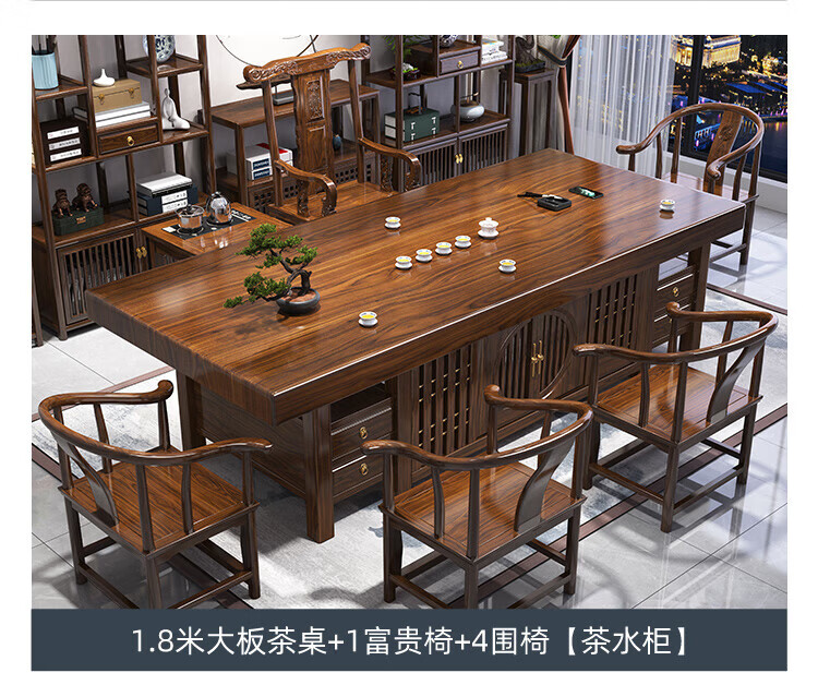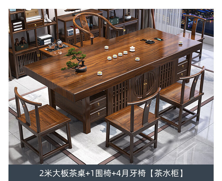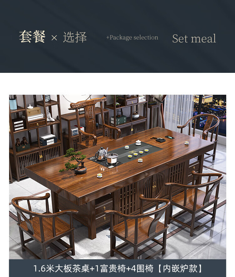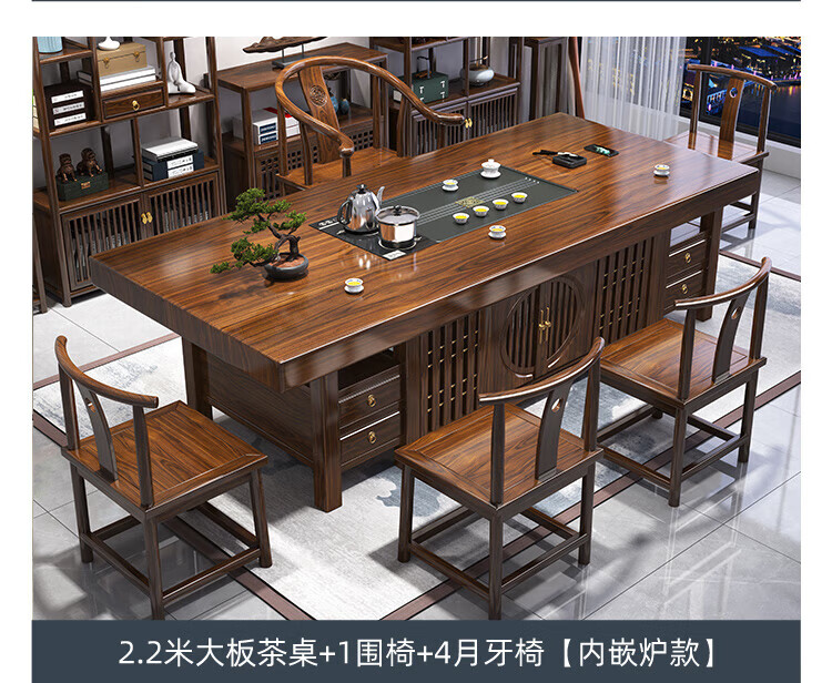 Jinli's ingenious solid wood large board tea table and chair combination one table and five chairs office coffee table living room home new Chinese Zen tea table stone plate style large board + 1 armchair + 4 crescent chairs 1.6m daily gold large board
