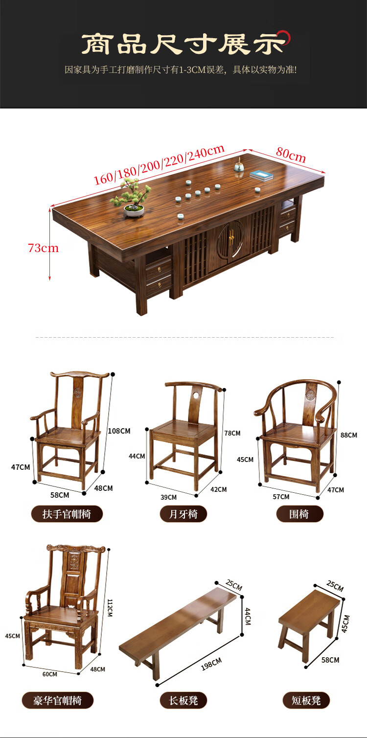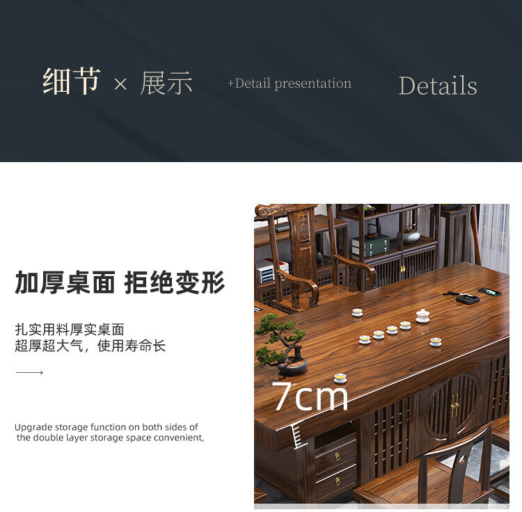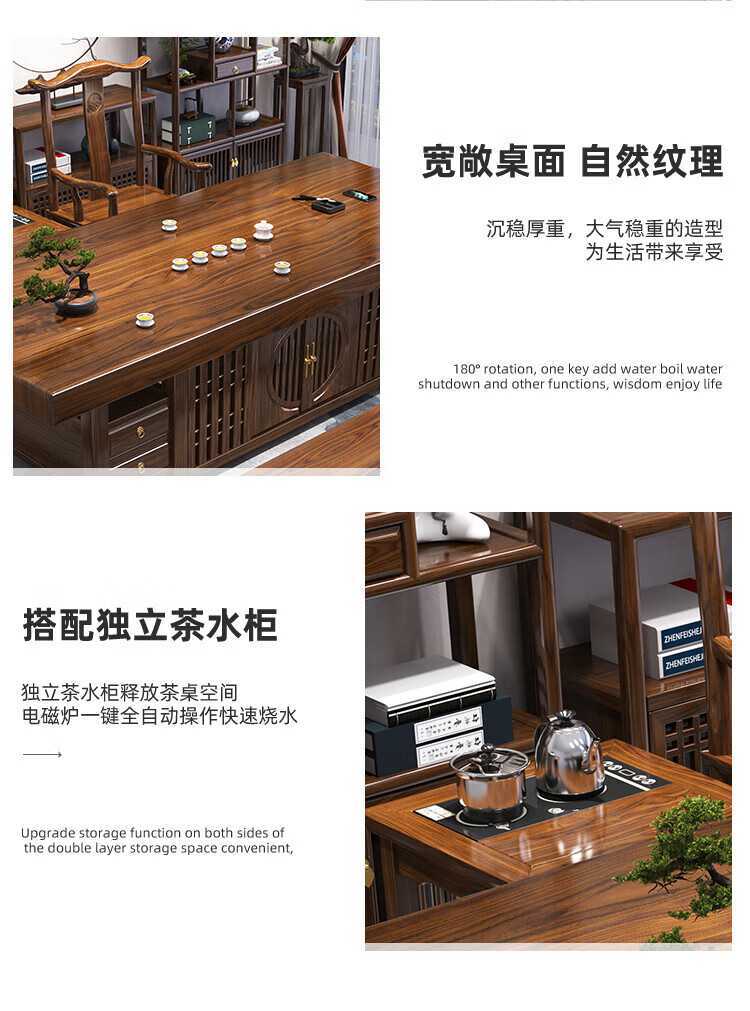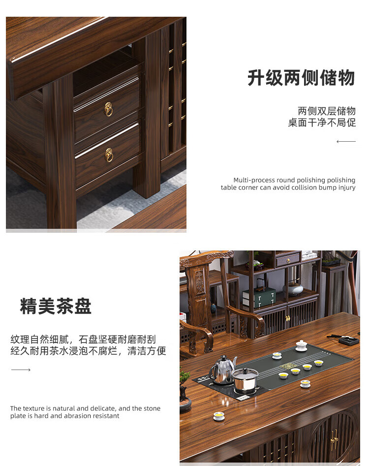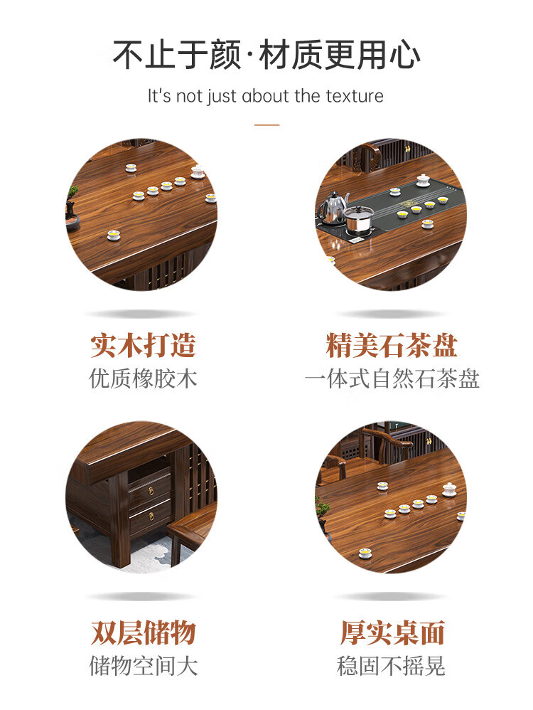Jinli's ingenious solid wood large board tea table and chair combination one table and five chairs office coffee table living room home new Chinese Zen tea table stone plate style large board + 1 armchair + 4 crescent chairs 1.6m daily gold large board