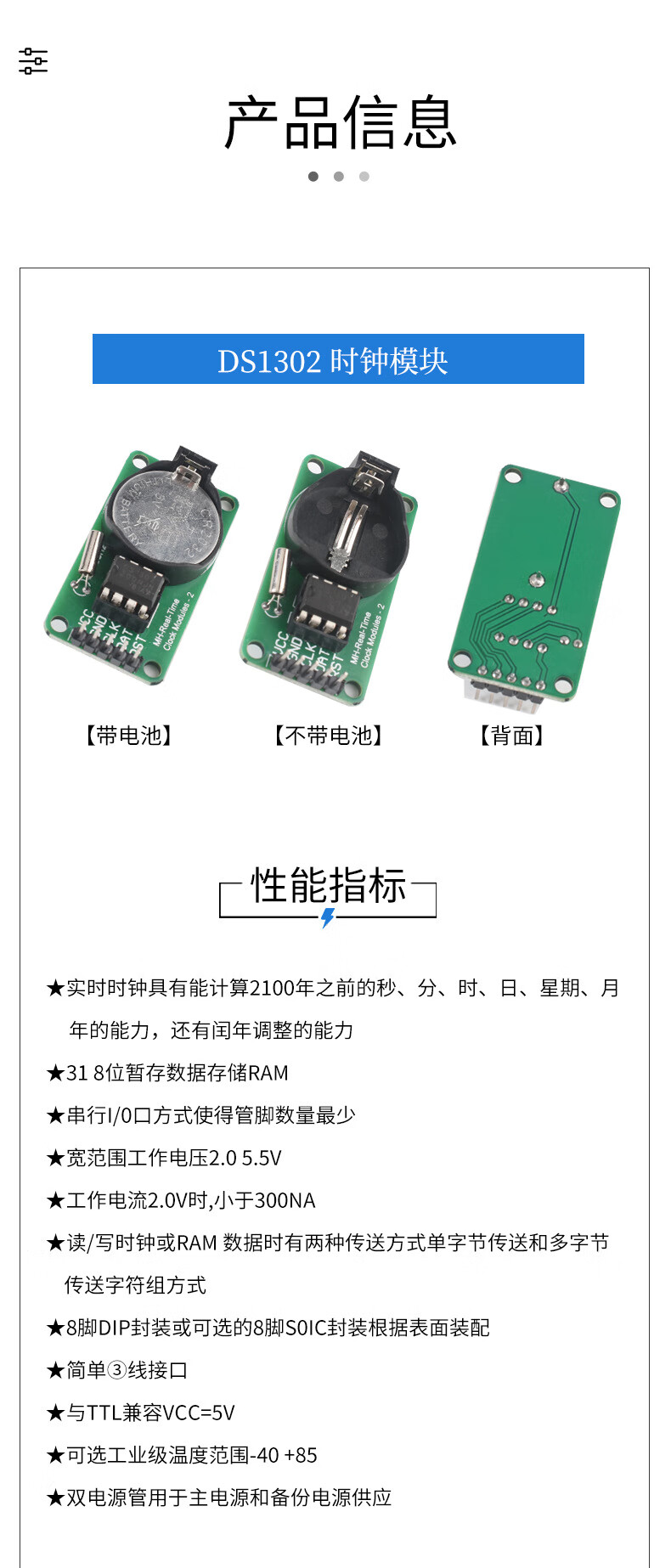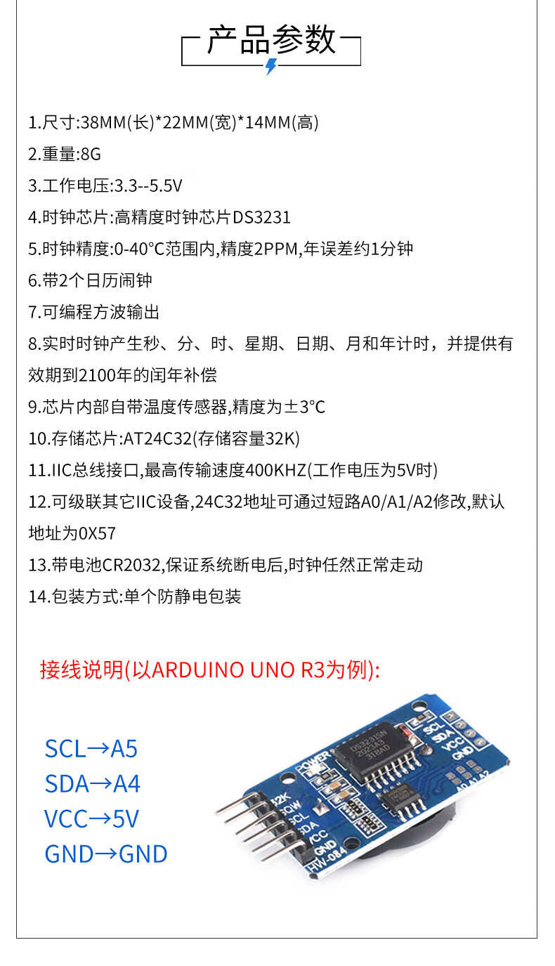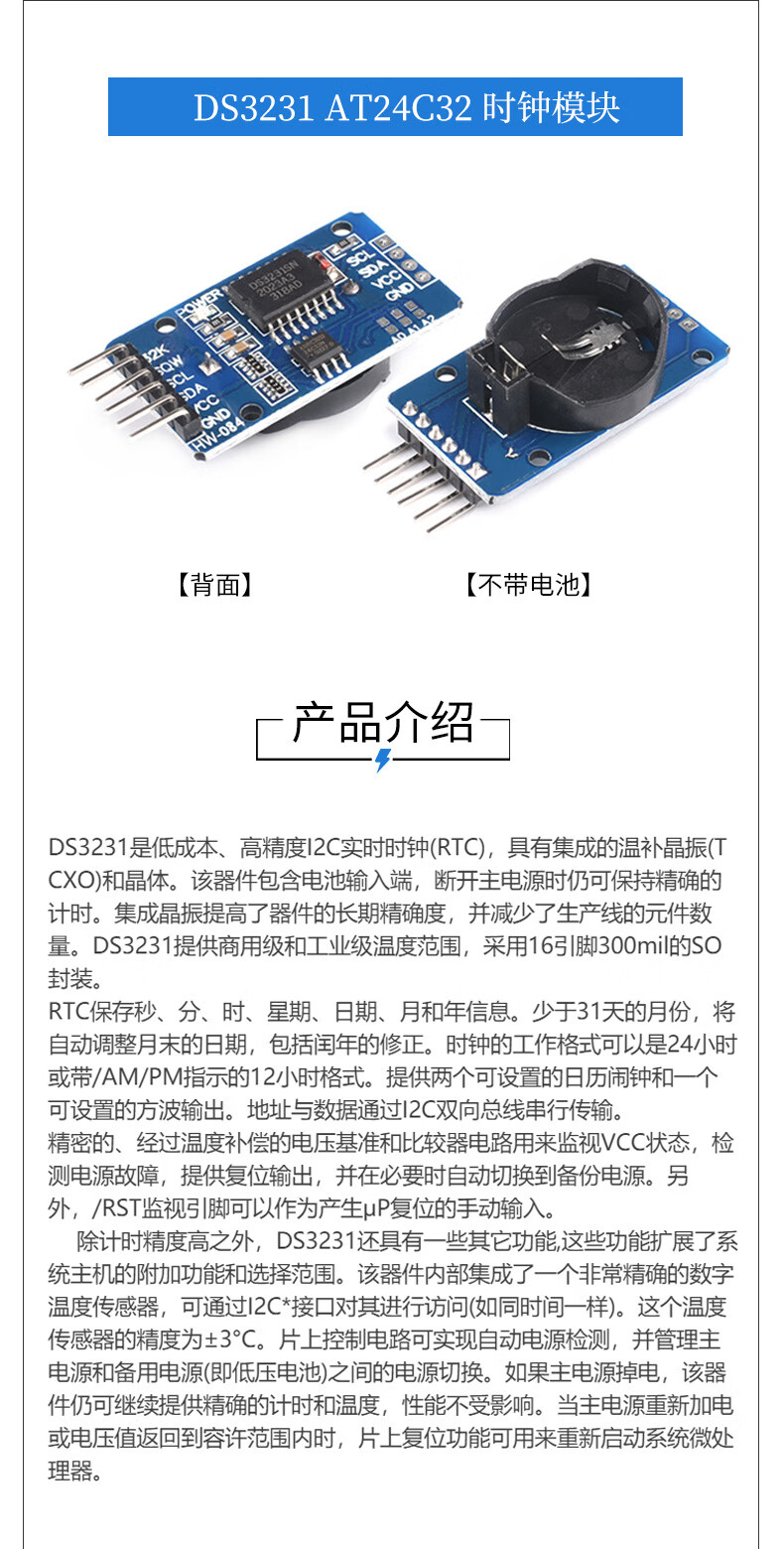 DS1302/3231/1307 PCF8563 real-time clock module time power-off travel time storage timing live DS3231 clock module blue plate curved needle with battery