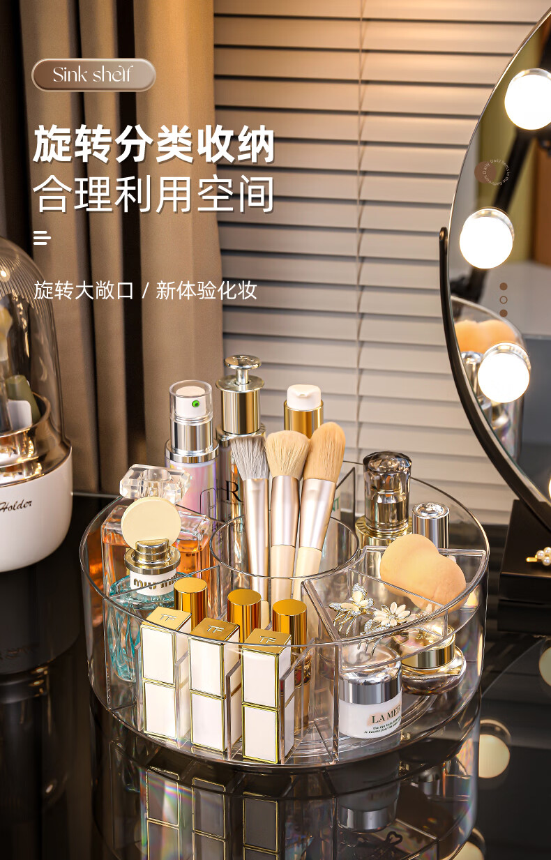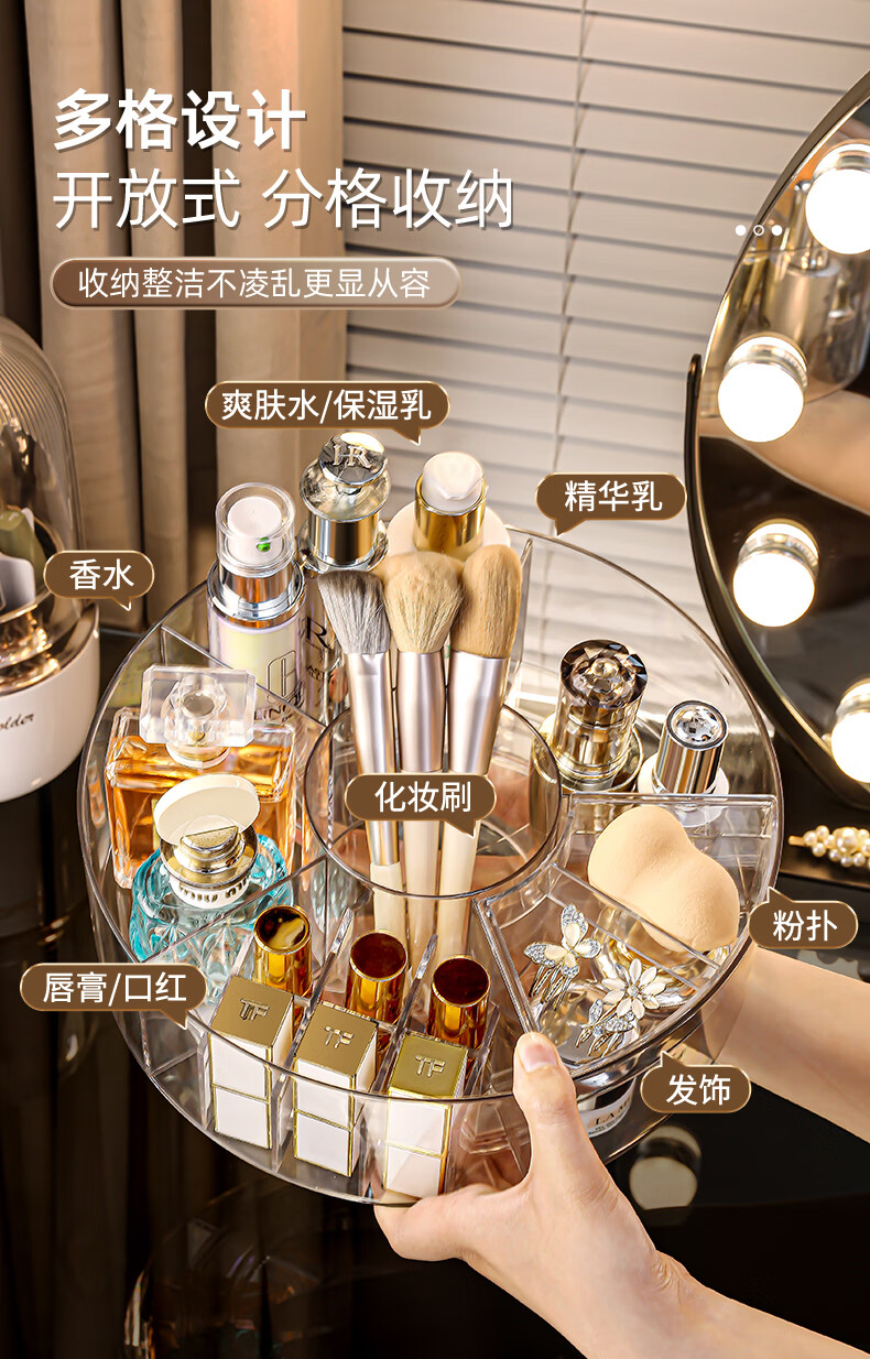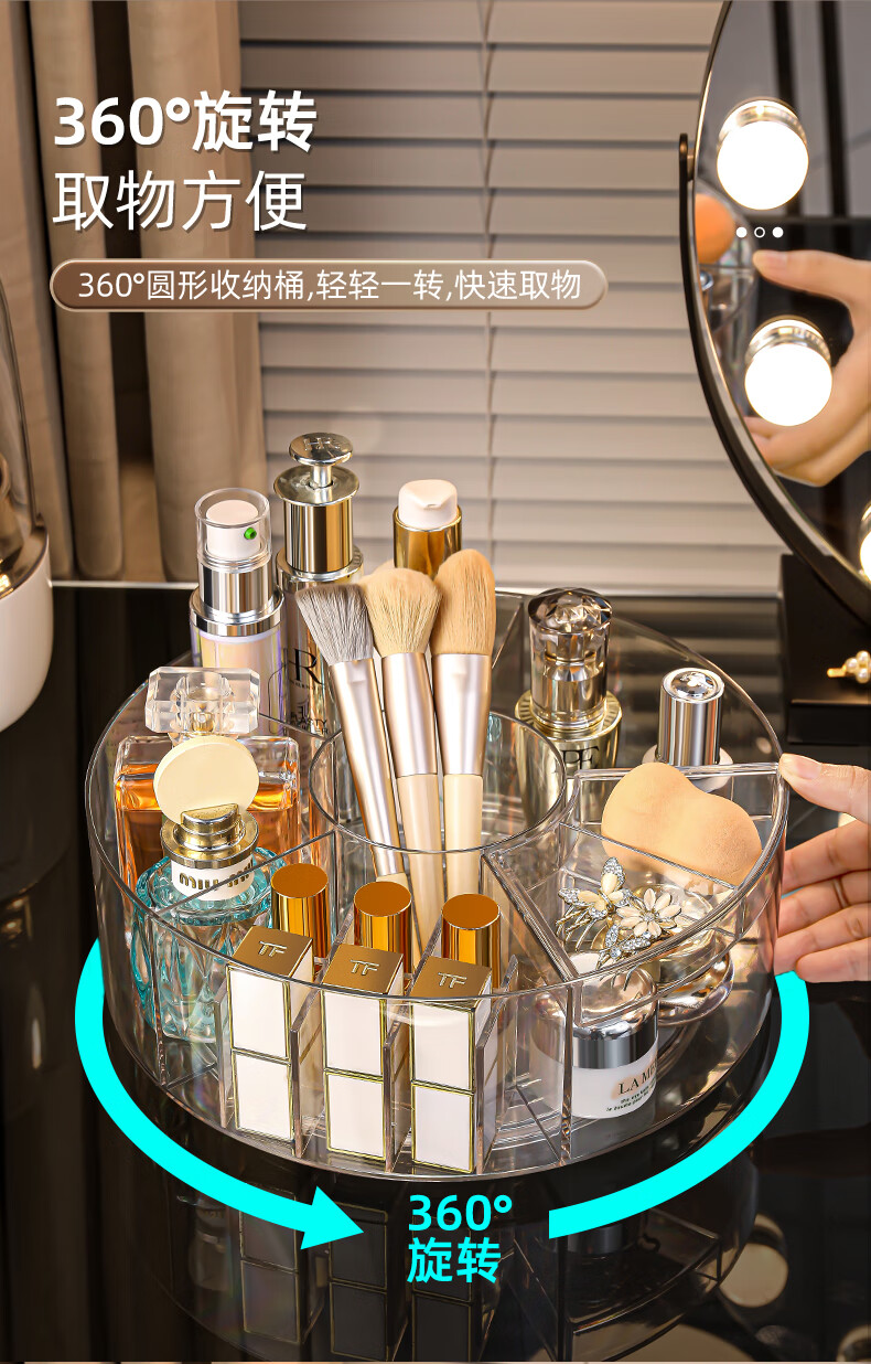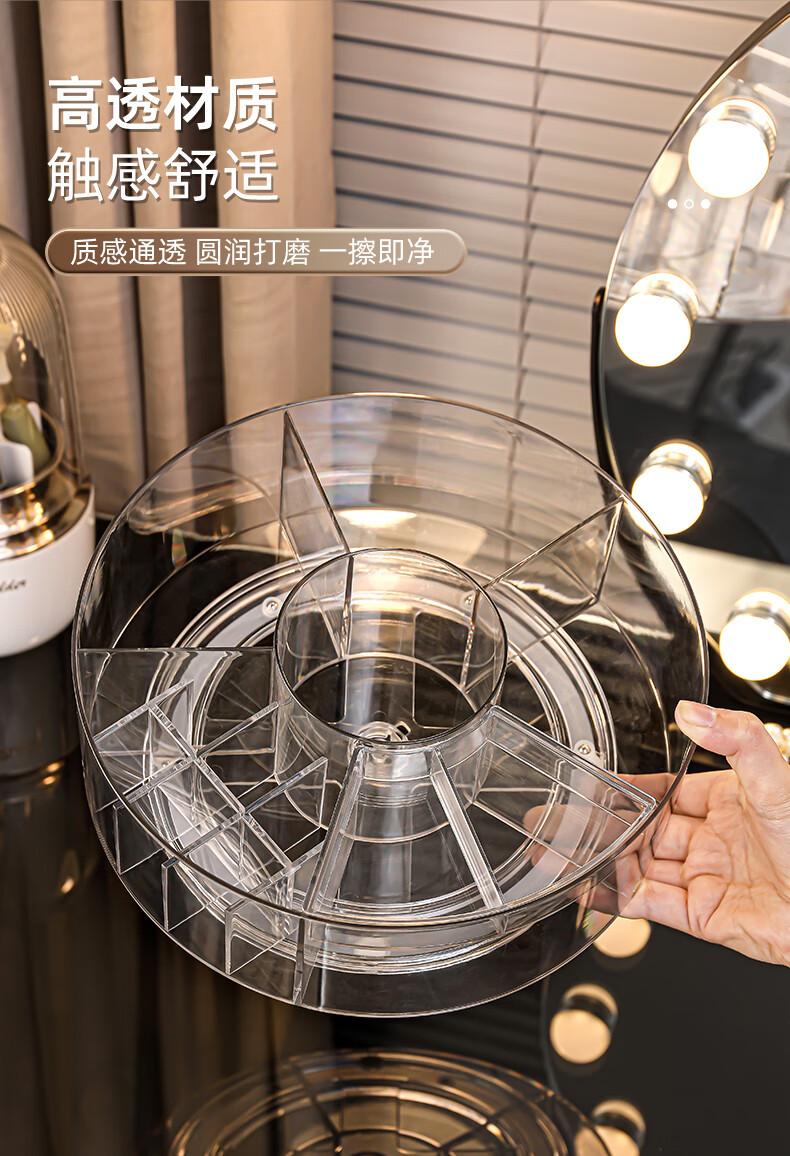 KAMAN high-looking desktop cosmetics storage box new skin care products transparent dressing table Internet celebrity lipstick rotating storage rack 360 rotation transparent 1 piece