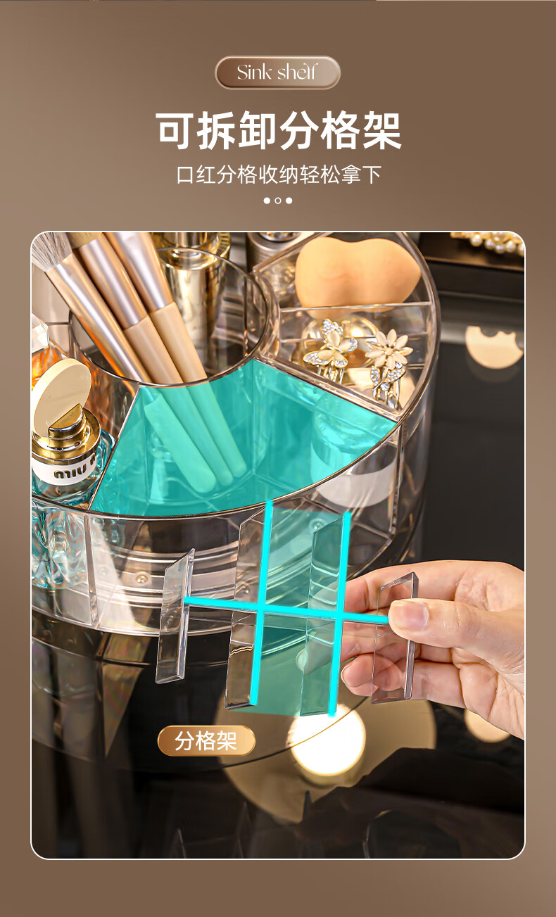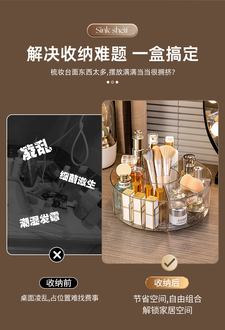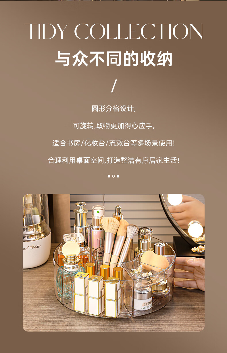 KAMAN high-looking desktop cosmetics storage box new skin care products transparent dressing table Internet celebrity lipstick rotating storage rack 360 rotation transparent 1 piece