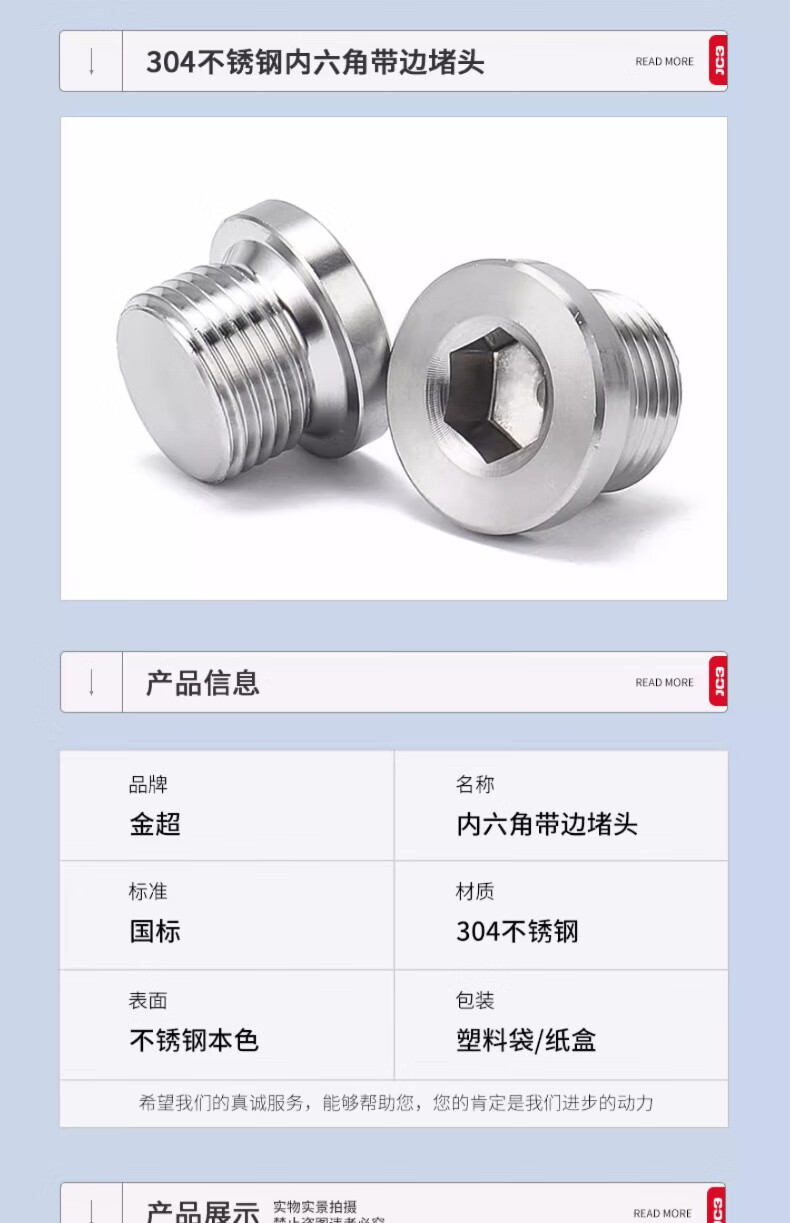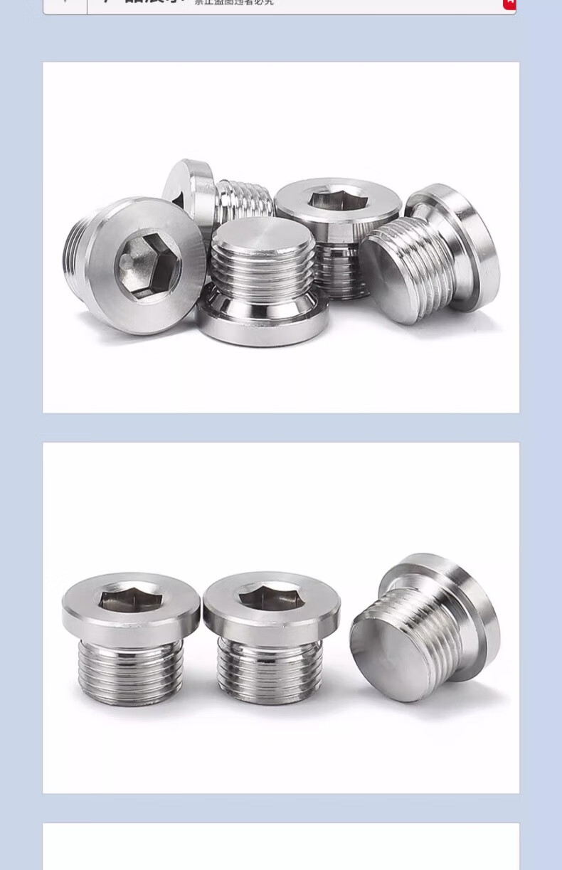 Jinchao 304 stainless steel inner hexagonal flange surface imperial plug inner corner edge oil plug metric plug G1-2 inch M8*1.25 (2 pieces)