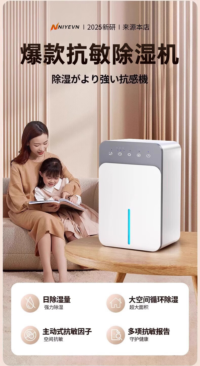NIYEVN 300-square-meter whole-house dehumidification丨24H pumping out 40L bucket of water Dehumidifier Household dehumidifier subsidy 20% Dehumidifier Guangdong industrial drying dryer small rice moisture absorption 40L/day 120-180 40 single core powerful AI intelligent tracking