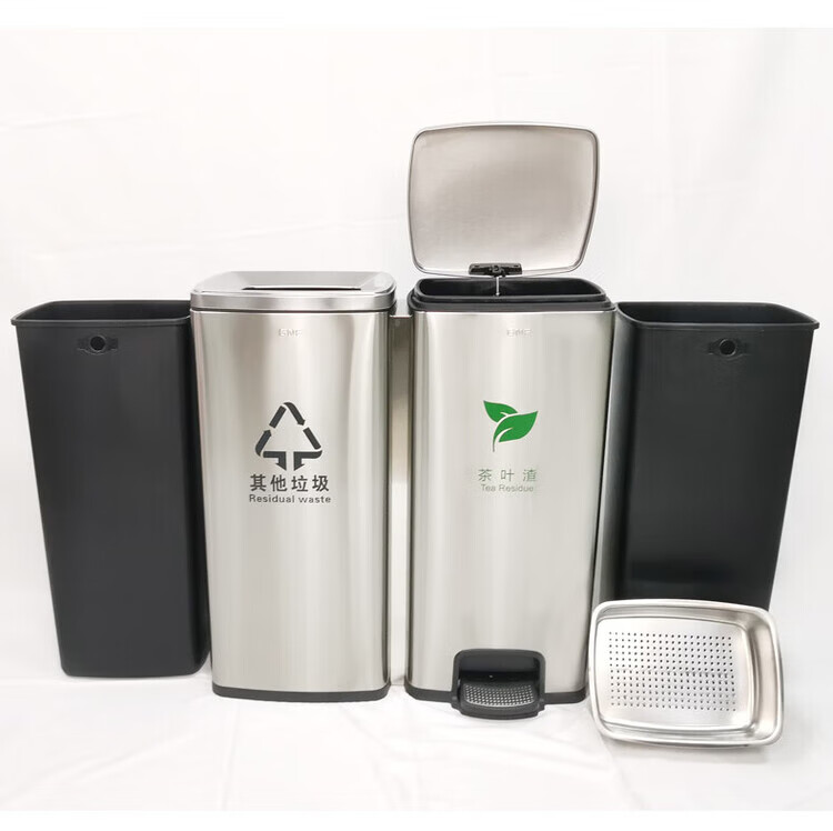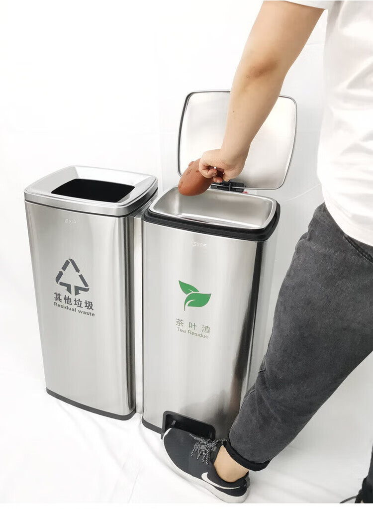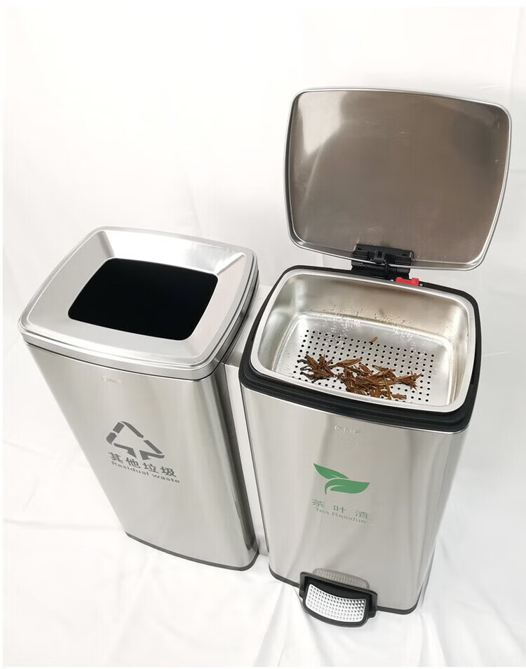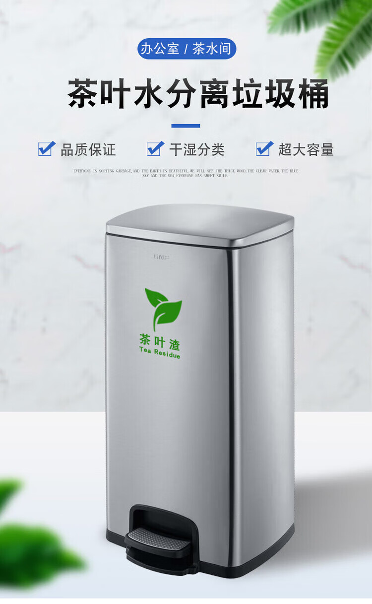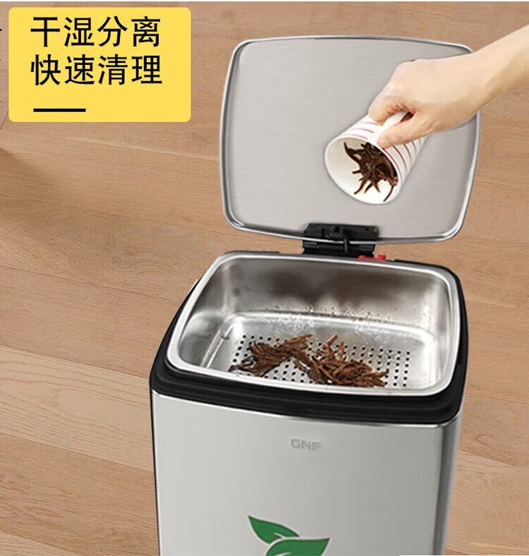 GNF Shijiazhuang Airport's same style tea dregs and tea water separation foot-operated trash can with lid foot-operated stainless steel large tea room kitchen waste peel barrel commercial 30L tea collection barrel tea dregs barrel 30-liter foot-operated tea dregs barrel