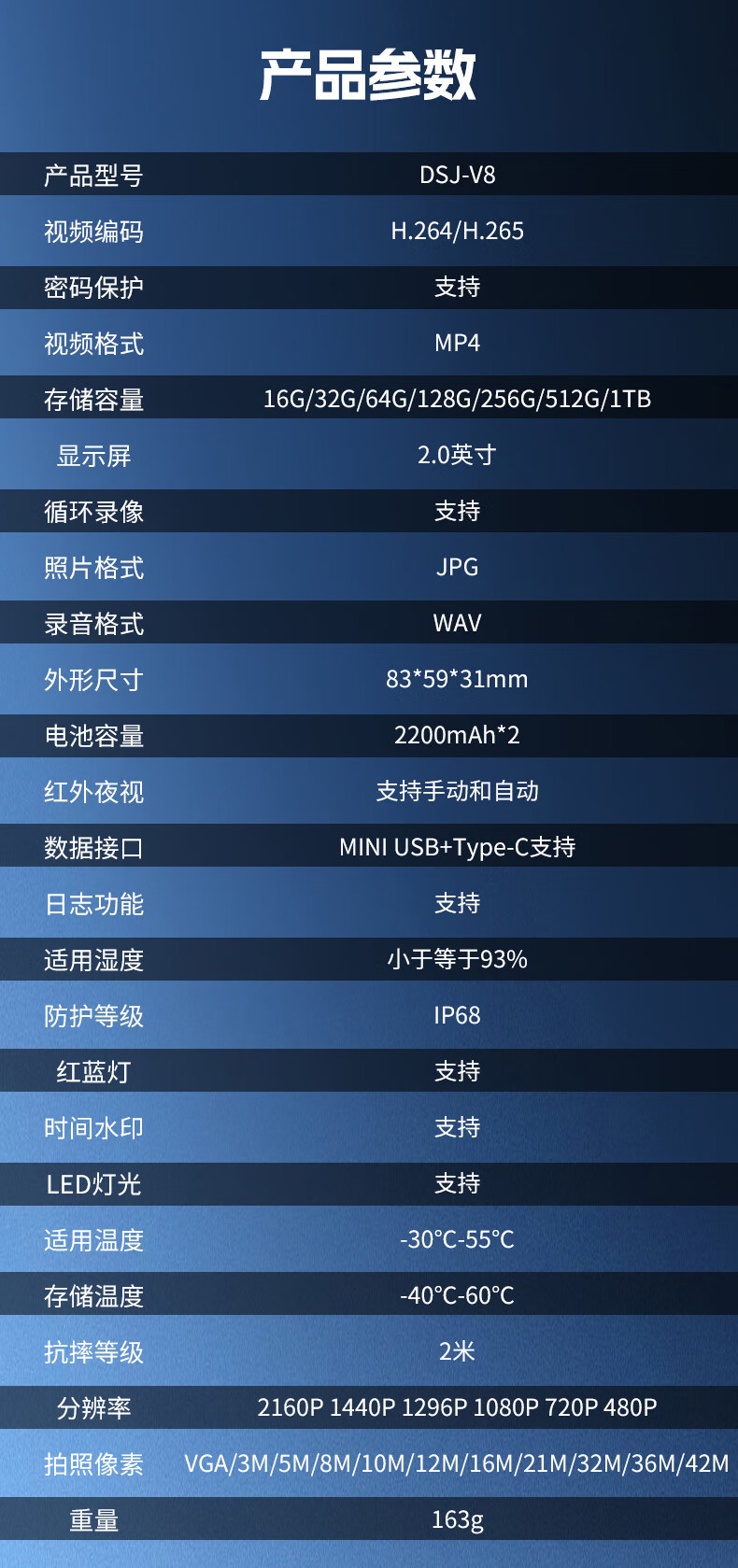 Law Enforcement No. 1 DSJ-V8 law enforcement recorder 4K high-definition infrared night vision supports single Beidou power inspection law enforcement instrument 1T with cradle and charger 2160P