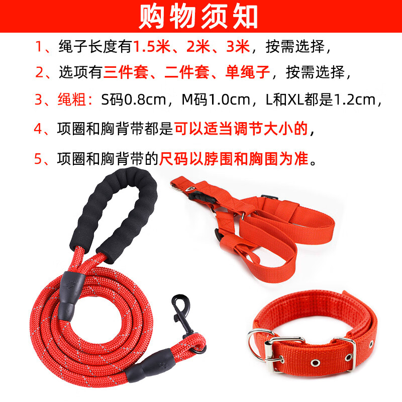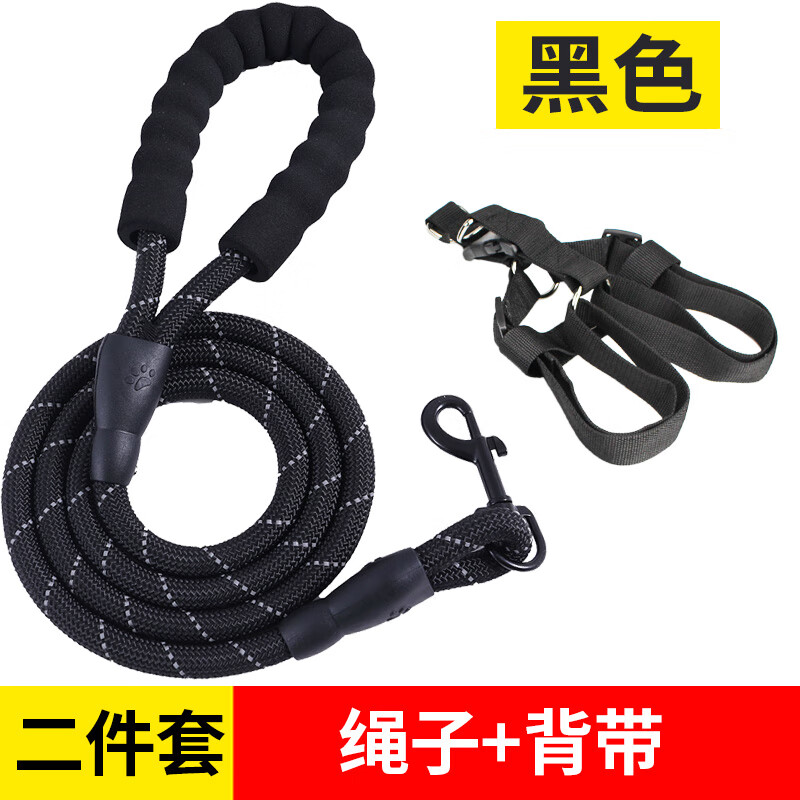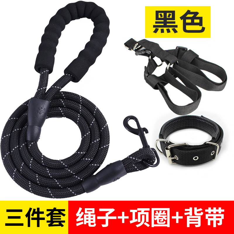 OIMG 2 meters 3 meters extended dog leash dog leash dog walking Teddy Golden Retriever pet large medium small dog leash black collar two-piece set 2 meters L size about 25-40 pounds