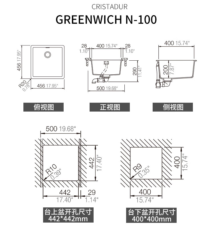 SCHOCK Greenwich N-100 third generation granite sink island kitchen quartz stone above and under counter basin Puro Puro black