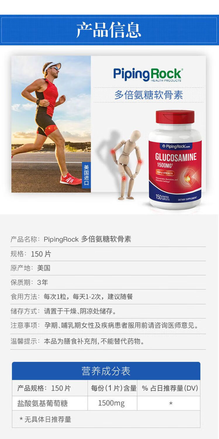 Pipingrock U.S. triple glucosamine chondroitin joint spirit glucosamine bone strength original imported single bottle