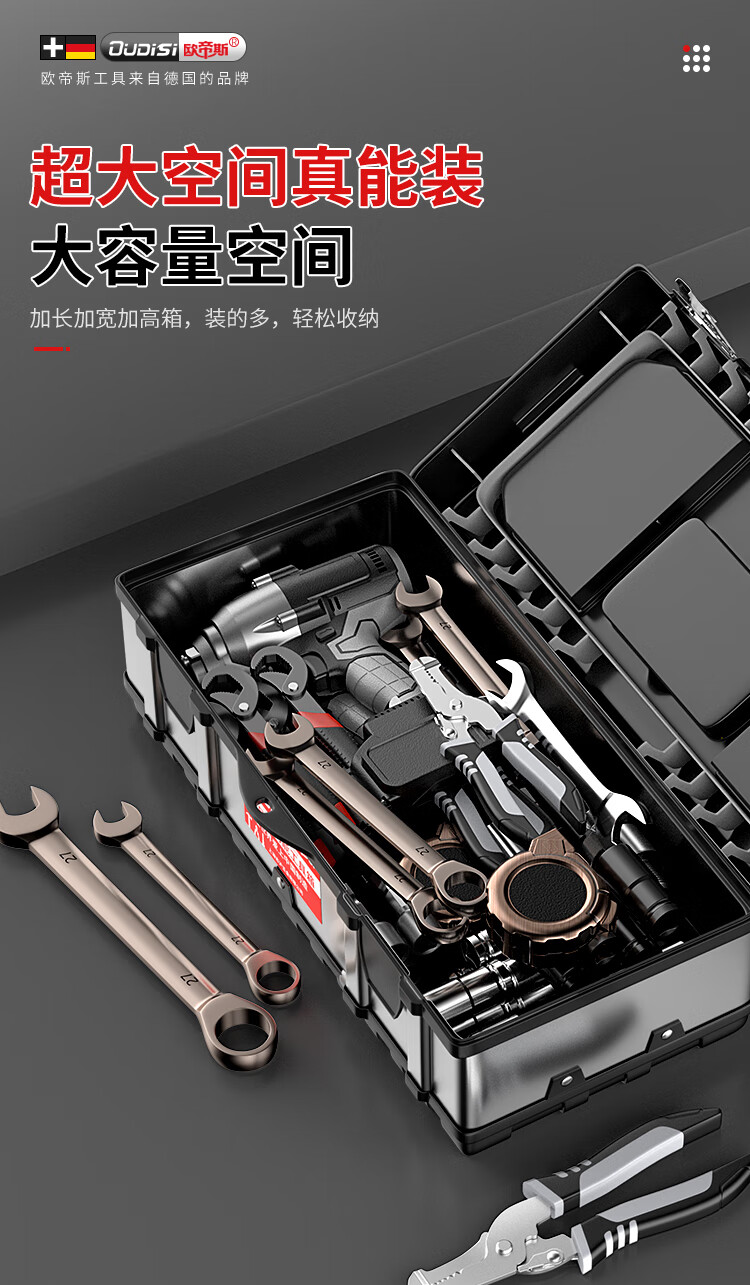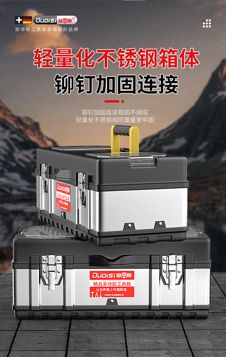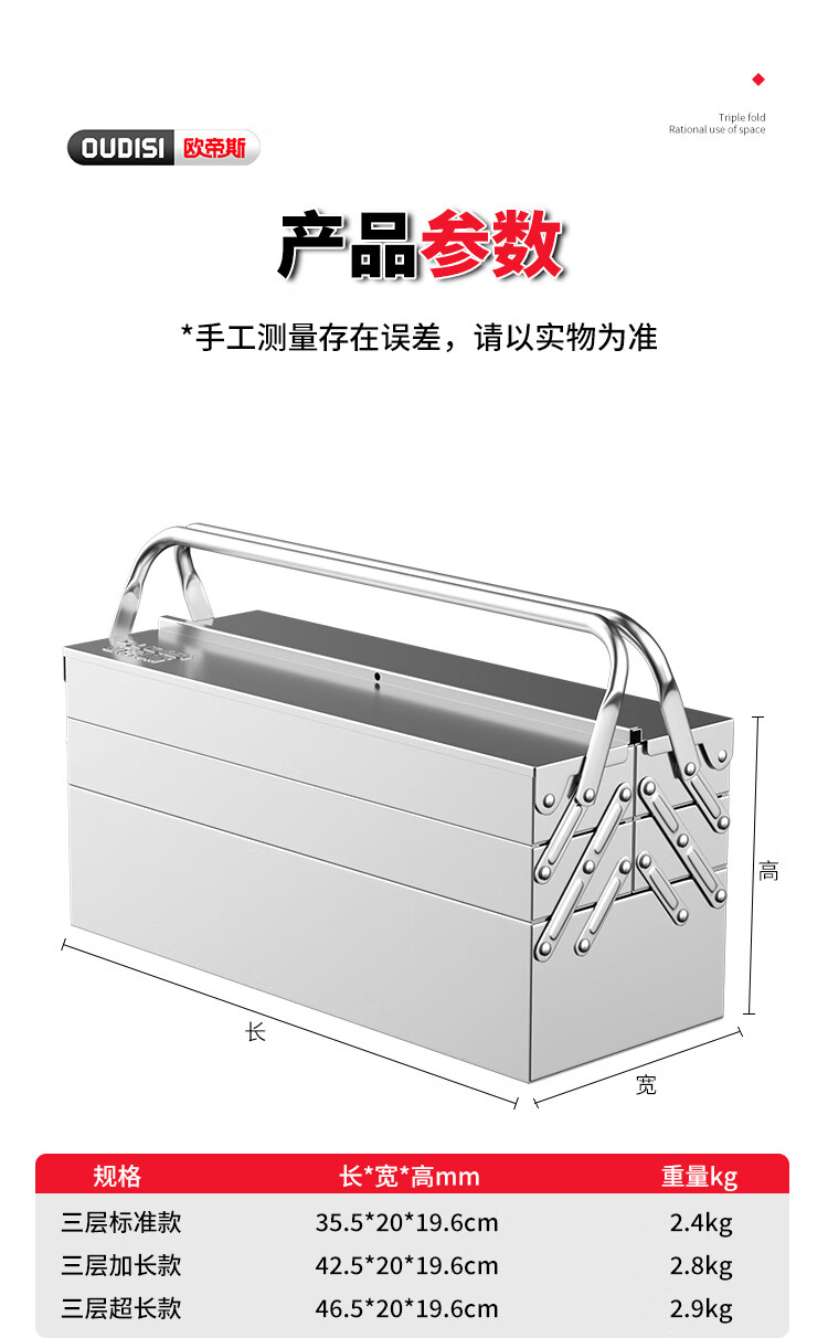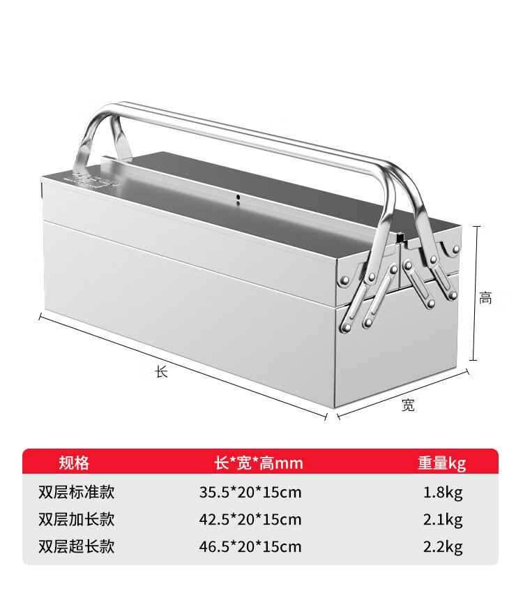 Otis stainless steel tool box, industrial-grade folding storage box, electrician metal suitcase, household hardware multi-function box, three-layer, extended stainless steel folding dump box