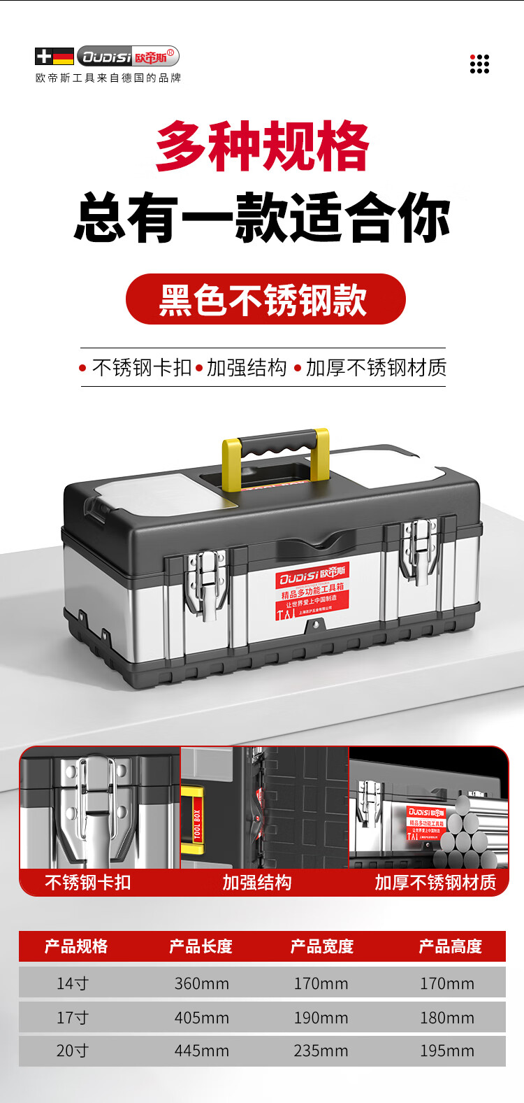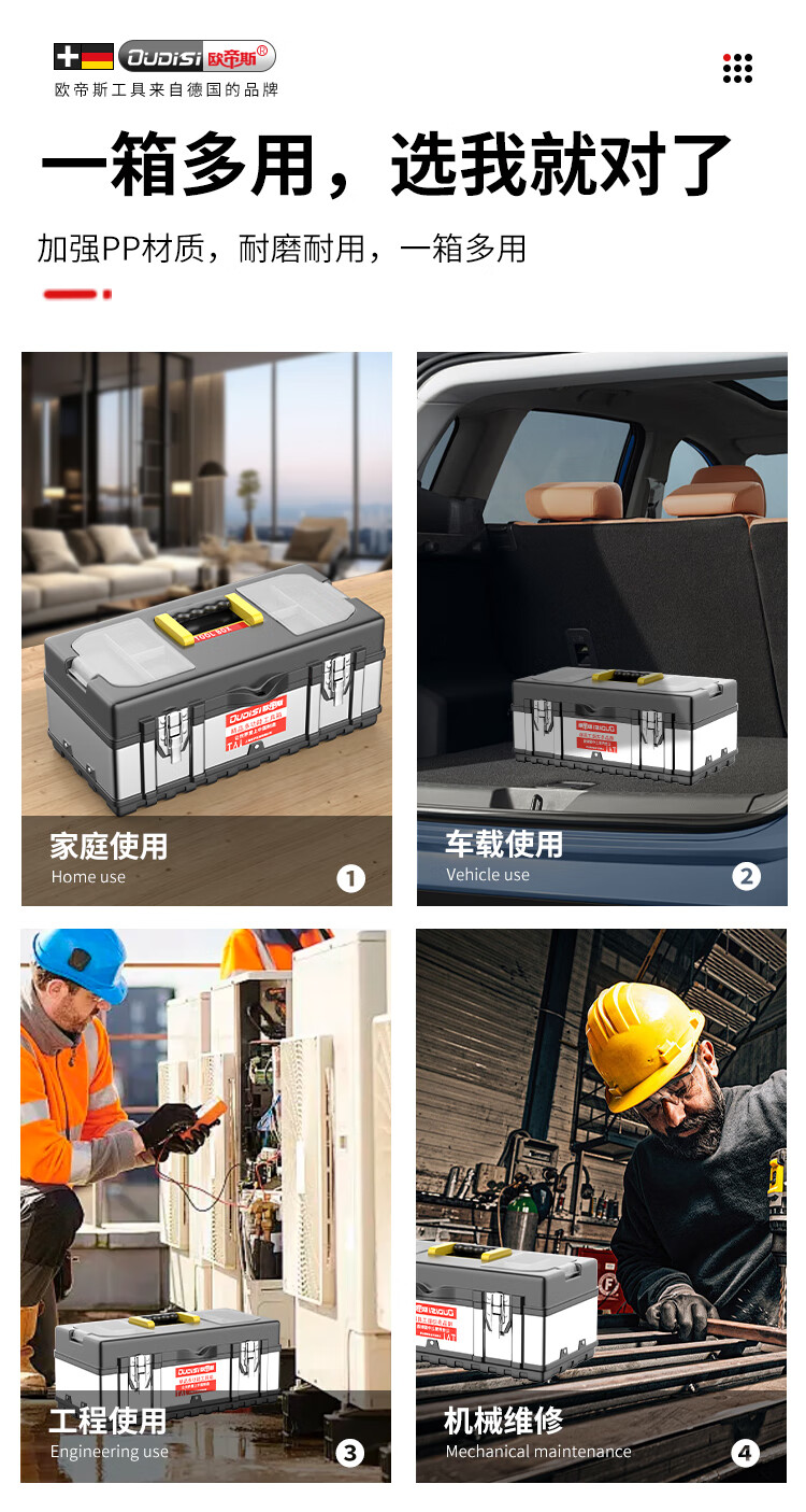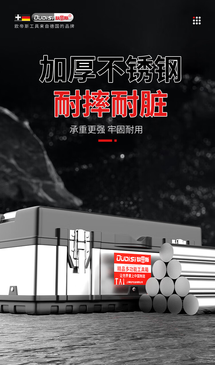 Otis stainless steel tool box, industrial-grade folding storage box, electrician metal suitcase, household hardware multi-function box, three-layer, extended stainless steel folding dump box