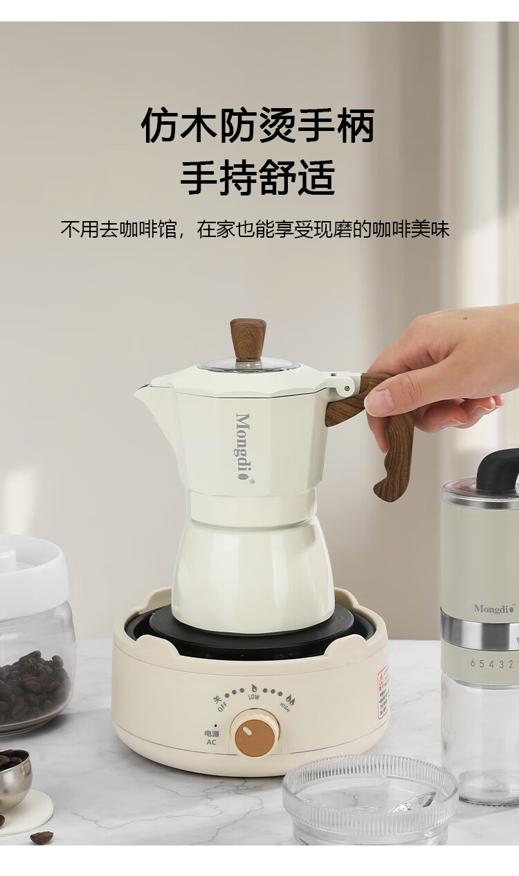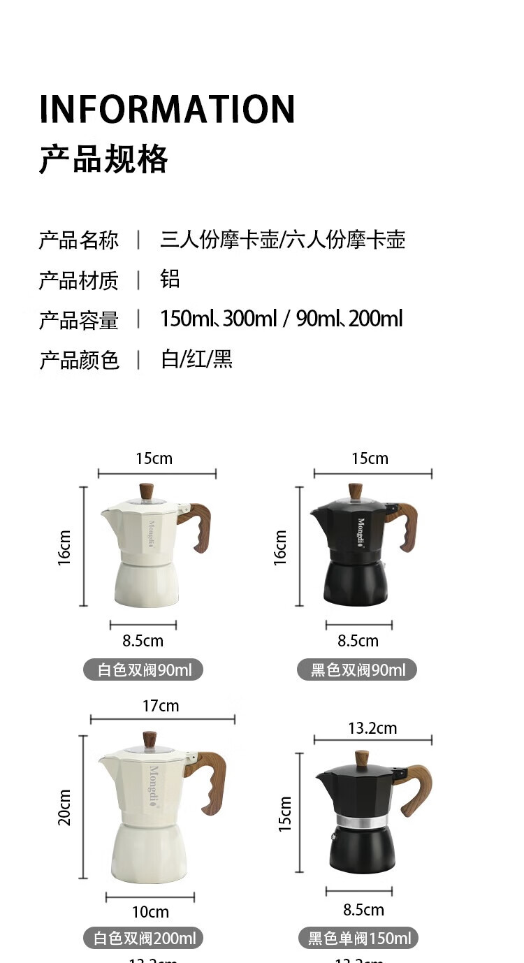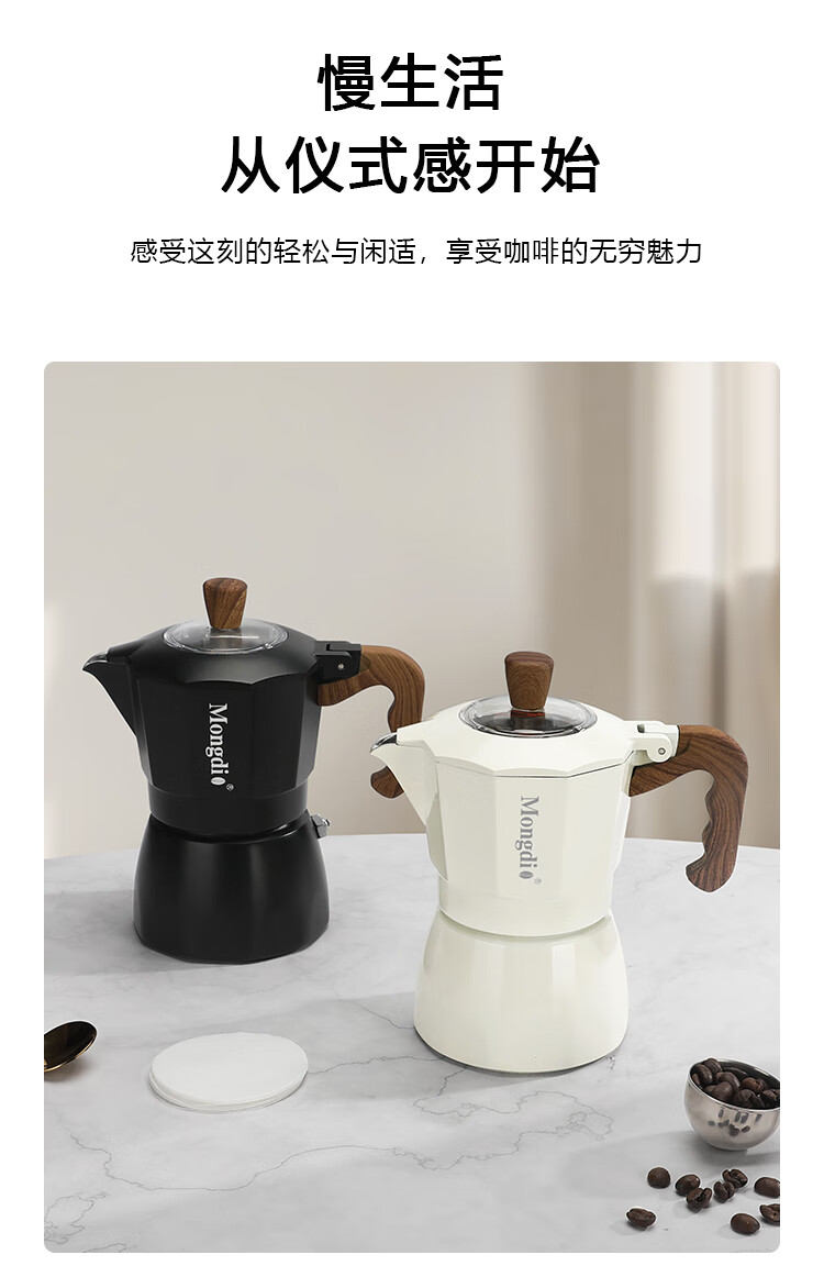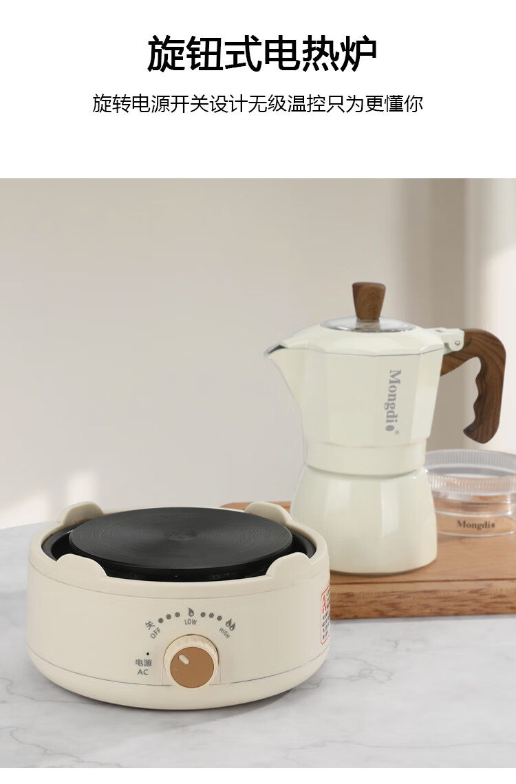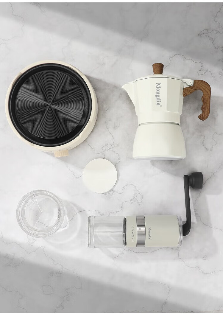 Mongdio Moka Pot Double Valve Coffee Pot Set Home Espresso Equipment Set Single Valve Black + Black Electric Stove + Filter Paper 150ml