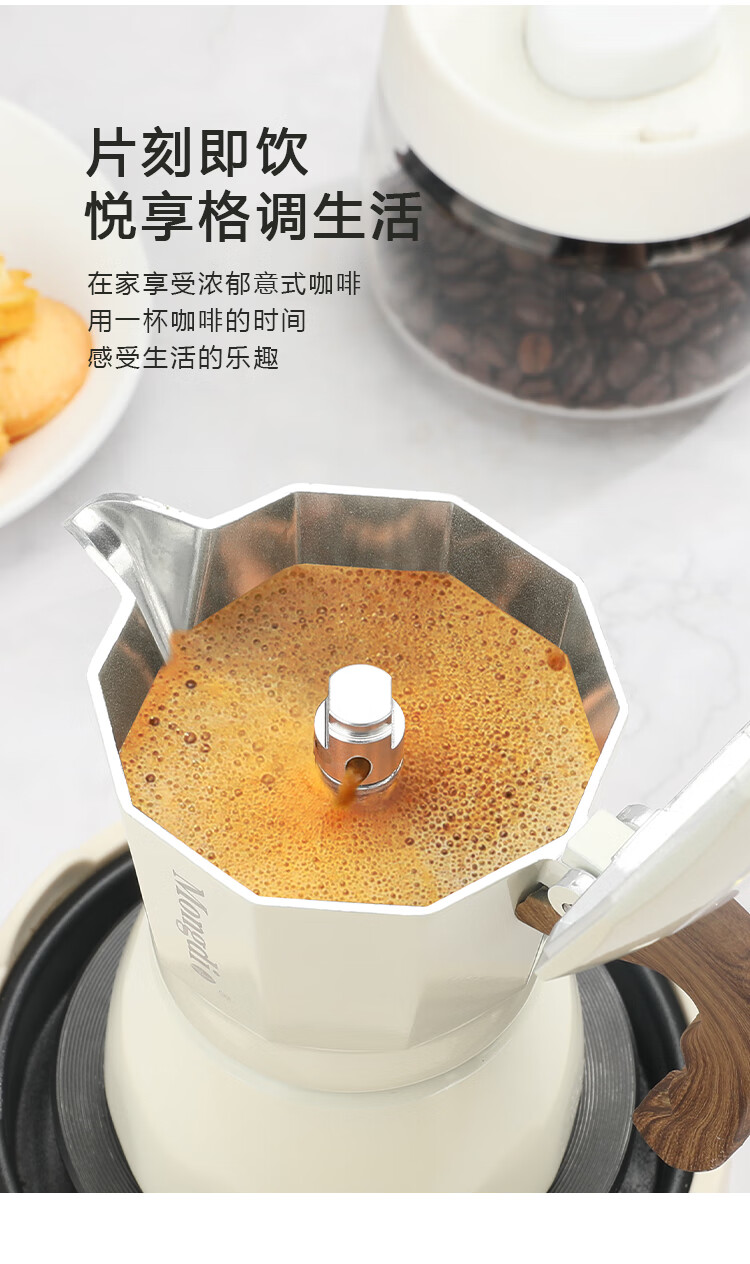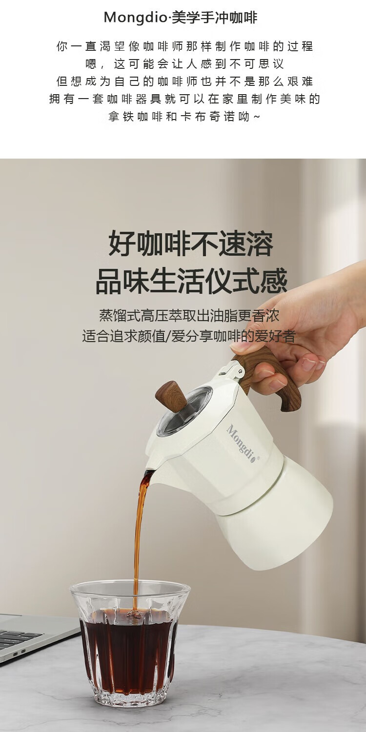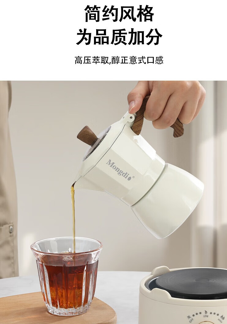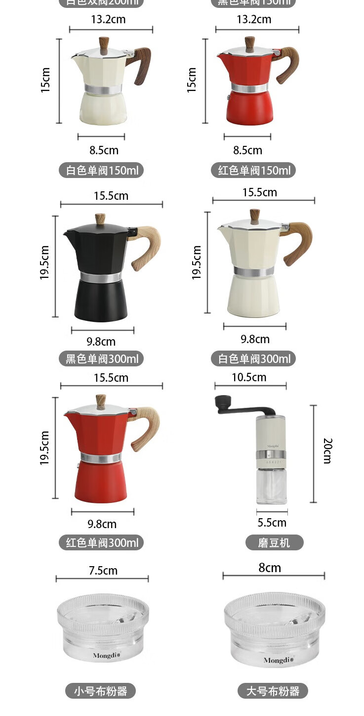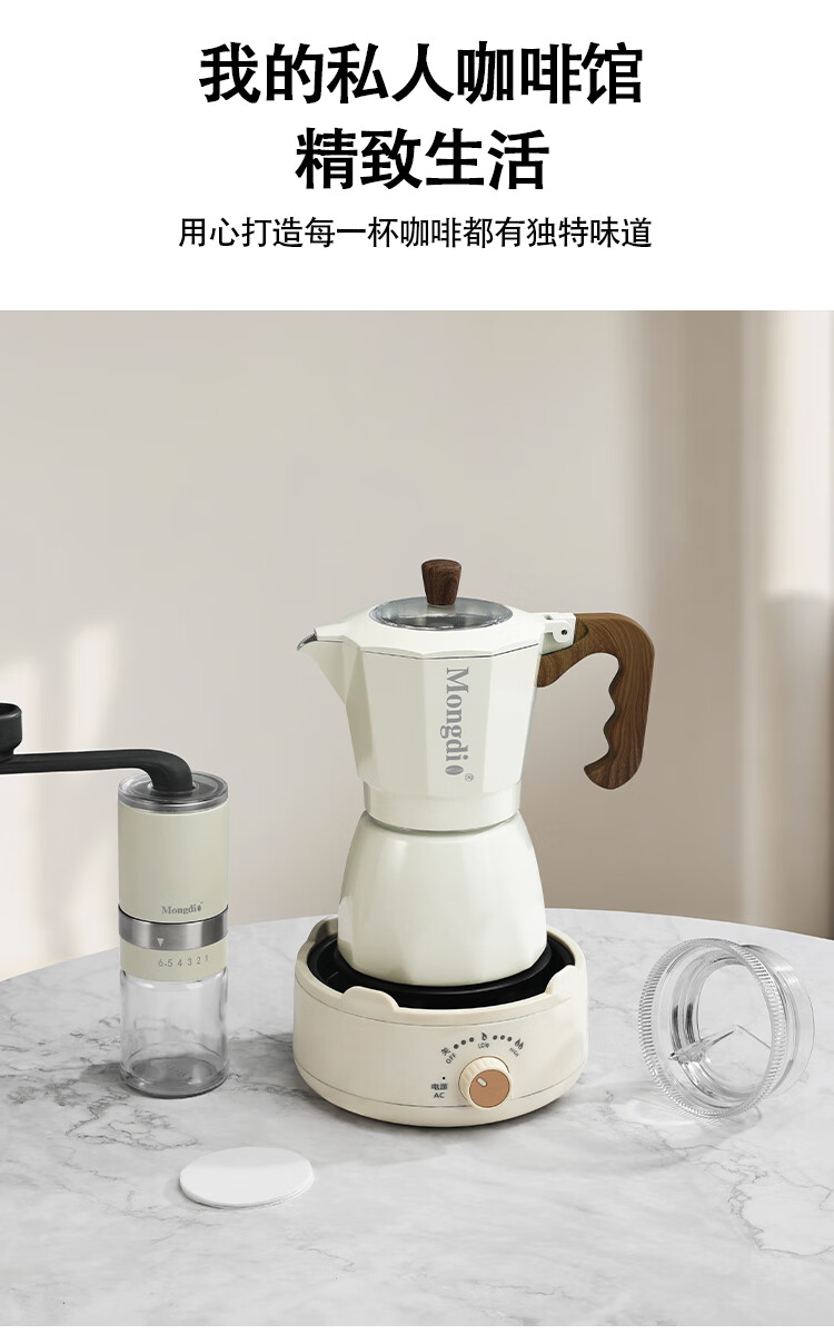 Mongdio Moka Pot Double Valve Coffee Pot Set Home Espresso Equipment Set Single Valve Black + Black Electric Stove + Filter Paper 150ml
