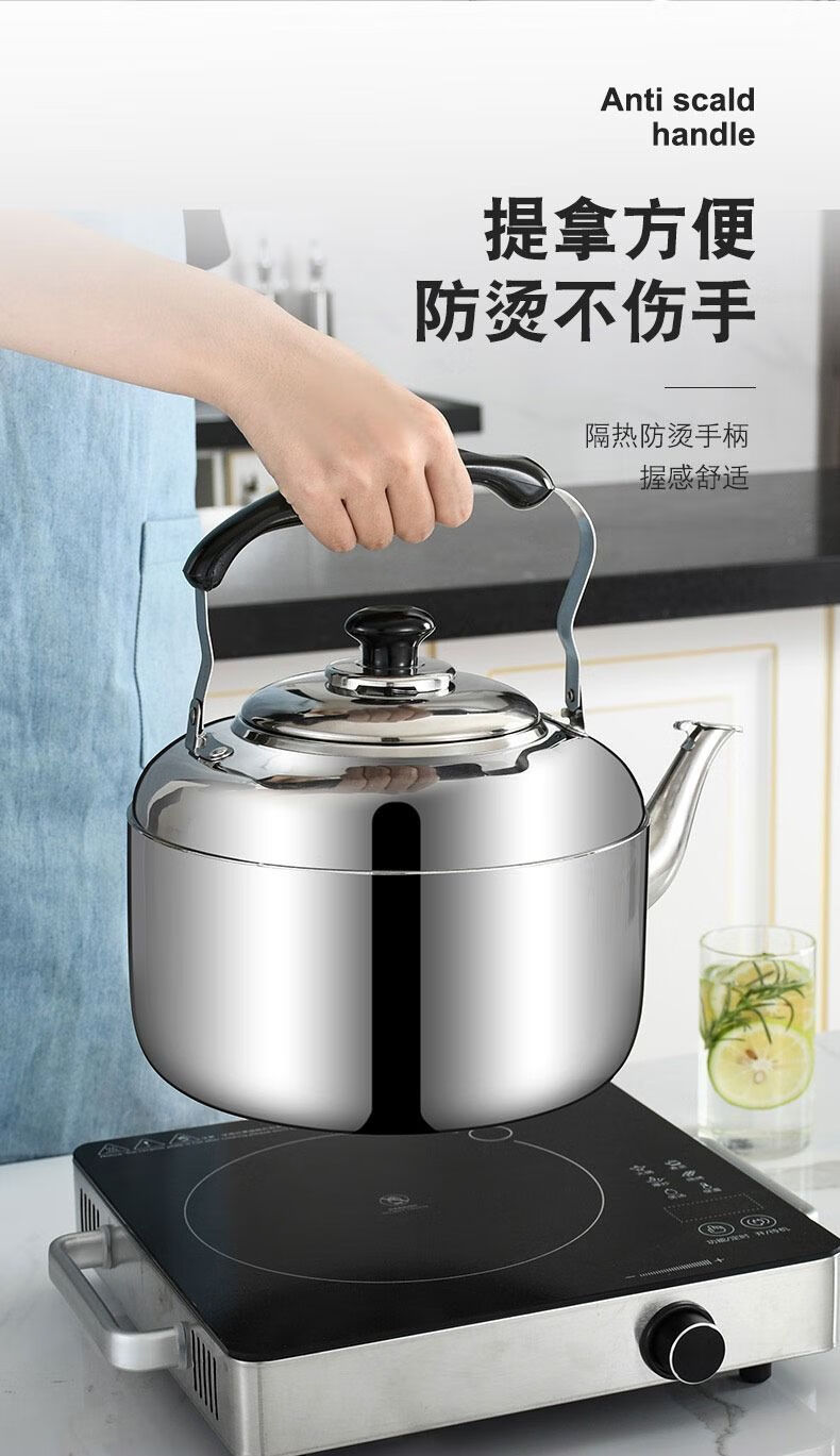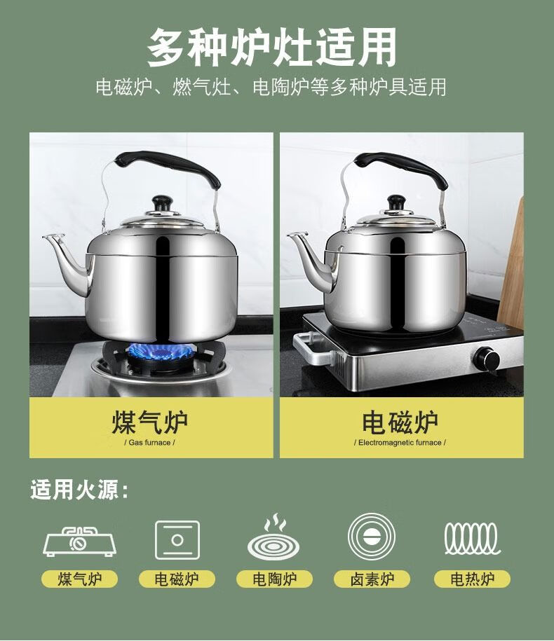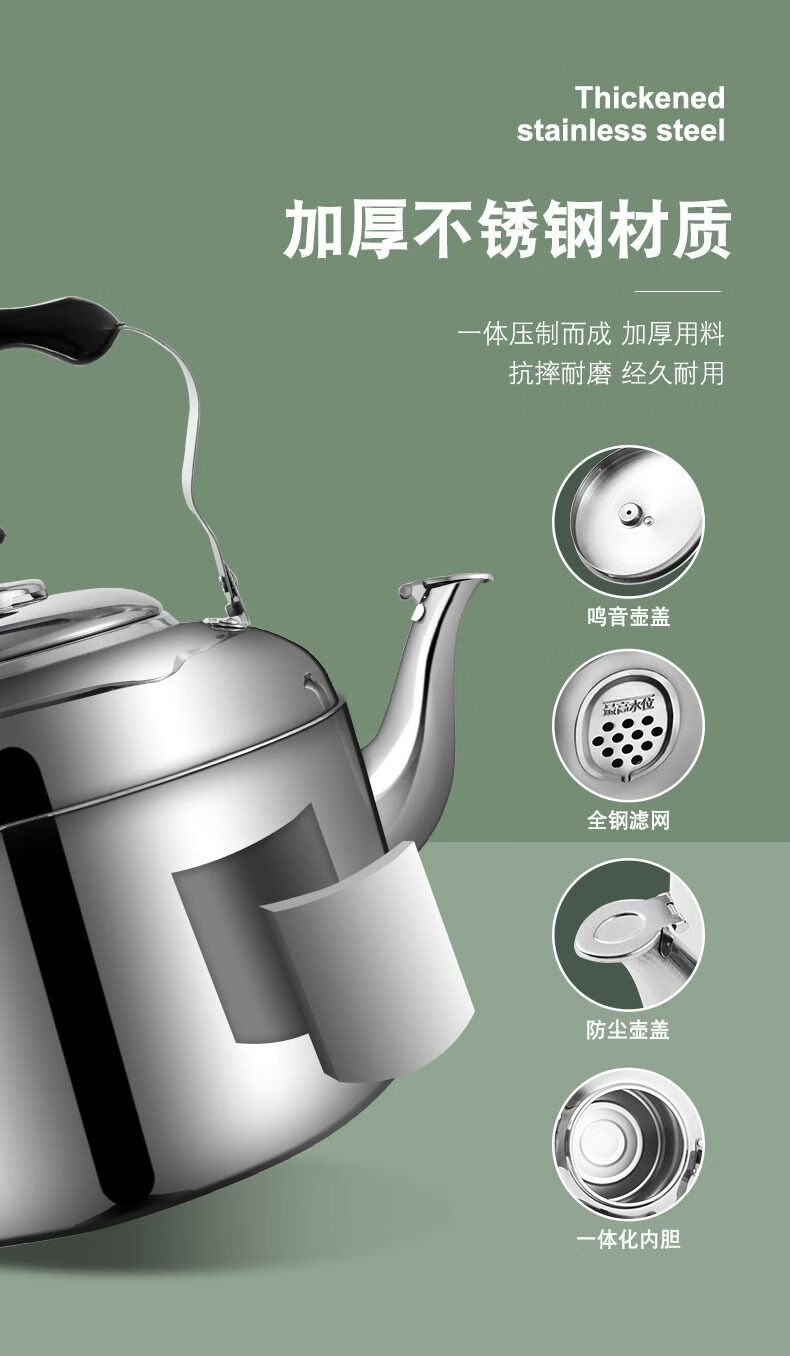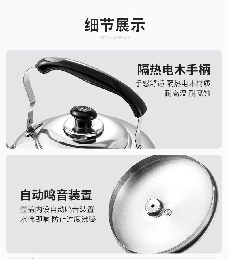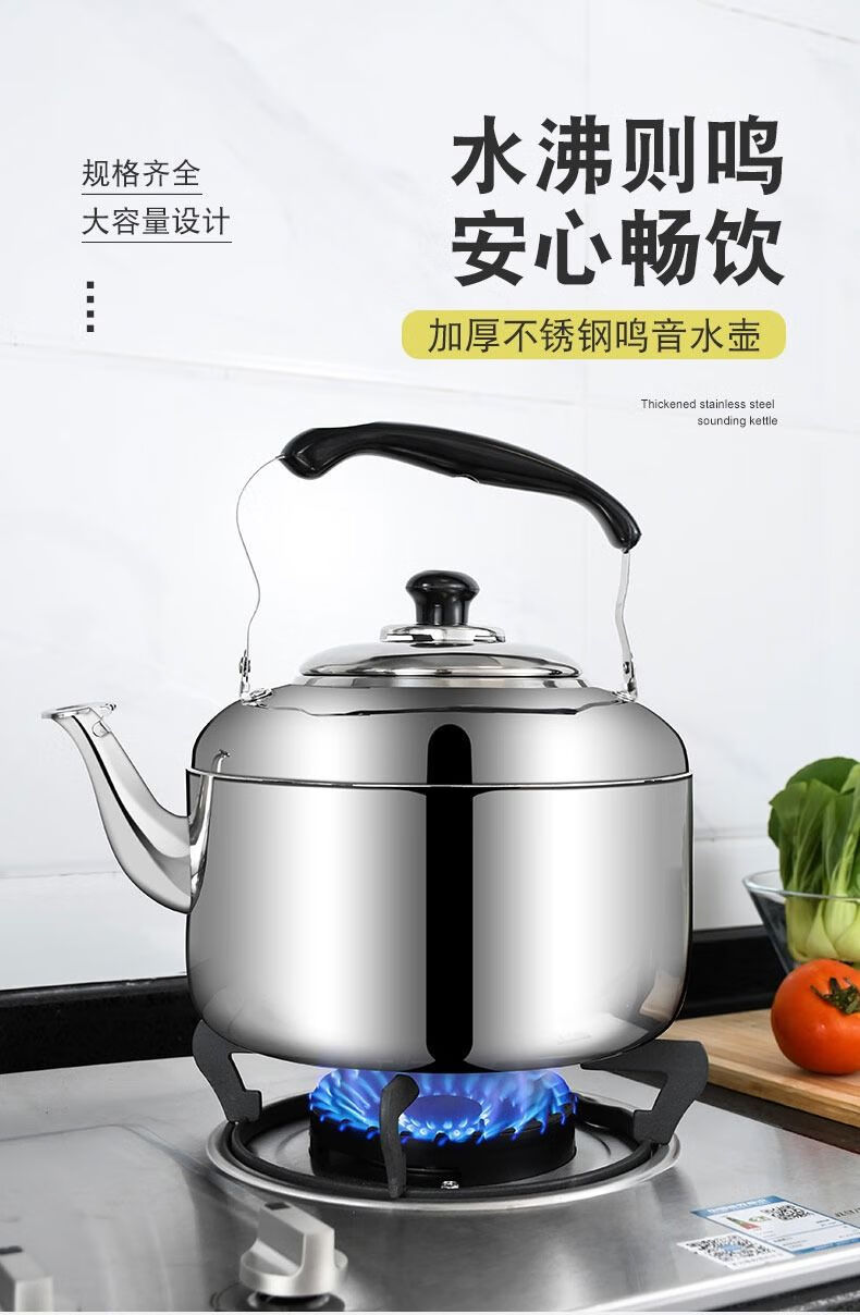 Hua Muxi 304 stainless steel thickened whistle kettle household gas gas induction cooker kettle teapot large capacity 304 stainless steel thick whistle kettle 4.5L 4.5L