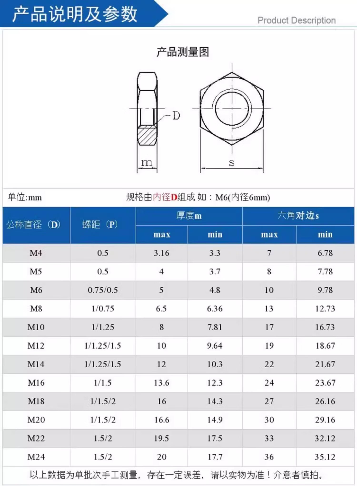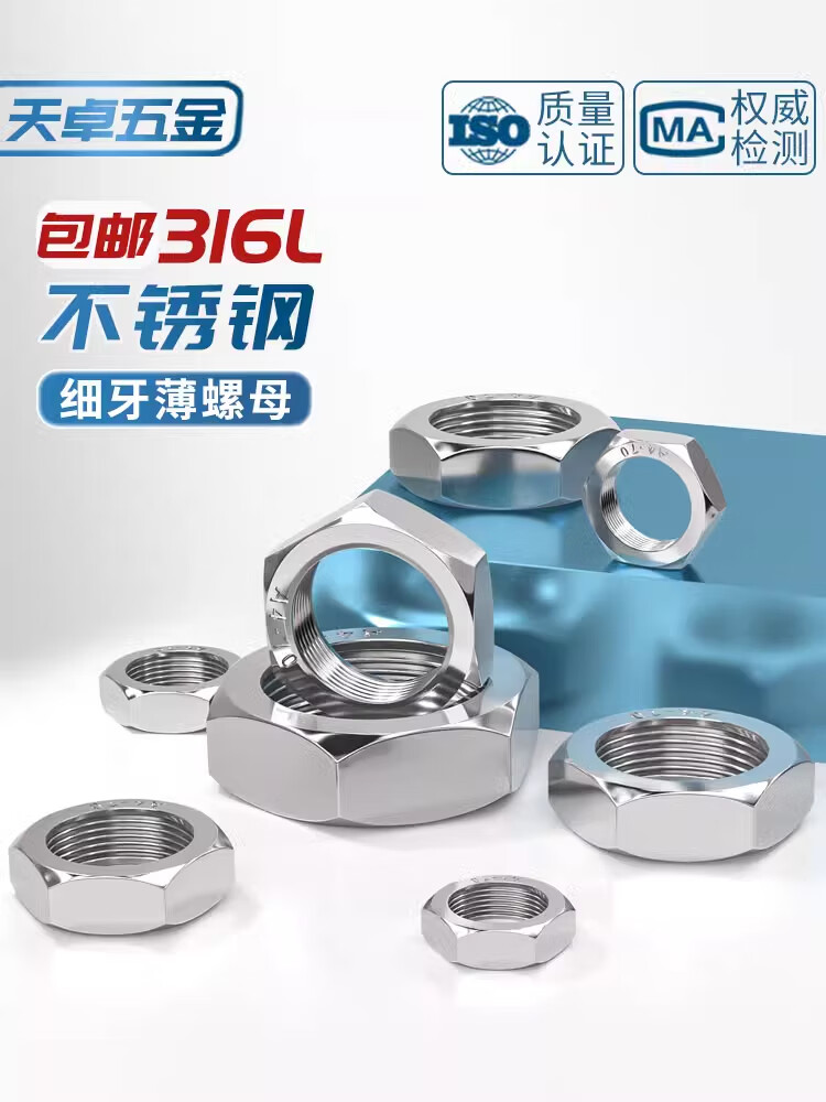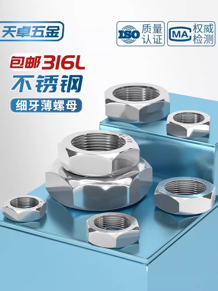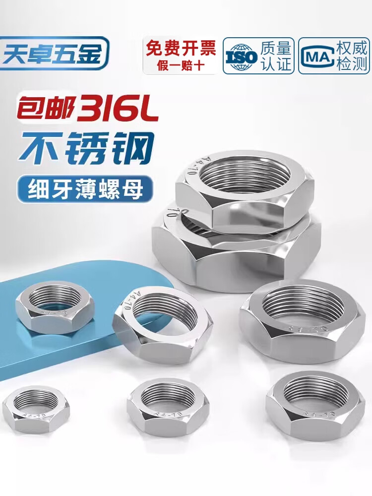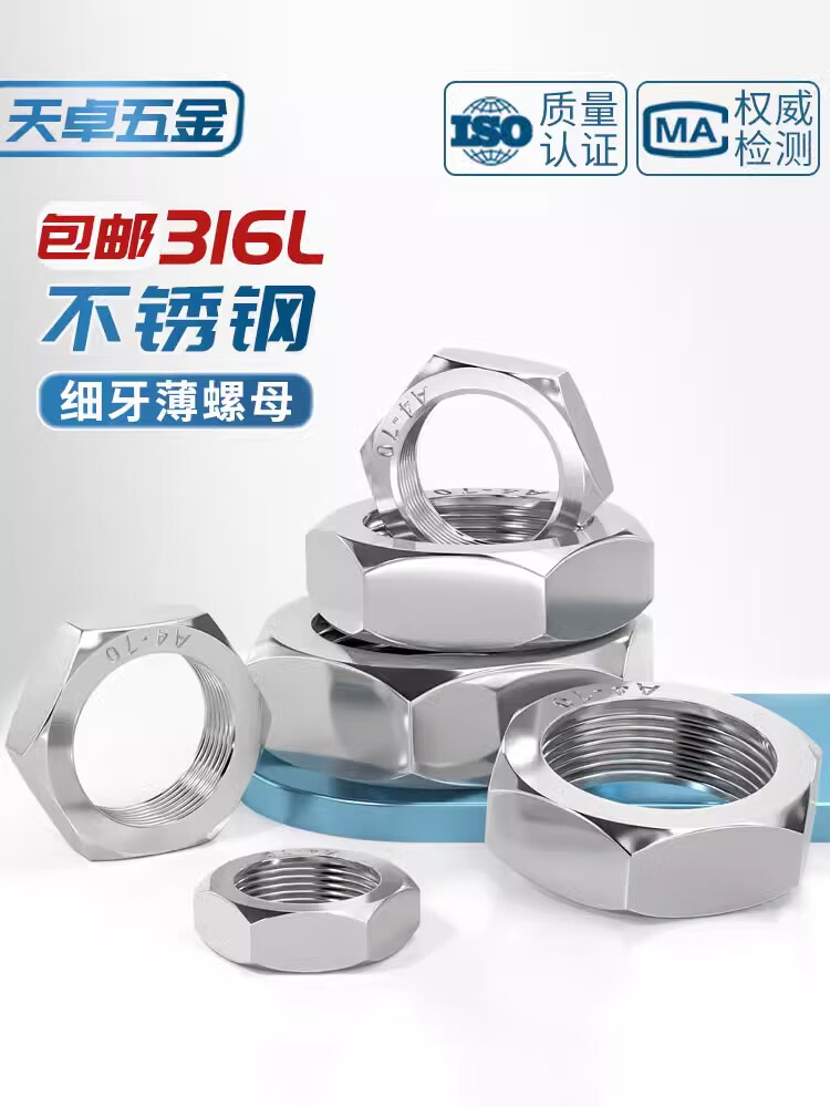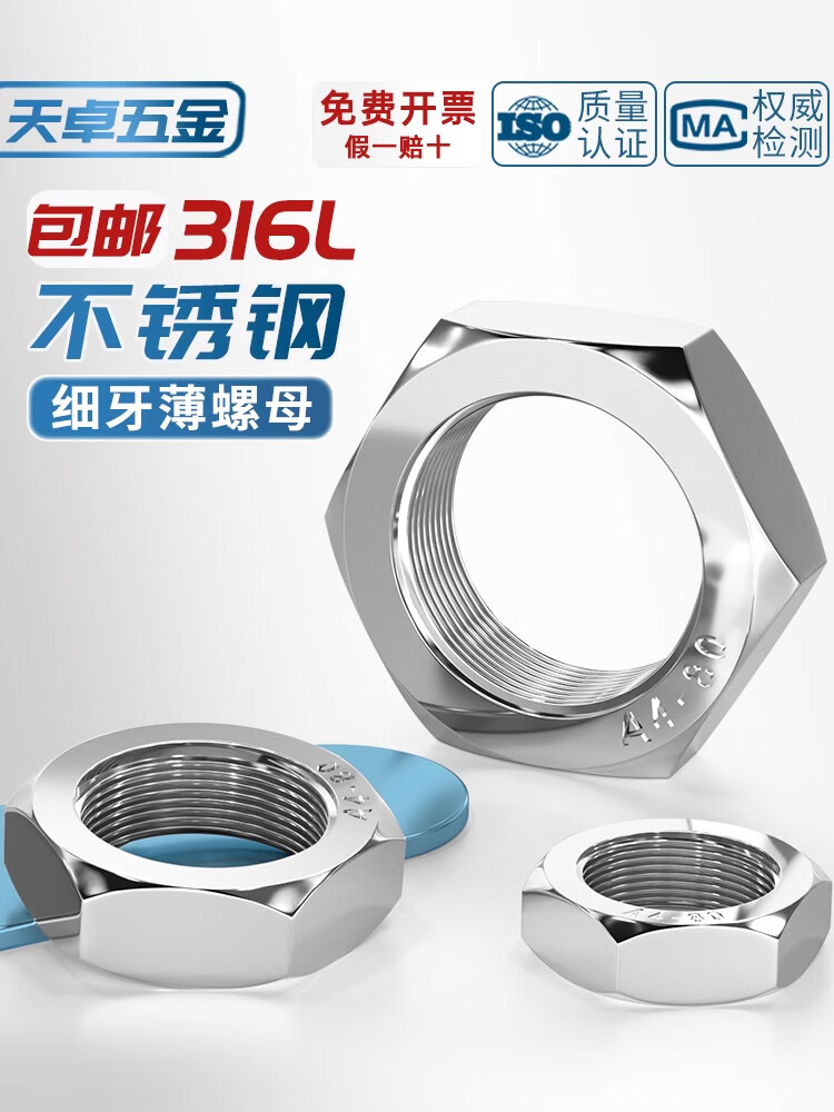 Tianzhuo Hardware 316L stainless steel hexagonal fine thread thin nut thin nut screw cap MM8M10M12*1M16*1.5-M24 M8*1-5 pieces
