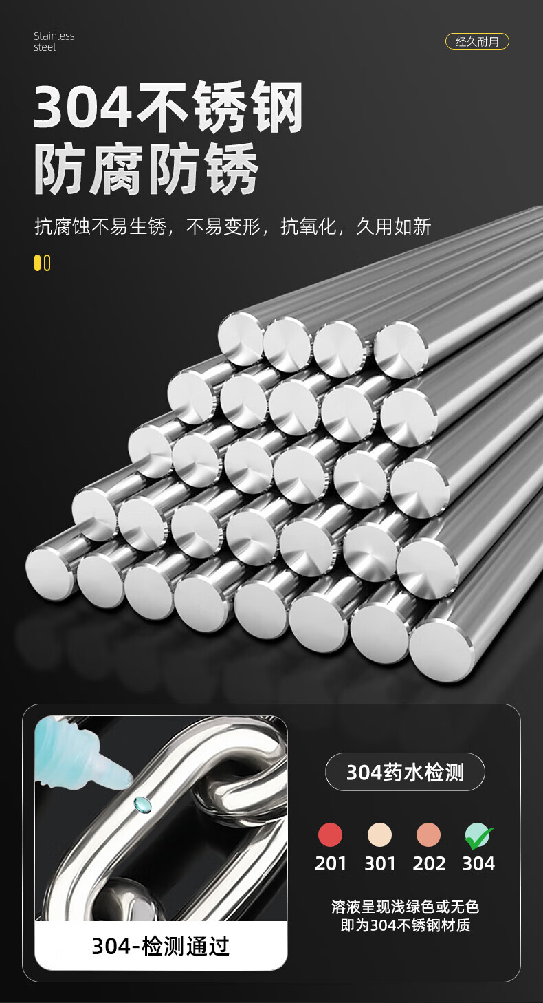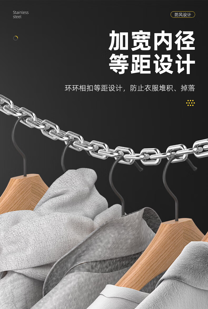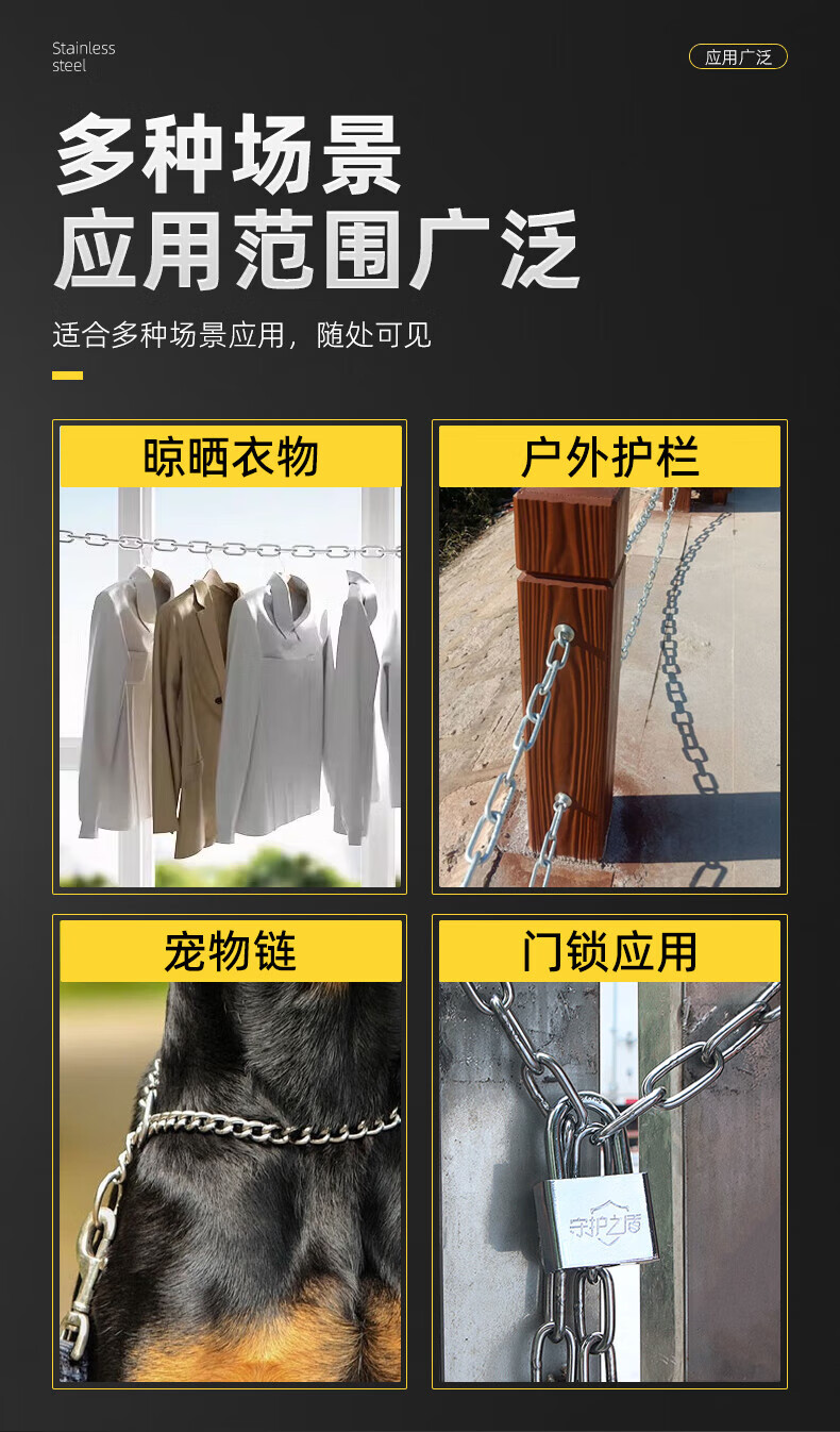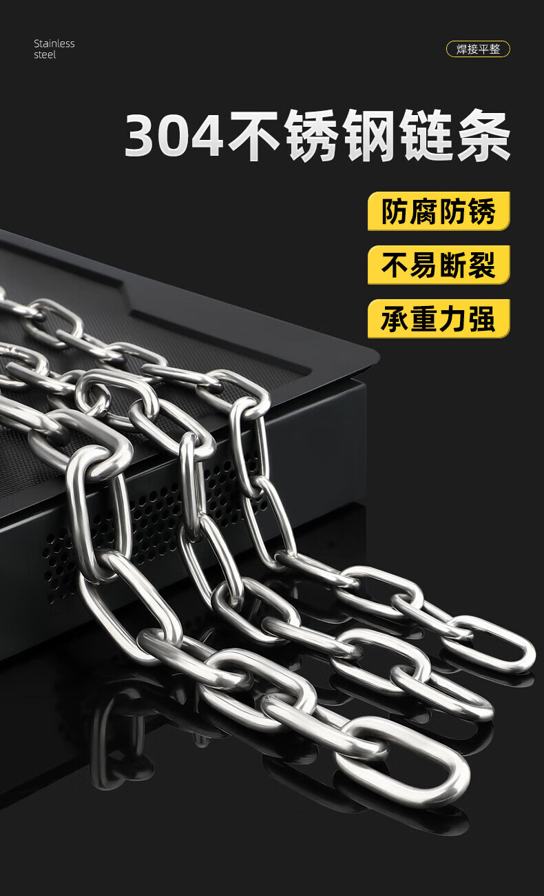 Tianzhuo Hardware 304 stainless steel chain seamless short ring long outdoor clothes drying chain thick iron dog chain lock pet lifting chain clothes drying chain package 3mm (1 meter + 2 spring buckles)