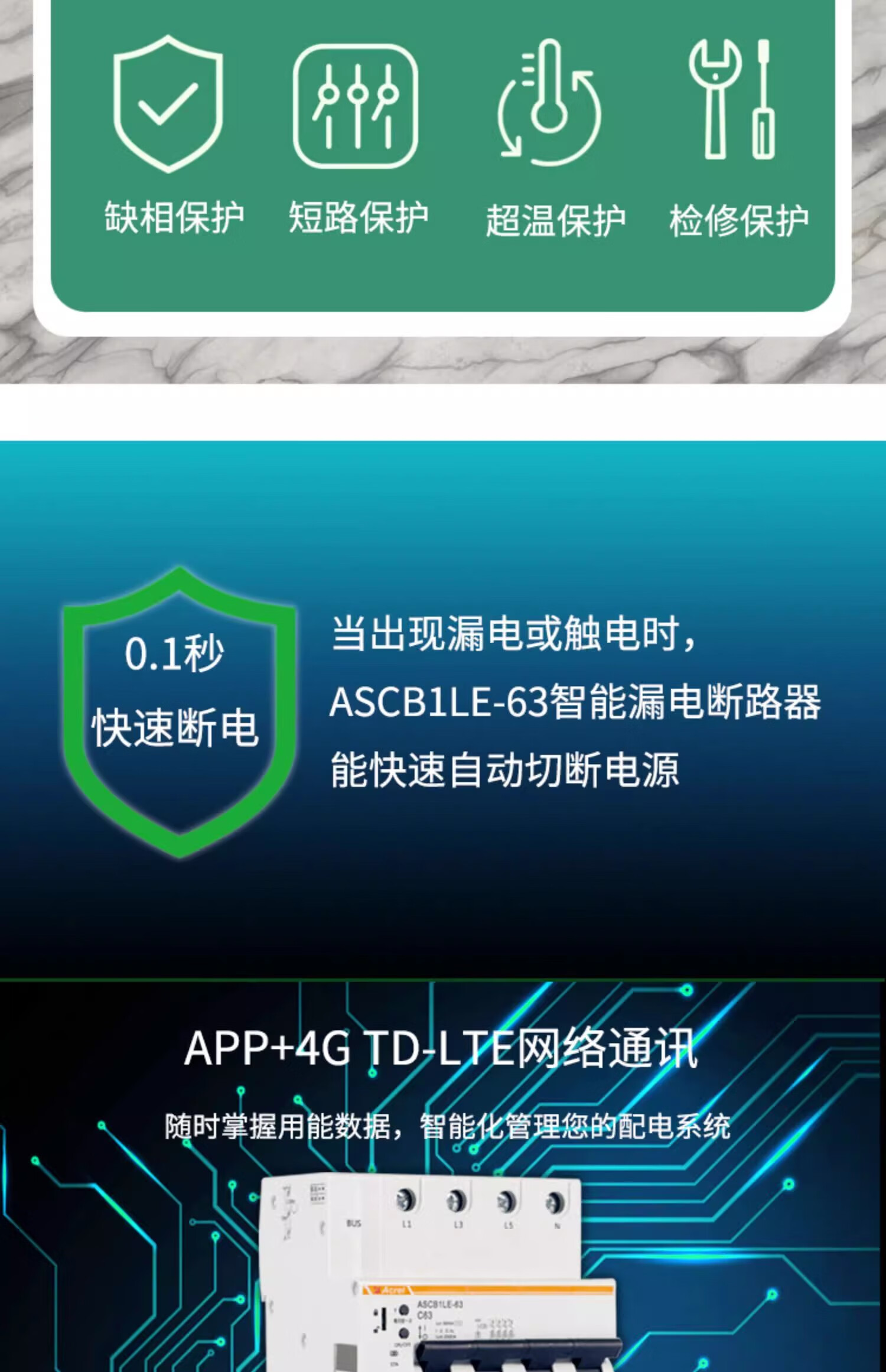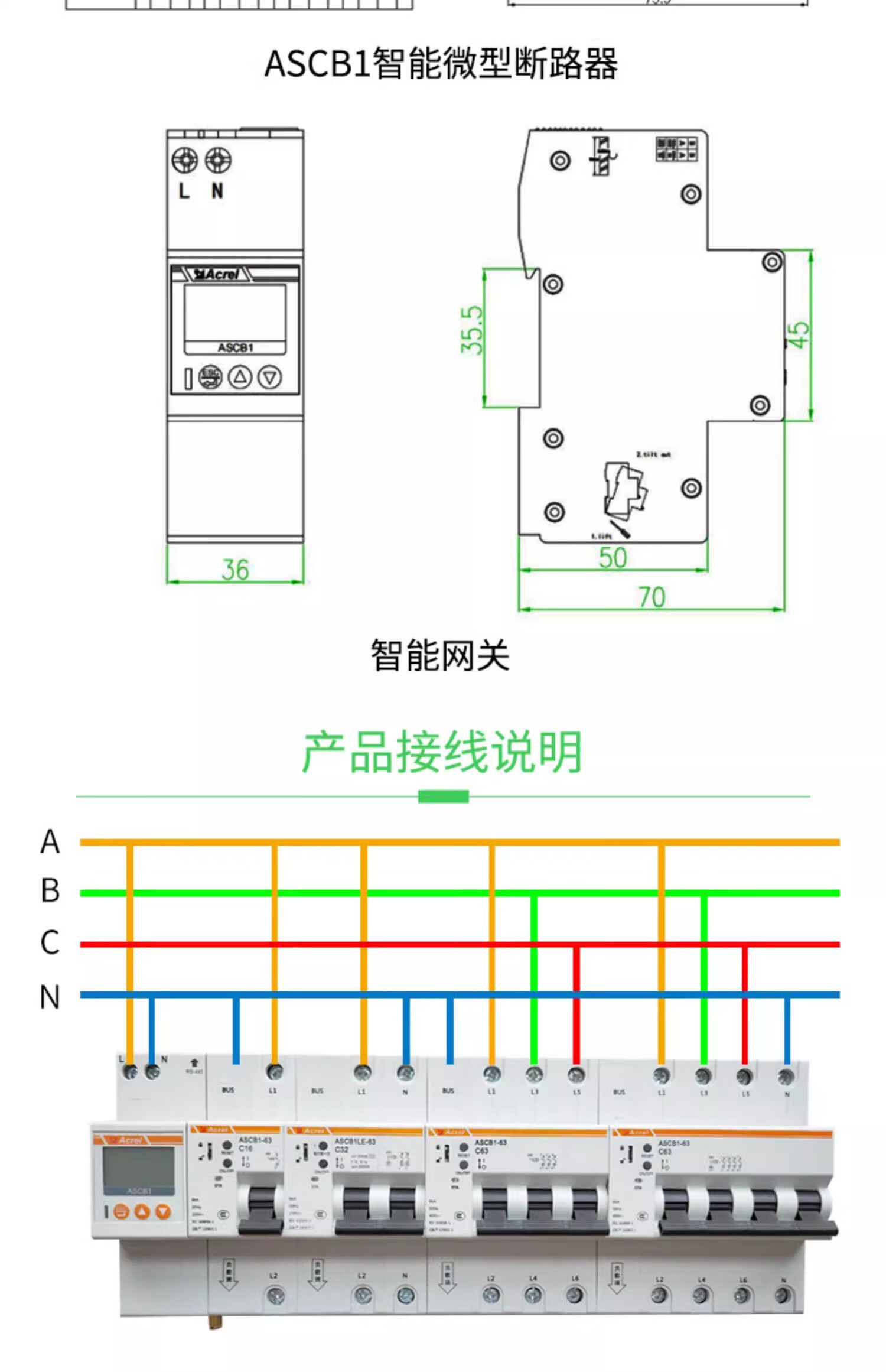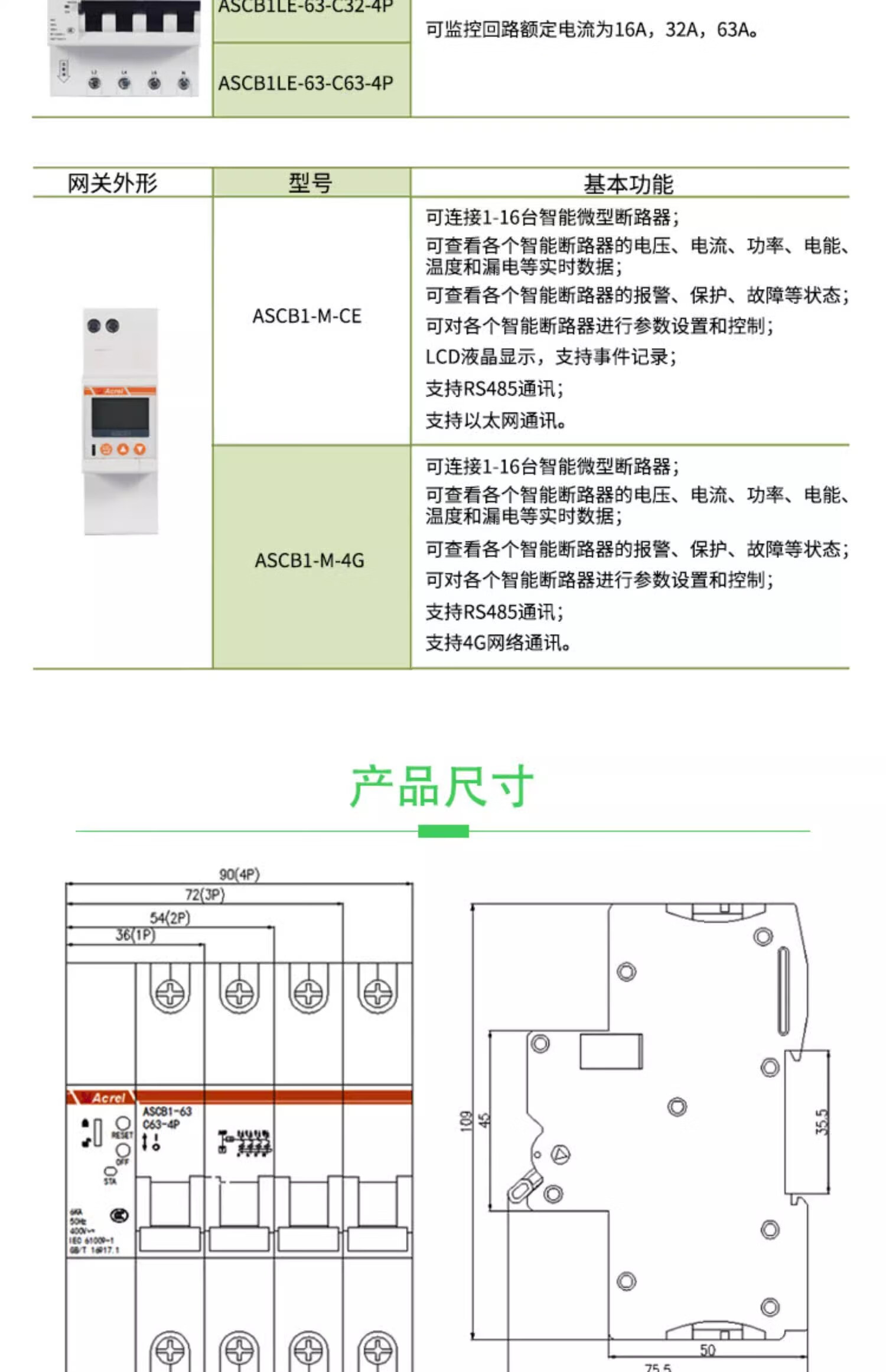 Ankerui ASCB1-63-C16-1P integrated intelligent circuit breaker intelligent circuit breaker LCD display remote opening and closing ASCB1-63-C16-2P