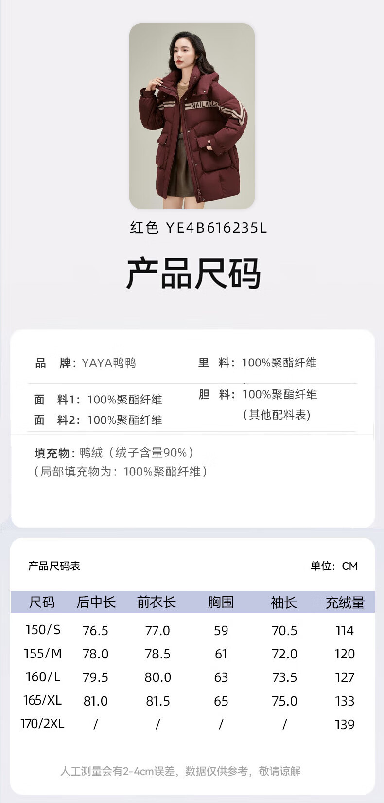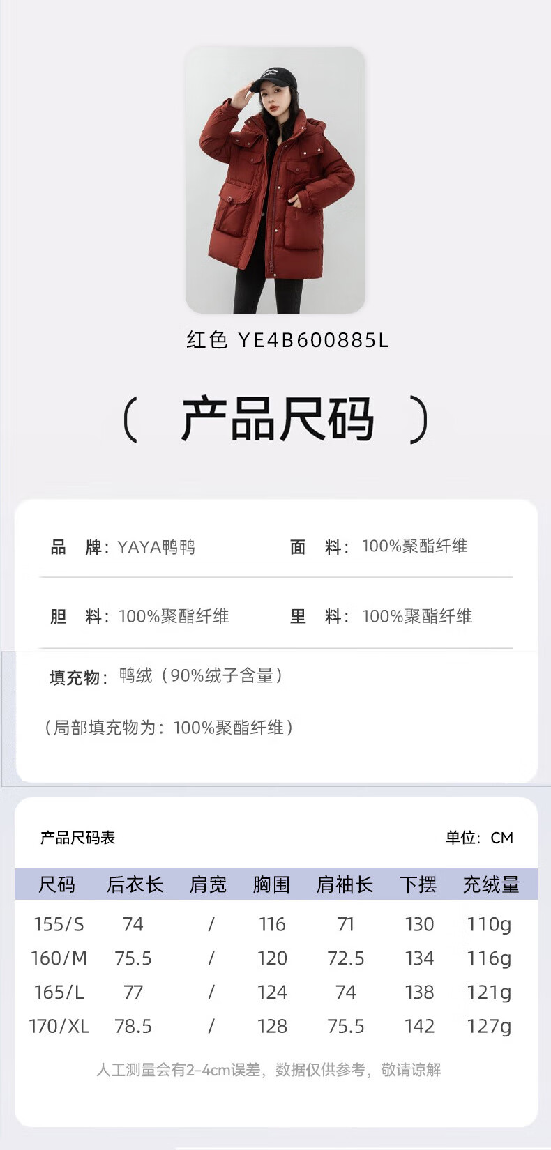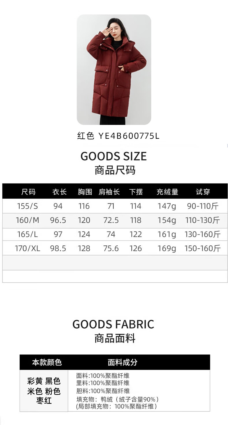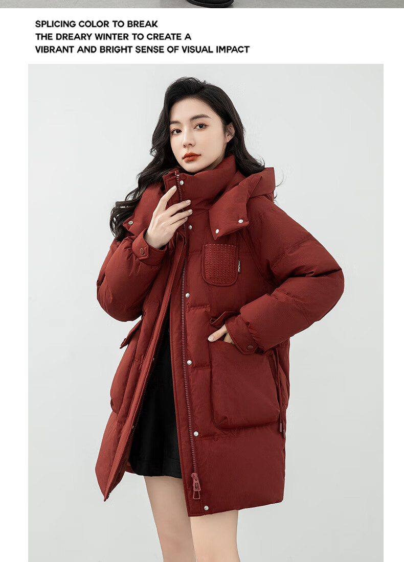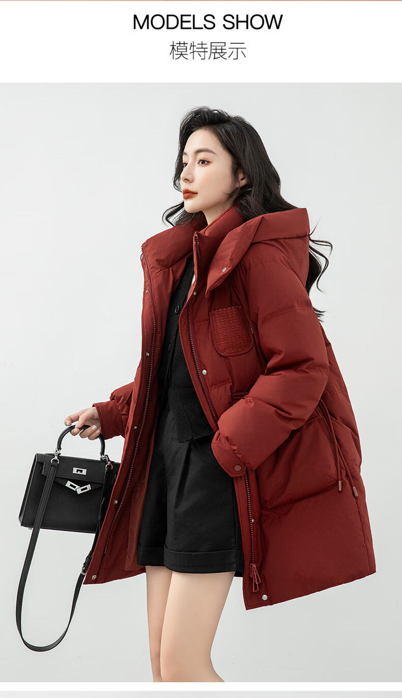 YAYA (YAYA) Qi Ji Red Zodiac Year Women's Medium Long Down Jacket 2025 Winter New Year Fashion Korean Style Hooded Warm Jacket Trendy Maroon-YE3B635155L Zodiac Red/Lucky Style M 110-140 Jin
